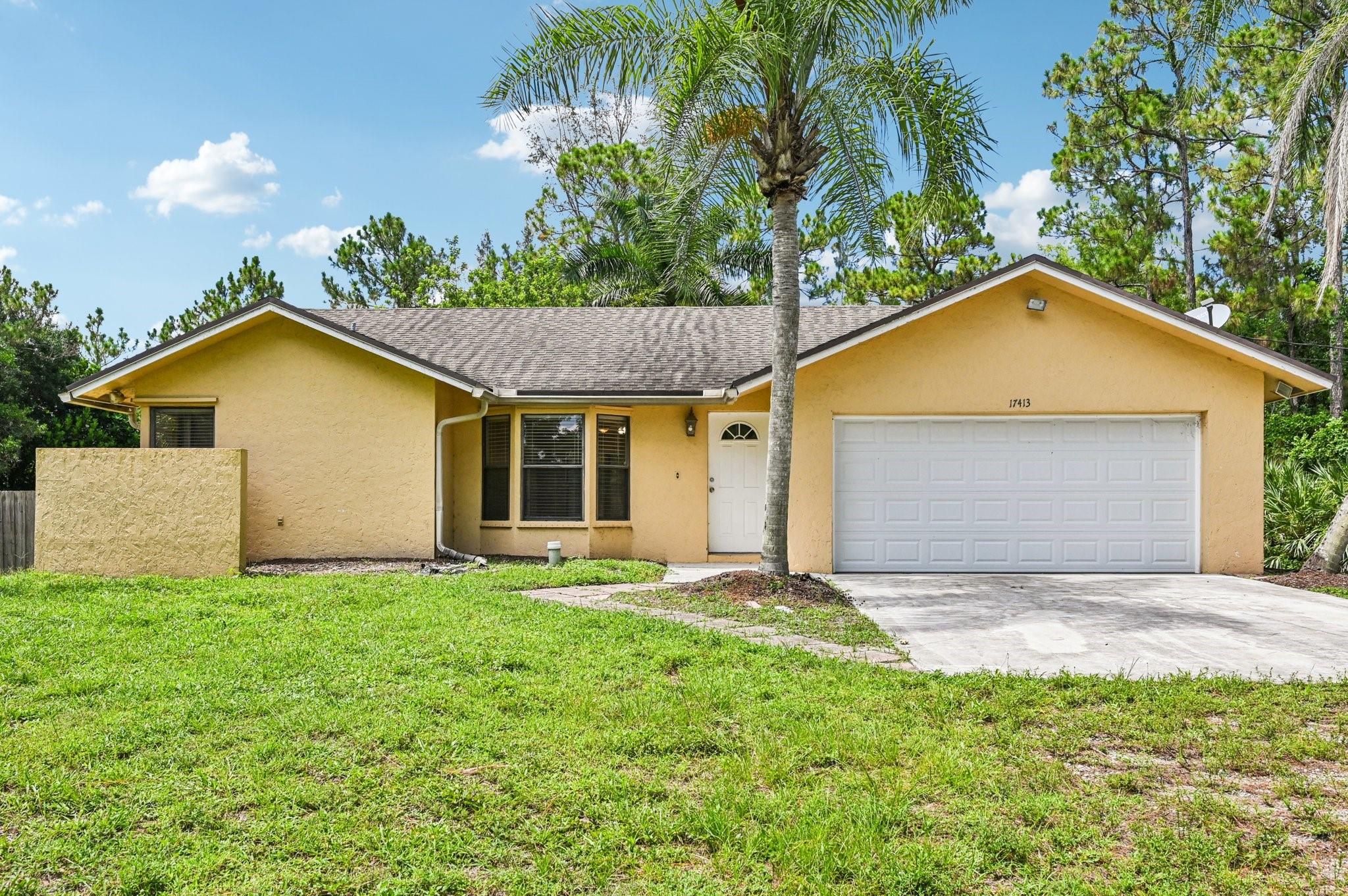 Experience relaxed Florida living in this updated 3-bed, 2-bath home at 17413 42nd Rd N! The kitchen shines with quartz countertops and sleek cabinetry, flowing into open tile-floored living spaces anchored by a cozy fireplace. The primary suite features a spacious bath, custom closets, and French doors leading to a private pool and fully fenced backyard oasis! All bedrooms offer generous closet space, and the laundry area doubles as a pantry for added convenience! Near equestrian trails, parks, Palm Beach Outlets, top-rated schools, and just 15 minutes to Jupiter Beach via FL-710 and I-95.