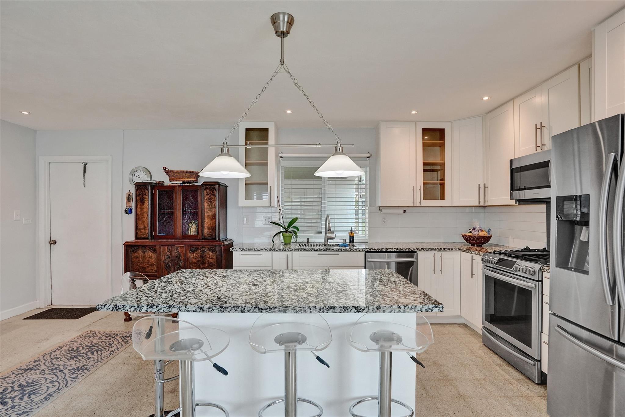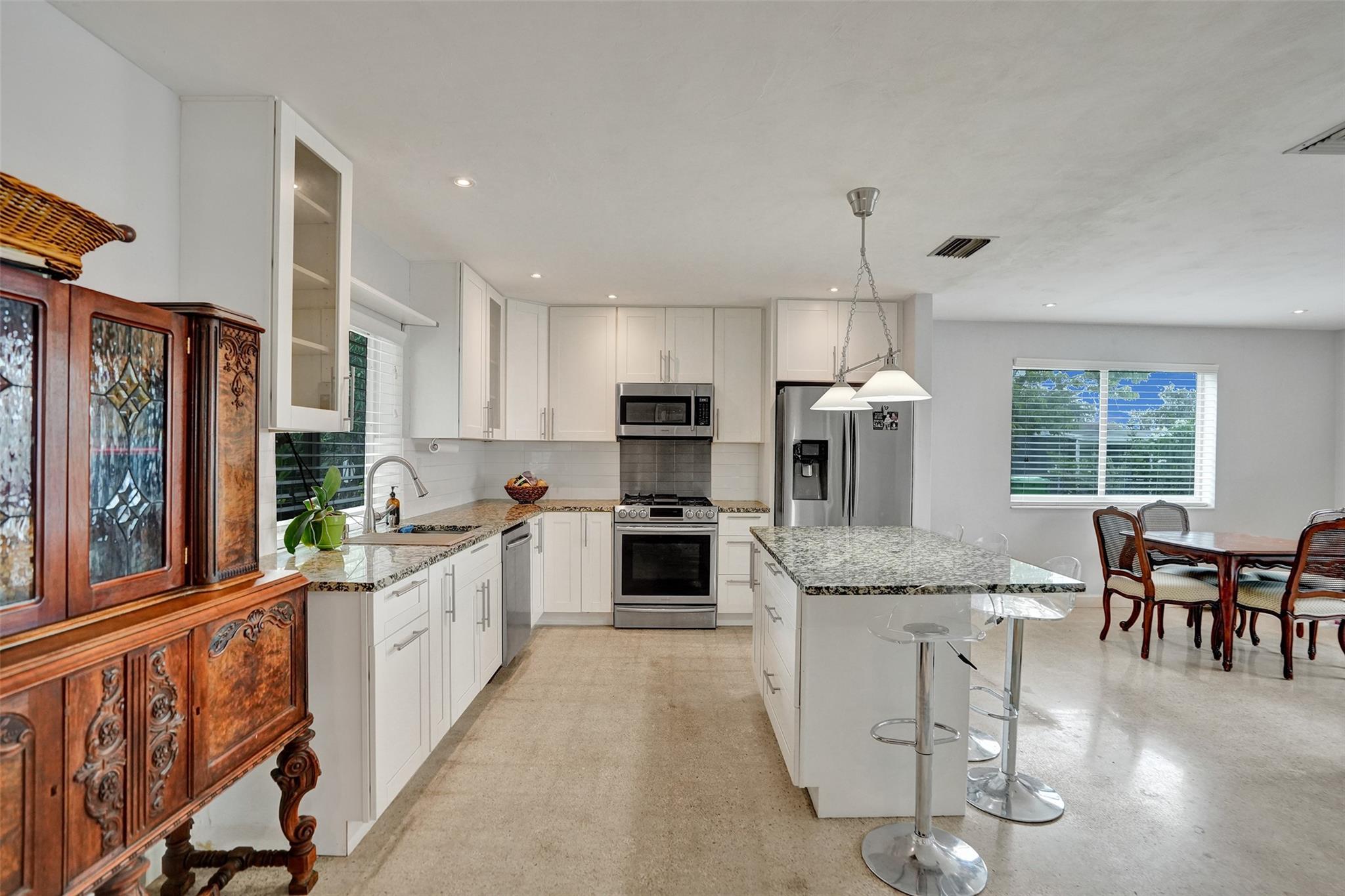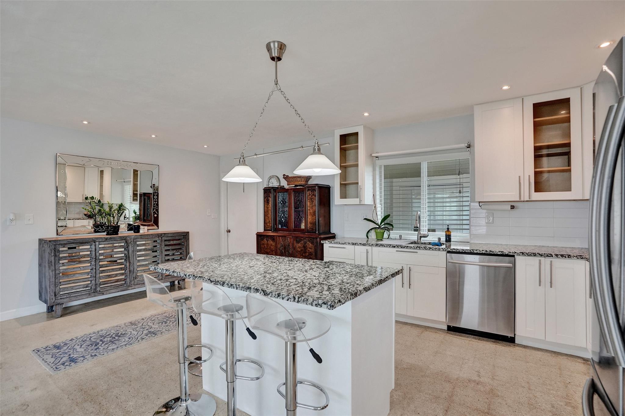 This beautifully upgraded property boasts an open layout with an updated kitchen and bathrooms featuring a stunning granite island, perfect for both everyday living and entertaining. Enjoy peace of mind with impact windows throughout the entire home installed in 2019, along with a new roof replaced in 2025, and modernized AC and plumbing systems updated in 2022. The versatile floor plan includes an efficiency or in-law quarters that can easily serve as a 3rd bedroom, private office, or potential rental space for extra income, thanks to a thoughtfully remodeled garage with a full bath. Outside, you’ll find a 10x10 shed for additional storage and an oversized driveway offering ample parking for family and guests. Don’t miss this fantastic opportunity to own a beautifully updated home.