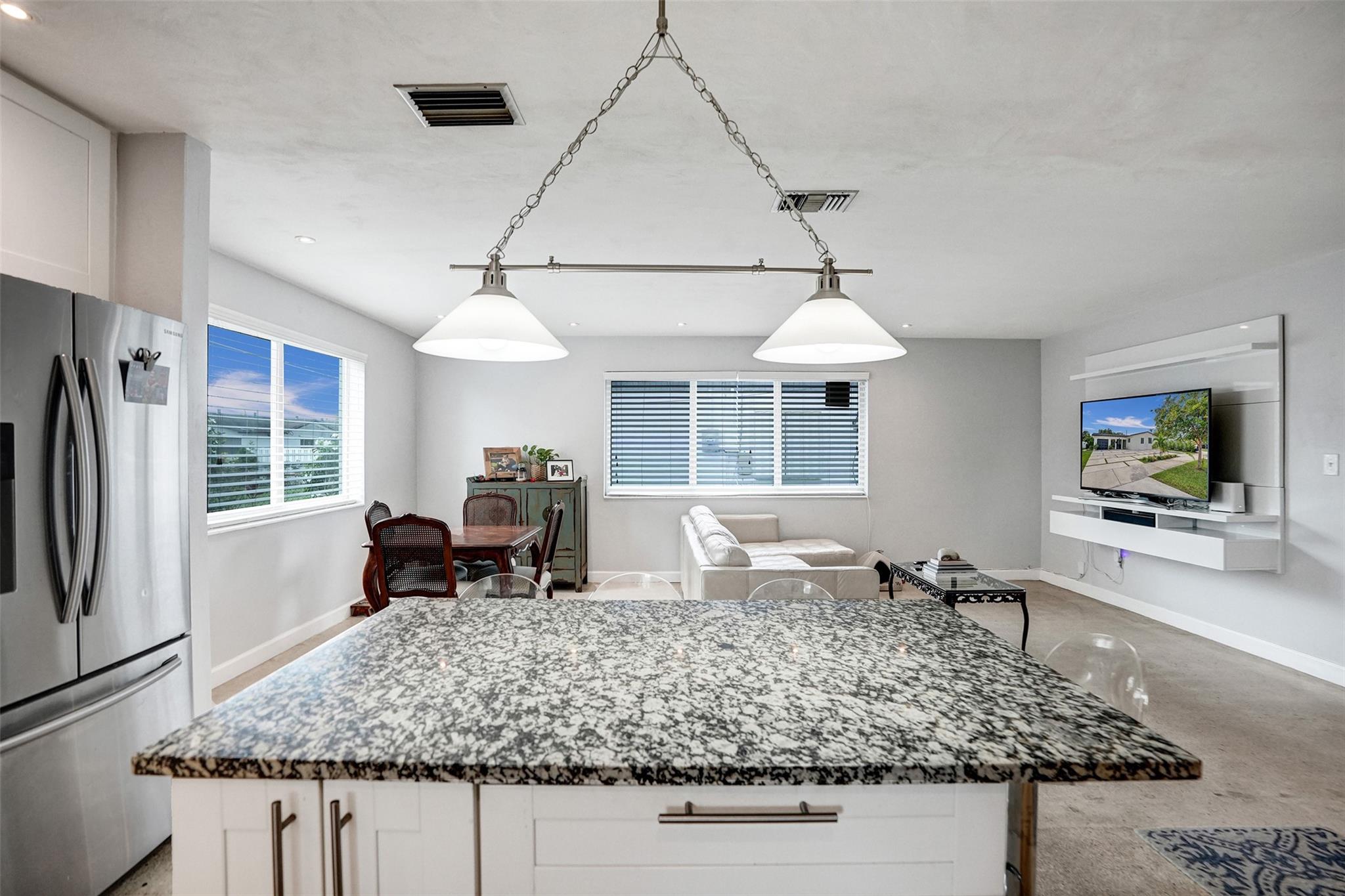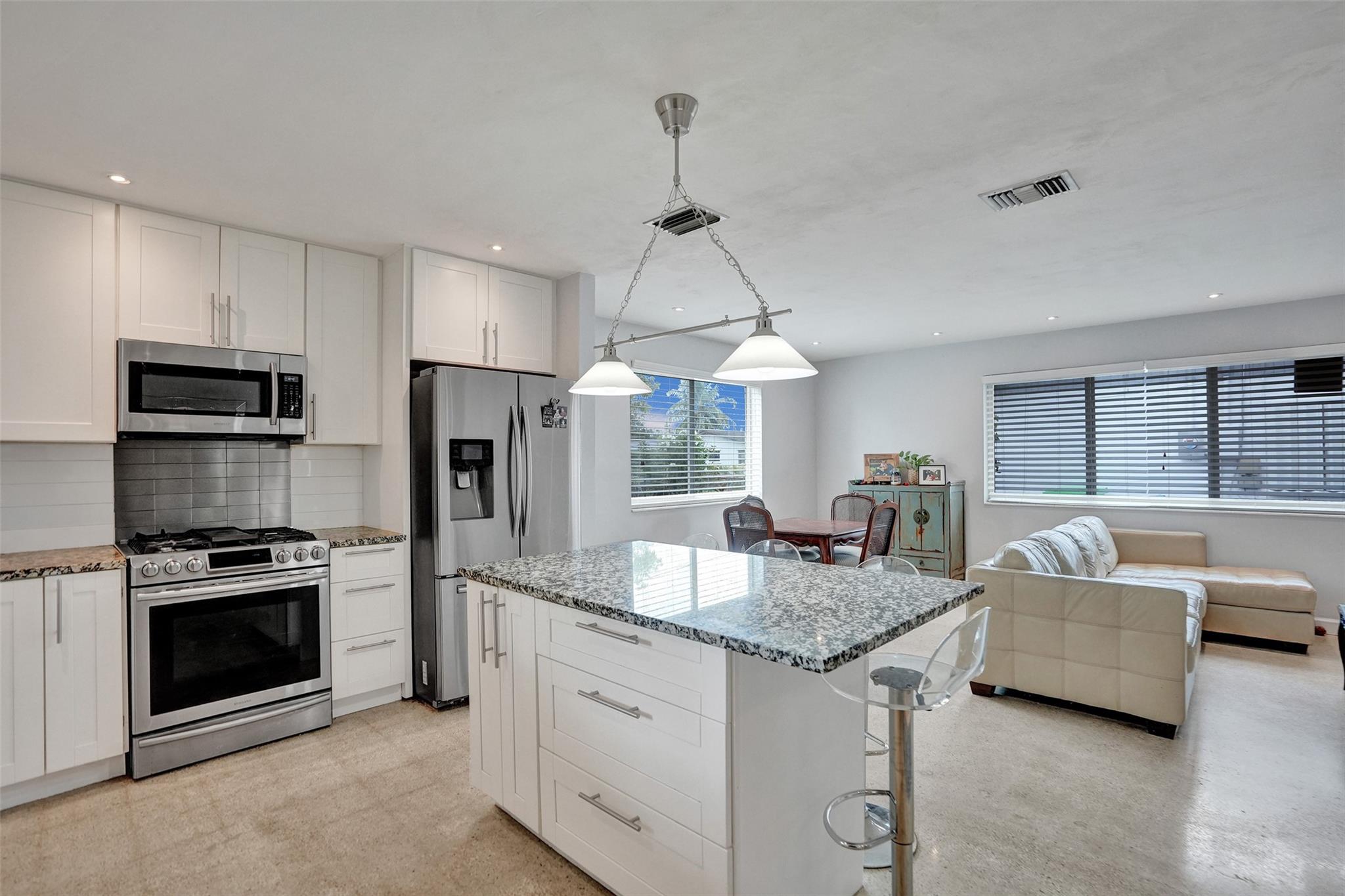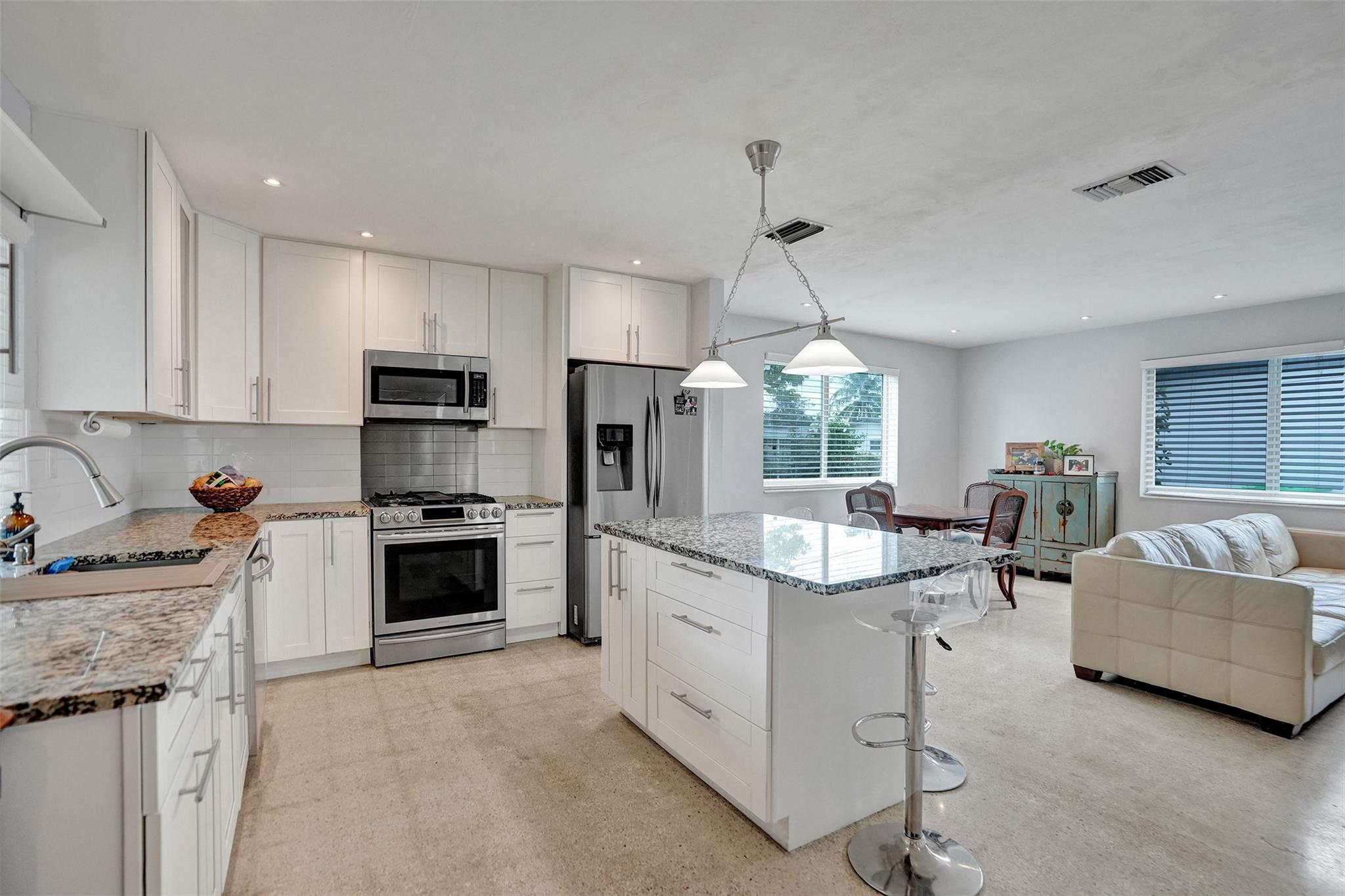 This beautifully upgraded property boasts an open layout with an updated kitchen and bathrooms featuring a stunning granite island, perfect for both everyday living and entertaining. Enjoy peace of mind with impact windows throughout the entire home installed in 2019, along with a new roof replaced in 2025, and modernized AC and plumbing systems updated in 2022. The versatile floor plan includes an efficiency or in-law quarters that can easily serve as a 3rd bedroom, private office, or potential rental space for extra income, thanks to a thoughtfully remodeled garage with a full bath. Outside, you’ll find a 10x10 shed for additional storage and an oversized driveway offering ample parking for family and guests. Don’t miss this fantastic opportunity to own a beautifully updated home.