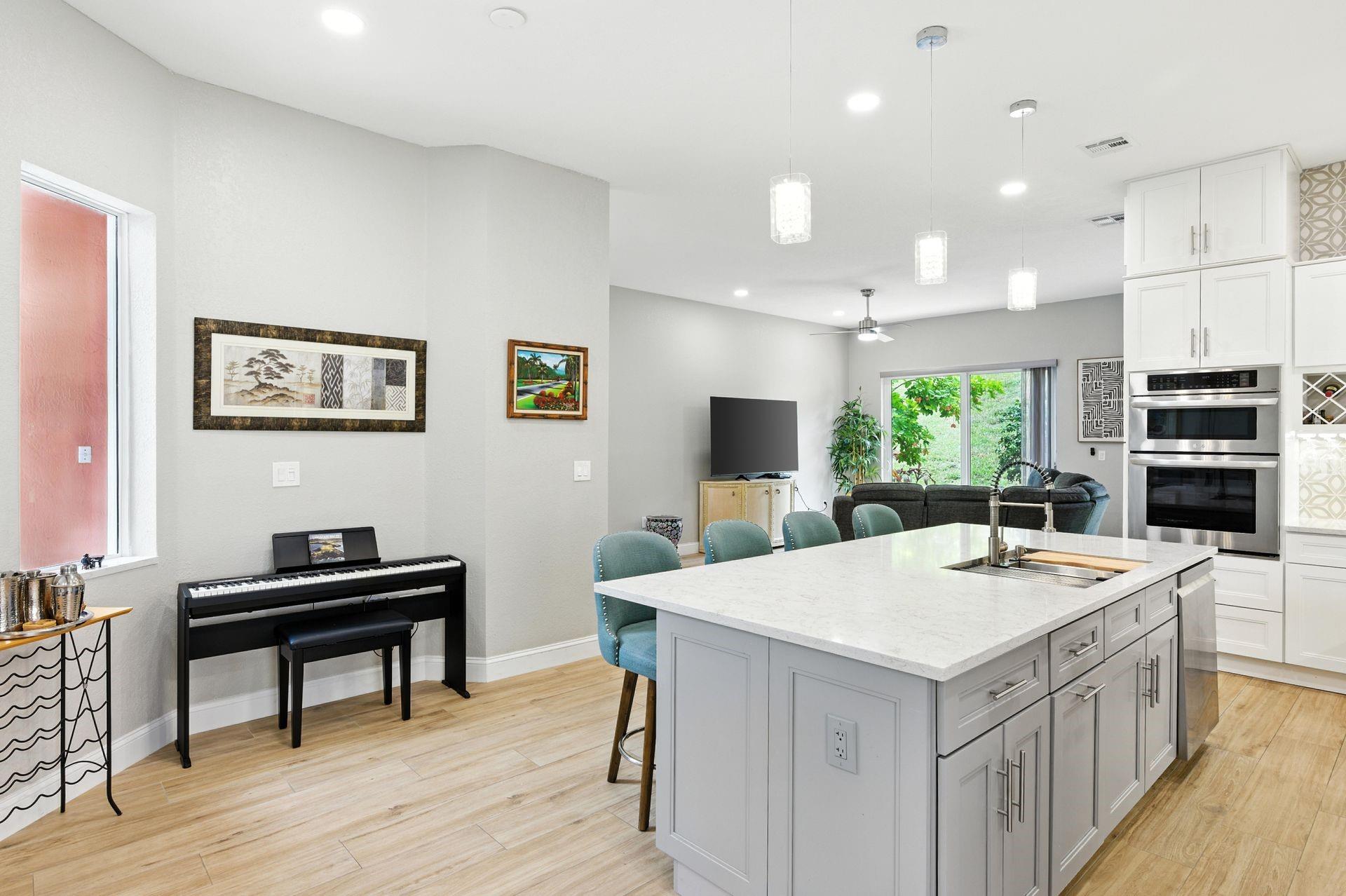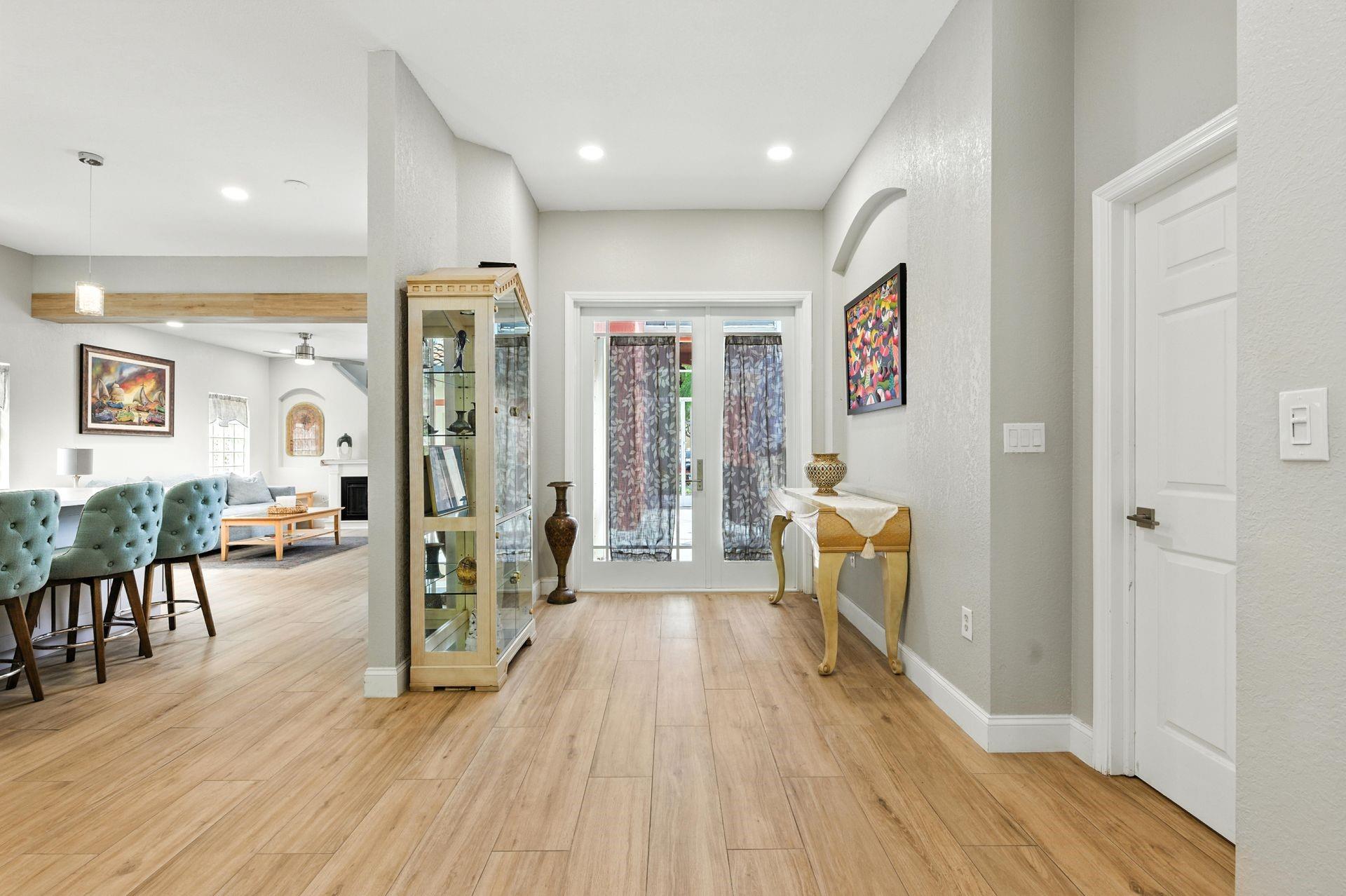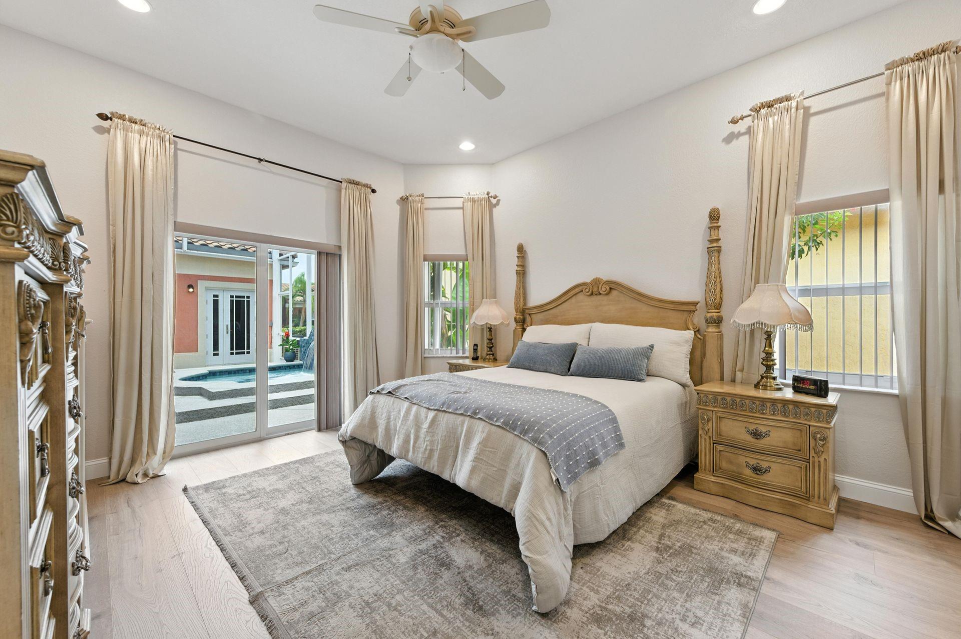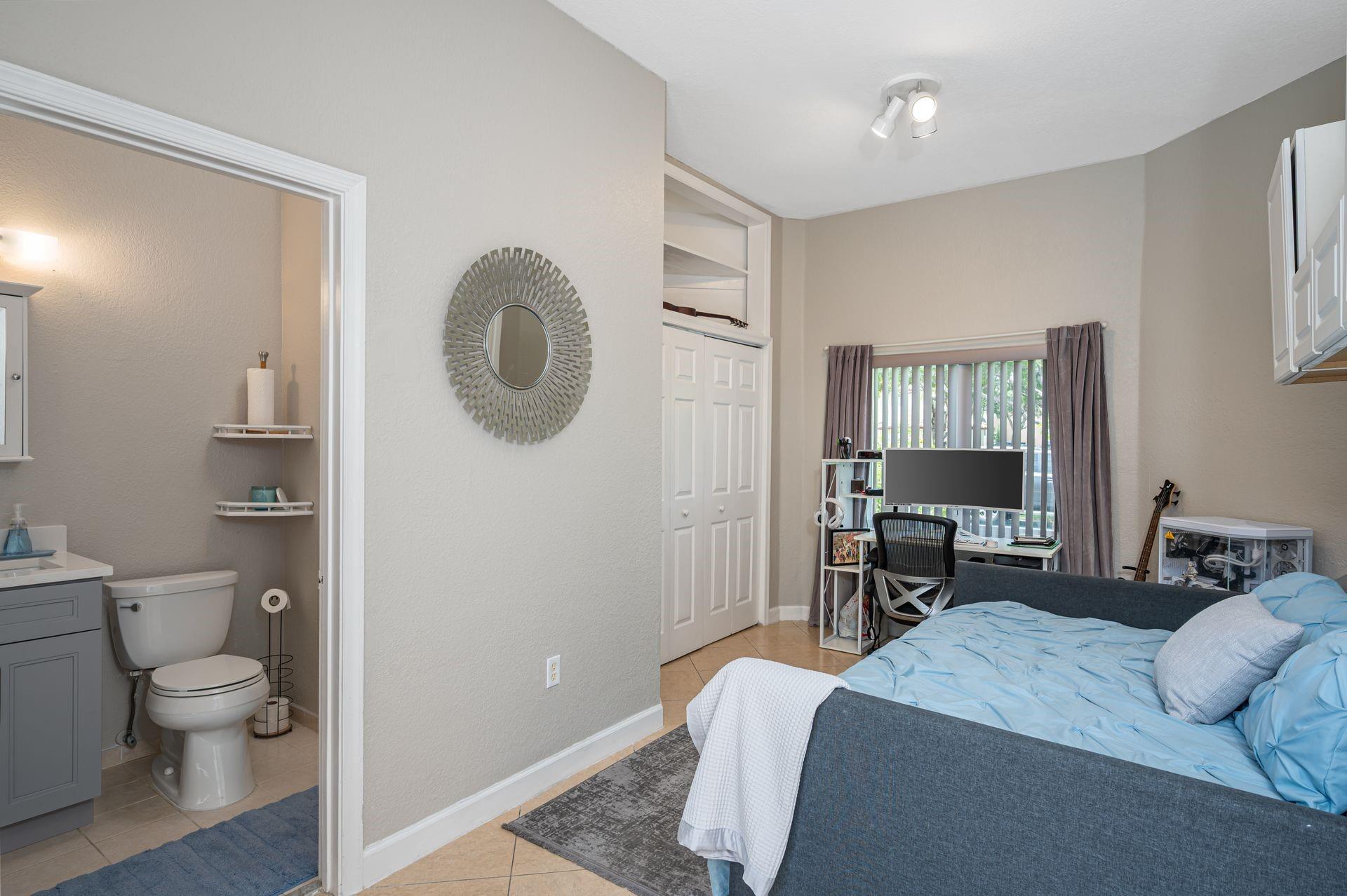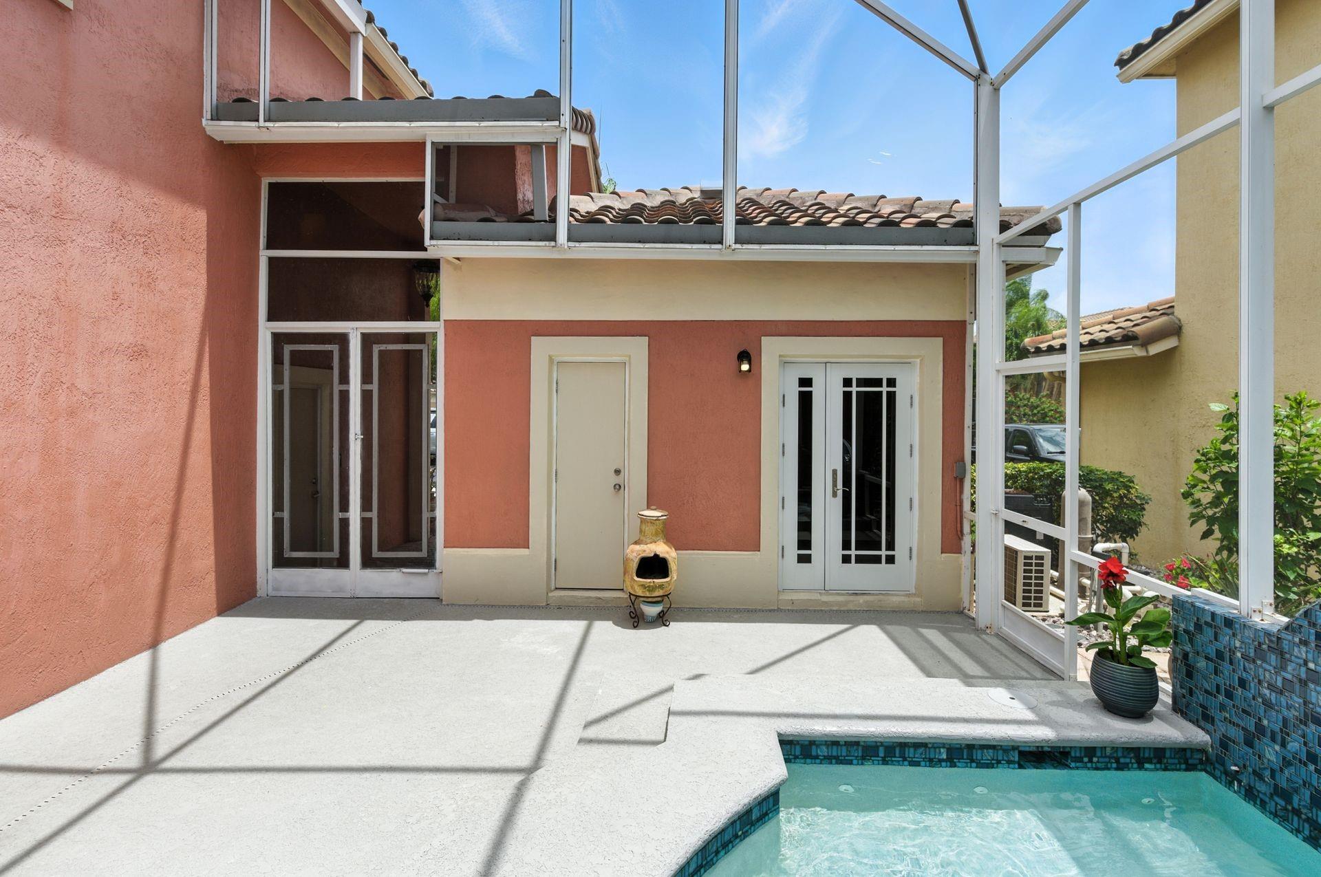 Discover this beautifully updated courtyard home offering complete privacy. The main house features 3 bedrooms, 2.5 baths, with a downstairs primary suite. A separate attached suite provides an additional bedroom and bath—perfect for guests or in-laws. Enjoy a stunning open kitchen, renovated bathrooms, and elegant tile flooring throughout. Impact windows/doors and a newer roof provide peace of mind. The courtyard boasts generous entertaining space with a plunge pool and tranquil water feature.