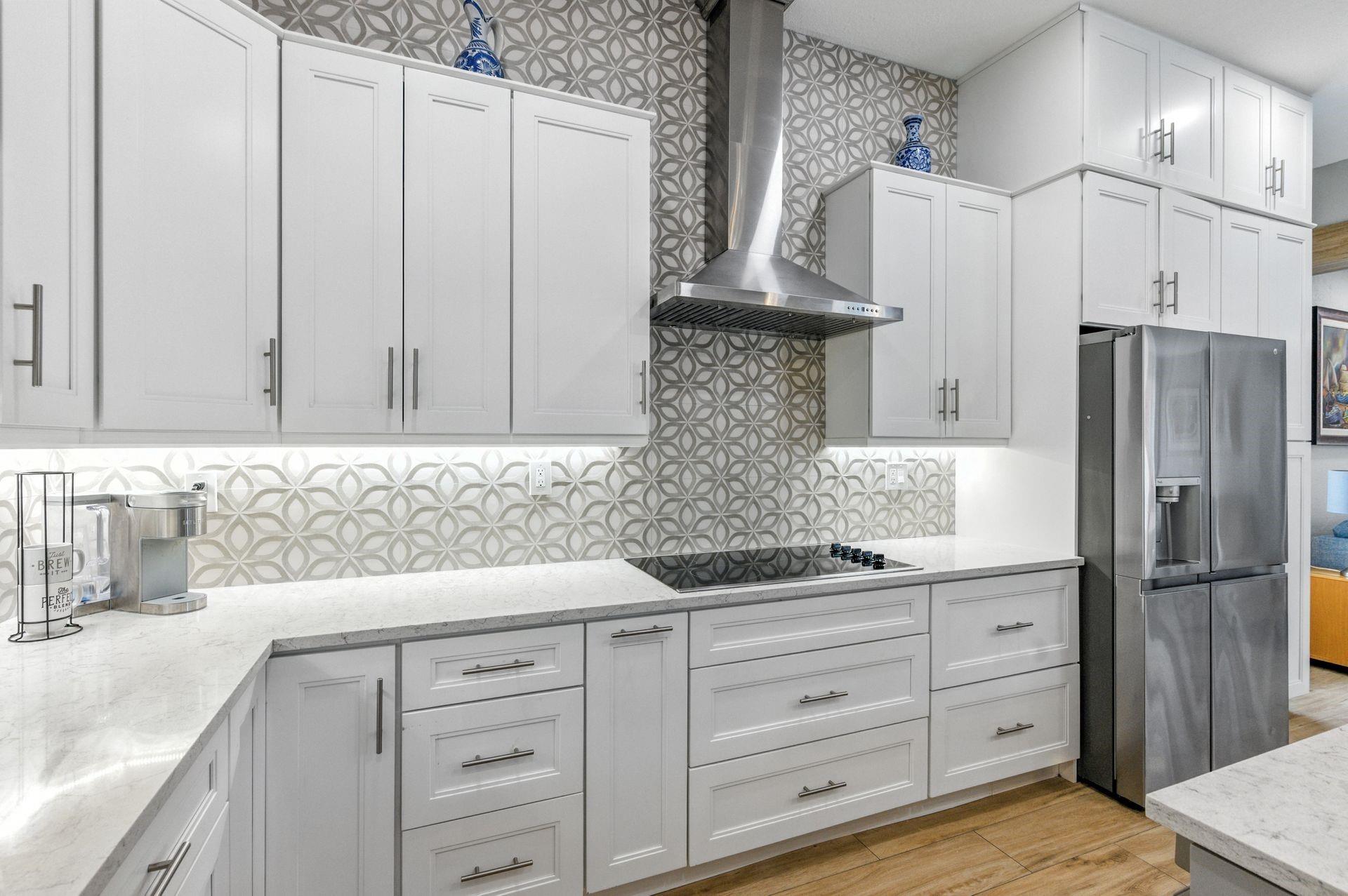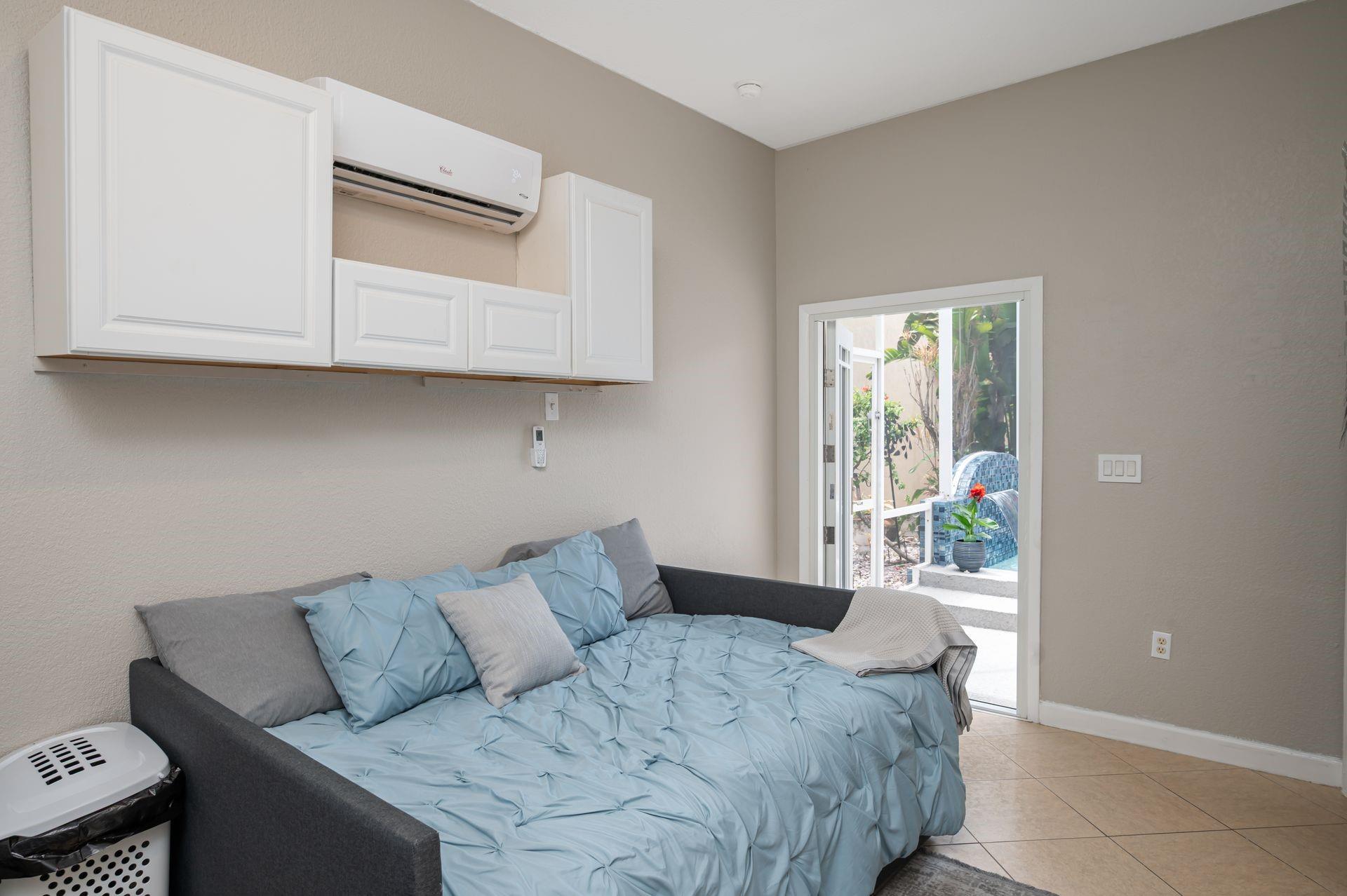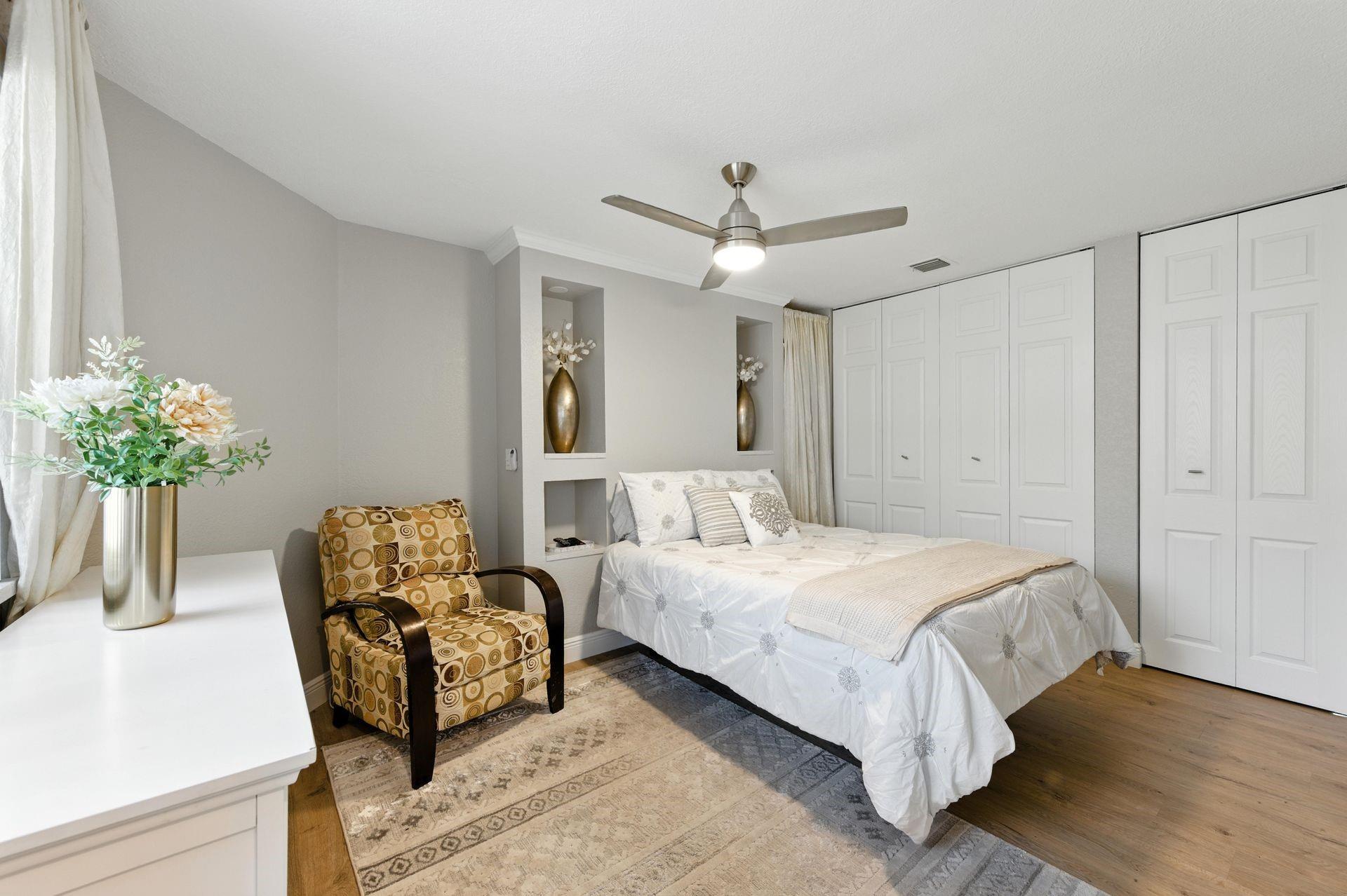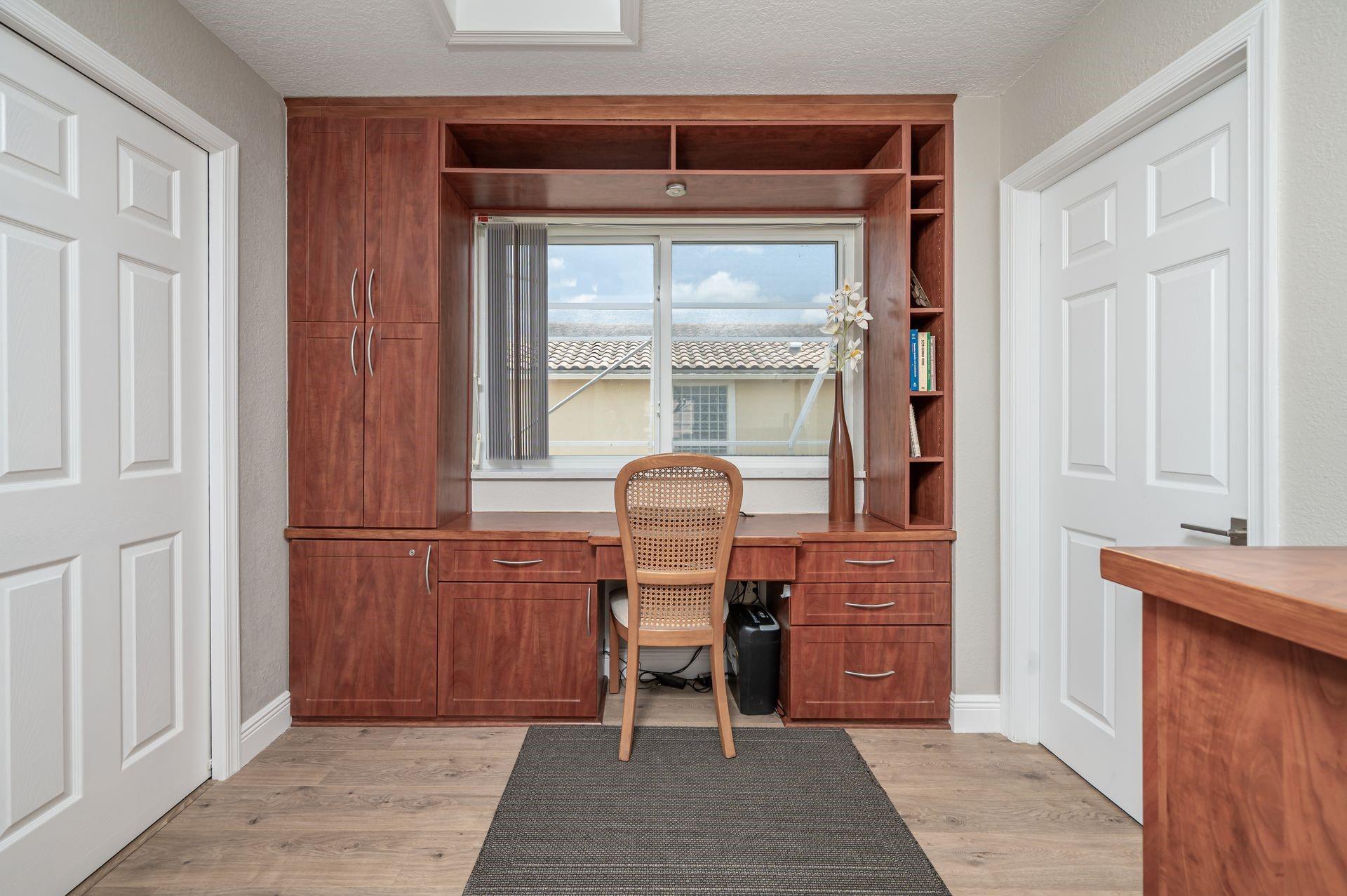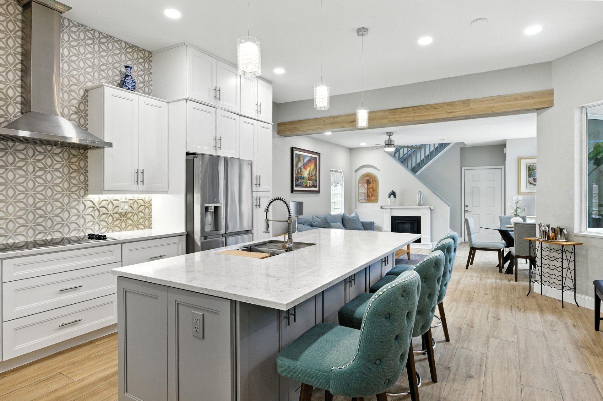 Discover this beautifully updated courtyard home offering complete privacy. The main house features 3 bedrooms, 2.5 baths, with a downstairs primary suite. A separate attached suite provides an additional bedroom and bath—perfect for guests or in-laws. Enjoy a stunning open kitchen, renovated bathrooms, and elegant tile flooring throughout. Impact windows/doors and a newer roof provide peace of mind. The courtyard boasts generous entertaining space with a plunge pool and tranquil water feature.