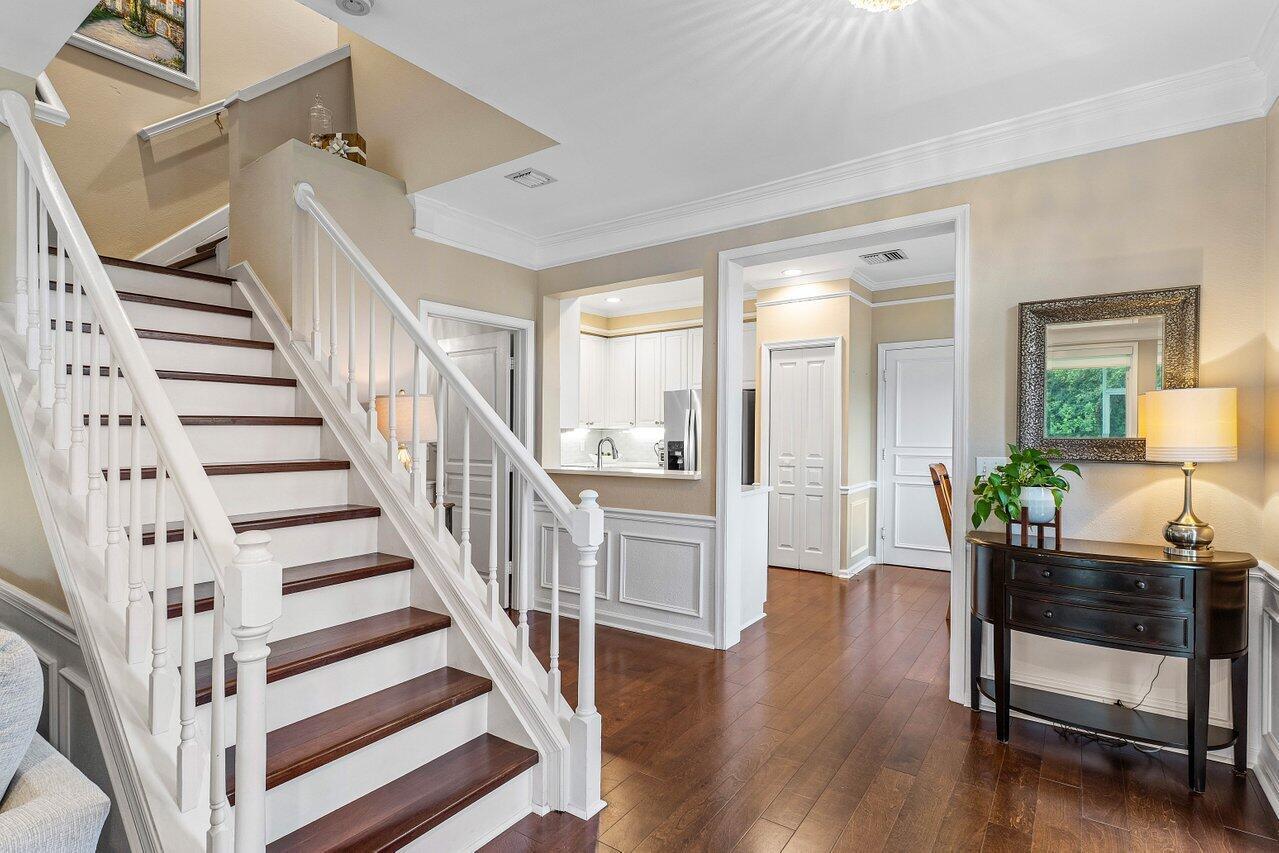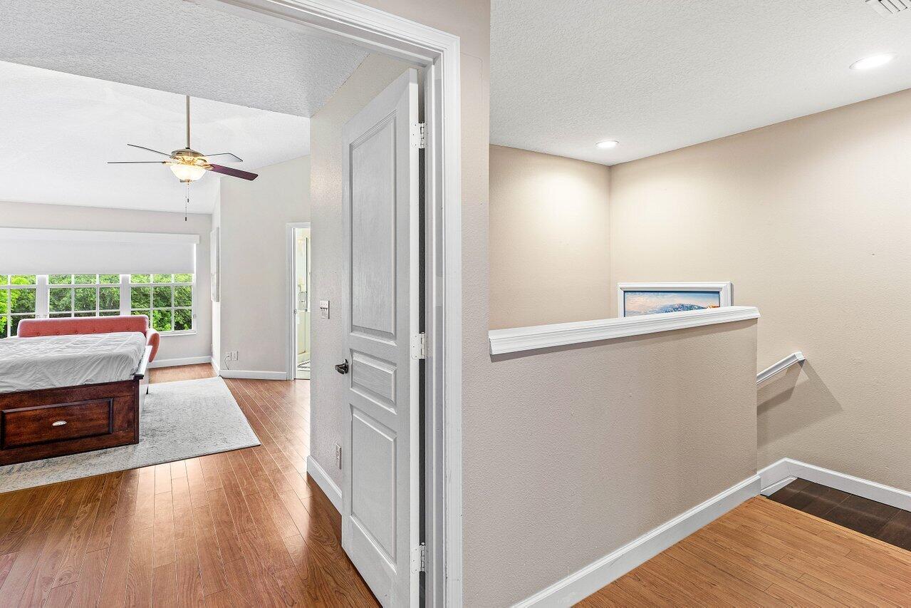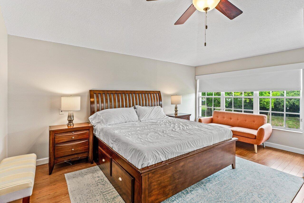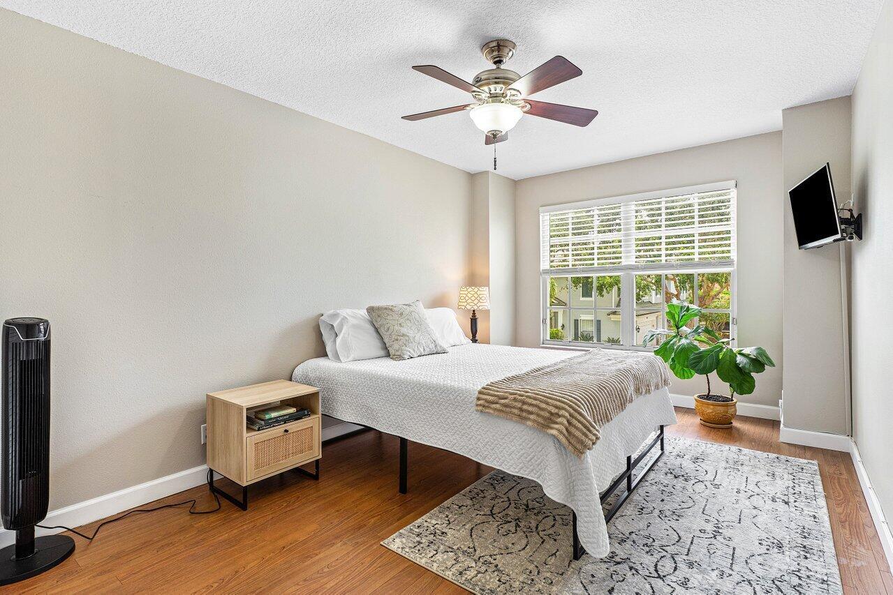 One of the Best Locations within the Community, Stylishly Updated 3 bedroom Corner Townhome w/ Southern Exposure, located just minutes from Town Center Mall, Dining, and Walking Distance to the Boca Raton Swim and Racquet Community Center. Features a Spacious 2-Car Garage with EV Charger, a Renovated Kitchen w/ Quartz Countertops, Engineered Wood Flooring throughout. The Primary Bedroom offers Vaulted Ceilings, and the Spa Inspired Bath includes a Double Vanity with Soaking Tub. Renovated Guest Bath & Powder Room, Enjoy the Covered Screened Patio with No Rear Neighbors Desirable Southern Exposure, Perfect for Entertaining. Situated in a Quiet, Gated Community and Zoned for Top-Rated Boca Raton Schools. This Townhouse Offers the Ideal blend of Style, Function, and Unbeatable Location