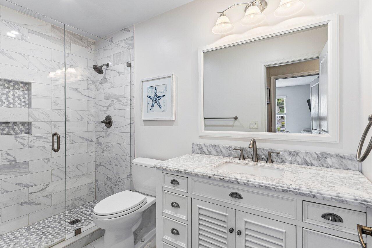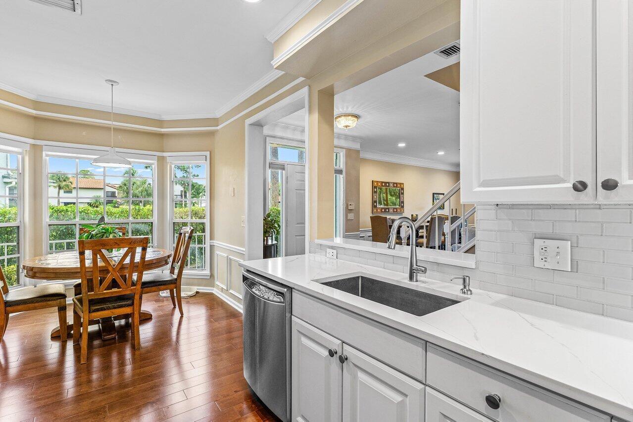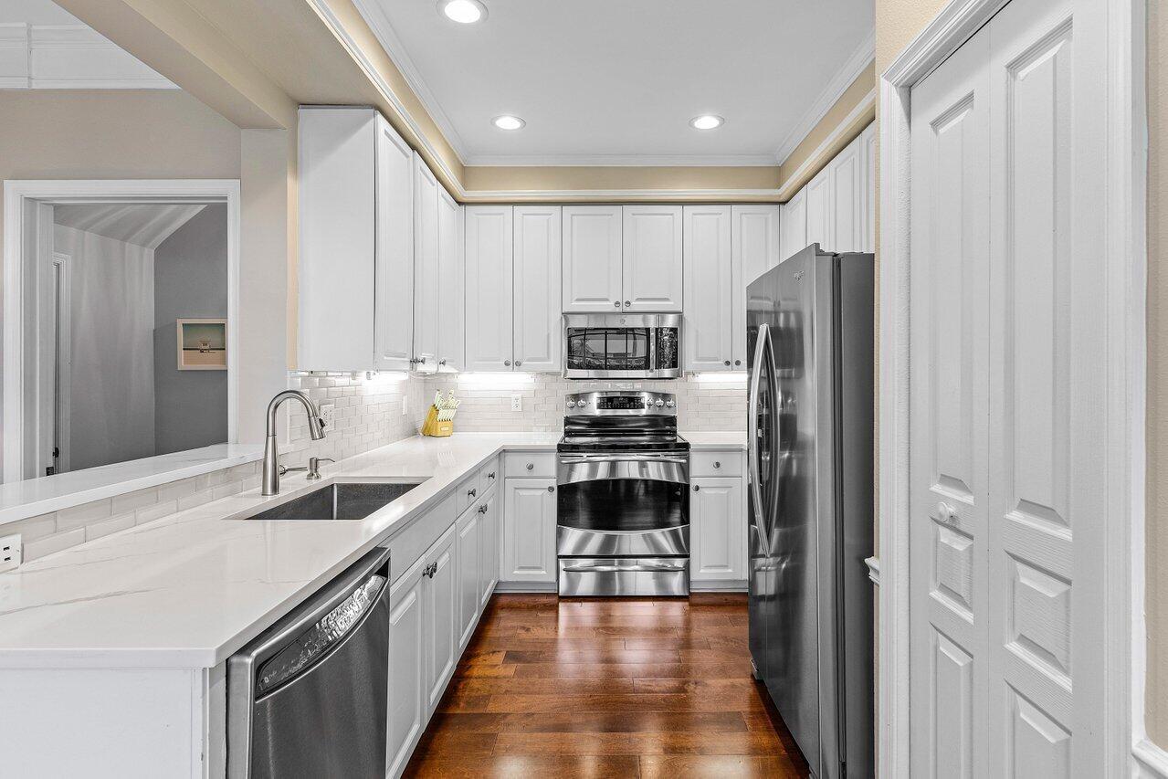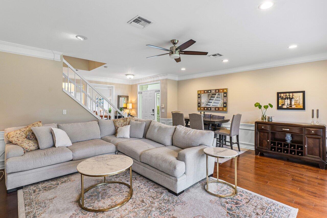 One of the Best Locations within the Community, Stylishly Updated 3 bedroom Corner Townhome w/ Southern Exposure, located just minutes from Town Center Mall, Dining, and Walking Distance to the Boca Raton Swim and Racquet Community Center. Features a Spacious 2-Car Garage with EV Charger, a Renovated Kitchen w/ Quartz Countertops, Engineered Wood Flooring throughout. The Primary Bedroom offers Vaulted Ceilings, and the Spa Inspired Bath includes a Double Vanity with Soaking Tub. Renovated Guest Bath & Powder Room, Enjoy the Covered Screened Patio with No Rear Neighbors Desirable Southern Exposure, Perfect for Entertaining. Situated in a Quiet, Gated Community and Zoned for Top-Rated Boca Raton Schools. This Townhouse Offers the Ideal blend of Style, Function, and Unbeatable Location