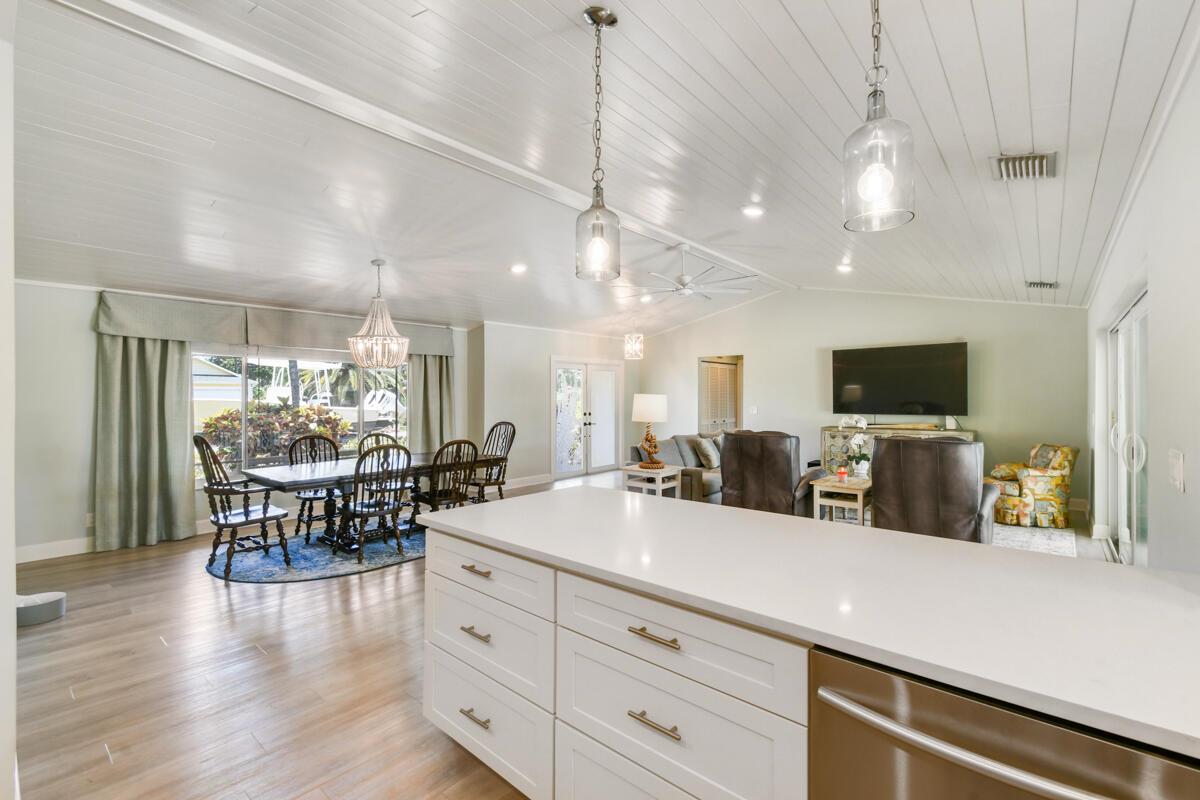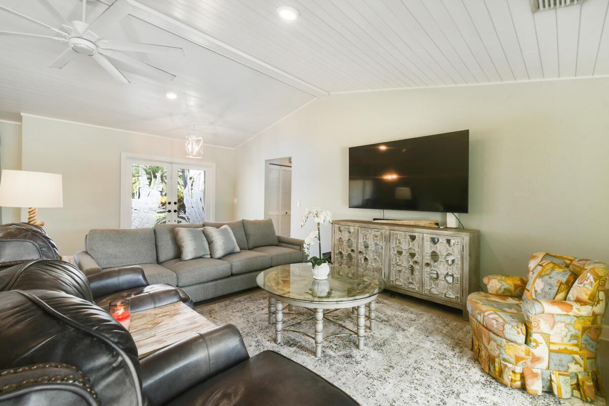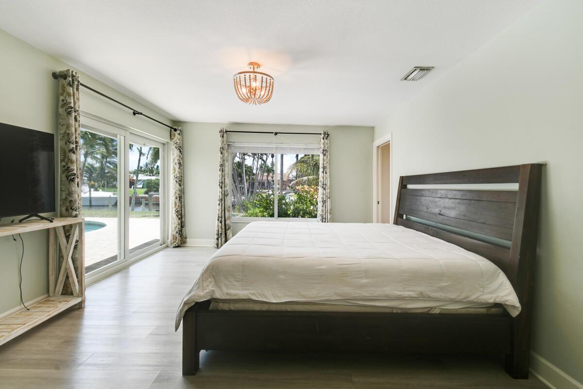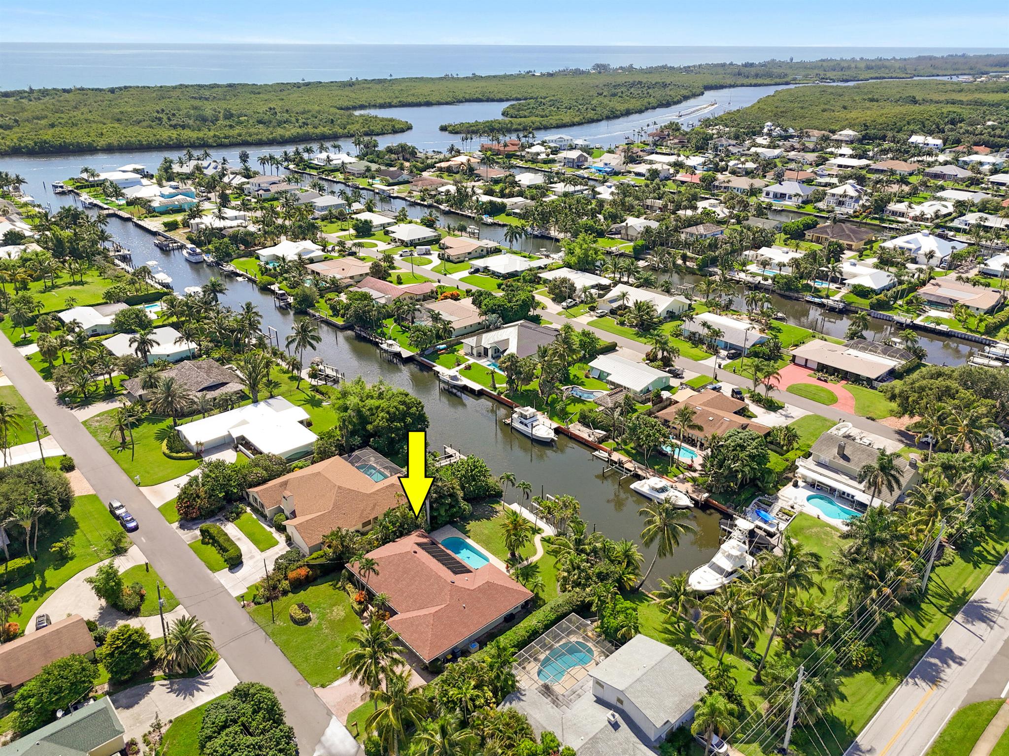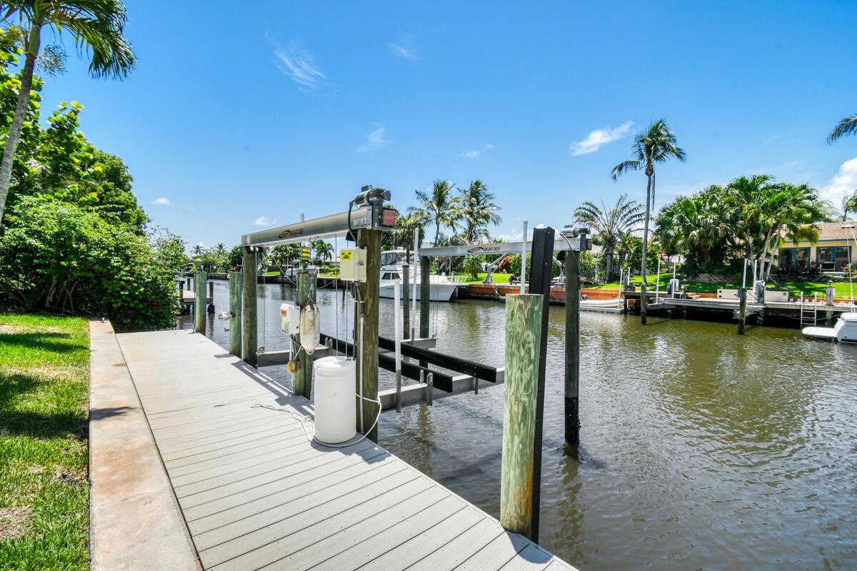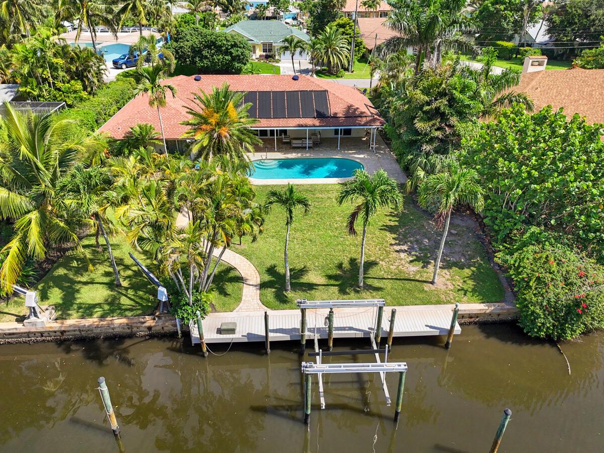 Coastal Waterfront Retreat with Southern Exposure. Welcome to this beautifully renovated coastal-style waterfront home offering the ultimate South Florida lifestyle. Situated on a spacious .32-acre lot with 100 feet of waterfront and no fixed bridges, this boater's paradise includes a 14,000 lb boat lift, seawall, and direct ocean access. Enjoy sun all day with prime southern exposure, perfect for relaxing poolside or entertaining in the expansive covered outdoor living space. The fenced backyard features a sparkling pool and lush, manicured landscaping for added privacy and charm. Inside, the light and bright open floor plan features volume shiplap ceilings, split bedroom layout, and impact windows throughout.
