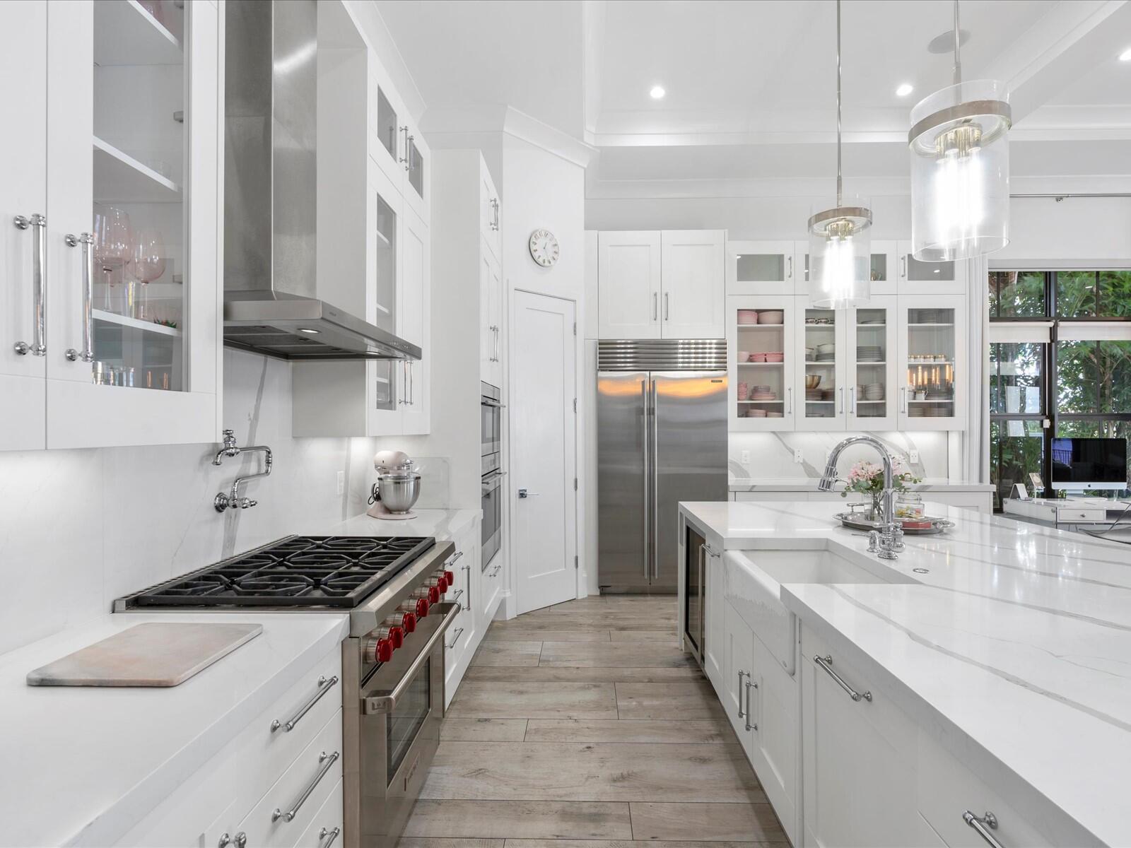 A rare opportunity to own a designer-upgraded 5-bedroom, 4.5-bath estate with breathtaking wide lake views of the 240-acre Lake Majesty, located in the prestigious gated community of MiraLago. This beautifully appointed single-story residence blends timeless elegance with modern luxury, showcasing meticulous craftsmanship and thoughtful enhancements throughout.Step inside to discover crown molding, custom electric blinds, and designer drapery. The family room and primary suite each feature elegant fireplaces that add warmth and sophistication.The heart of the home is a chef's kitchen outfitted with premium Sub-Zero & Wolf appliances and anchored by a large waterfall island, ideal for entertaining or casual dining. Throughout the home, Restoration Hardware lighting and fixtures
