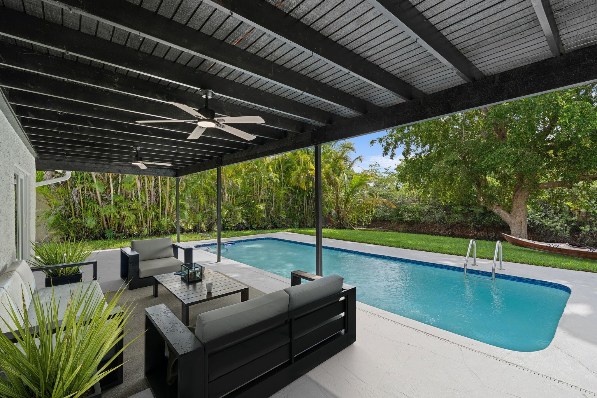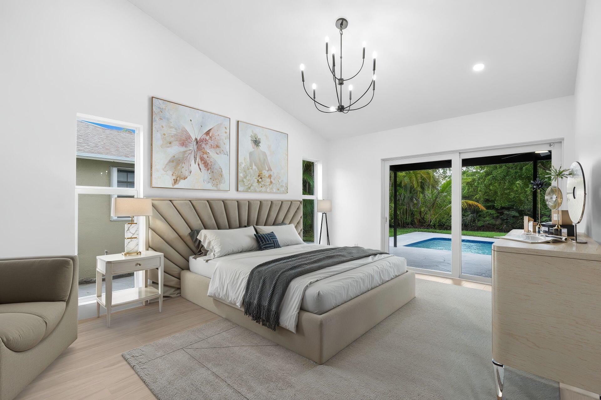Step into elevated living with this stunning designer home in the sought-after Loggers Run community of West Boca Raton. This beautifully remodeled residence features vaulted ceilings, wide plank porcelain tile, a custom pine accent wall, and an abundance of natural light that creates a warm and inviting atmosphere.Enjoy peace of mind with FULL impact windows and sliders, a newer roof (2018), brand-new AC (2025), new water heater (2025), and a resurfaced pool (2025)--perfect for relaxing or entertaining. The show-stopping kitchen boasts custom cabinetry, quartz countertops, an Italian stone backsplash, and solid wood doors throughout the home.Both bathrooms have been fully renovated with elegant, designer finishes.