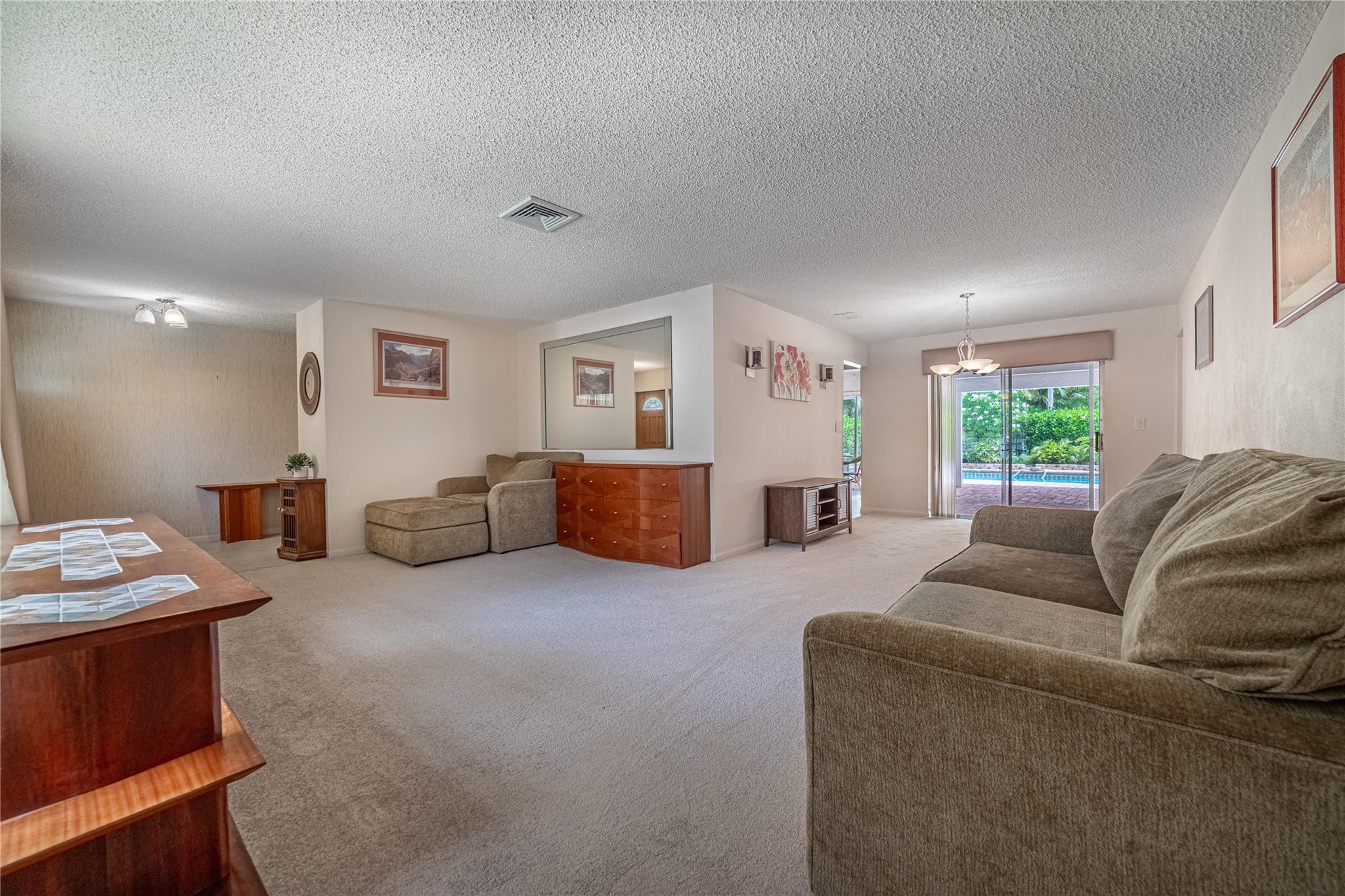 Spacious 3/2 featuring new carpet and beautiful tile floor in kitchen and foyer. Generously sized bedrooms-great for a growing family. Enjoy outdoor living with a large open pool and covered patio area perfect for entertaining. Mature shrubs provide privacy. Paver driveway, wired security alarm, and no HOA. Move-in ready with great curb appeal.