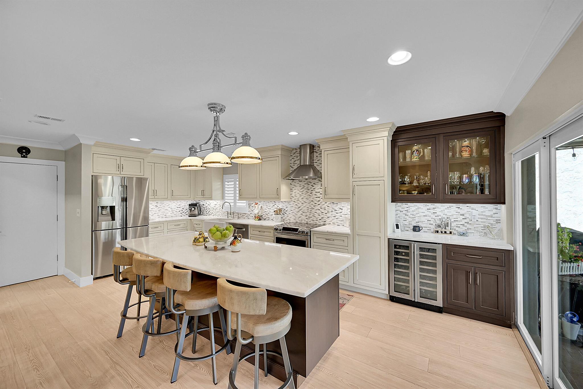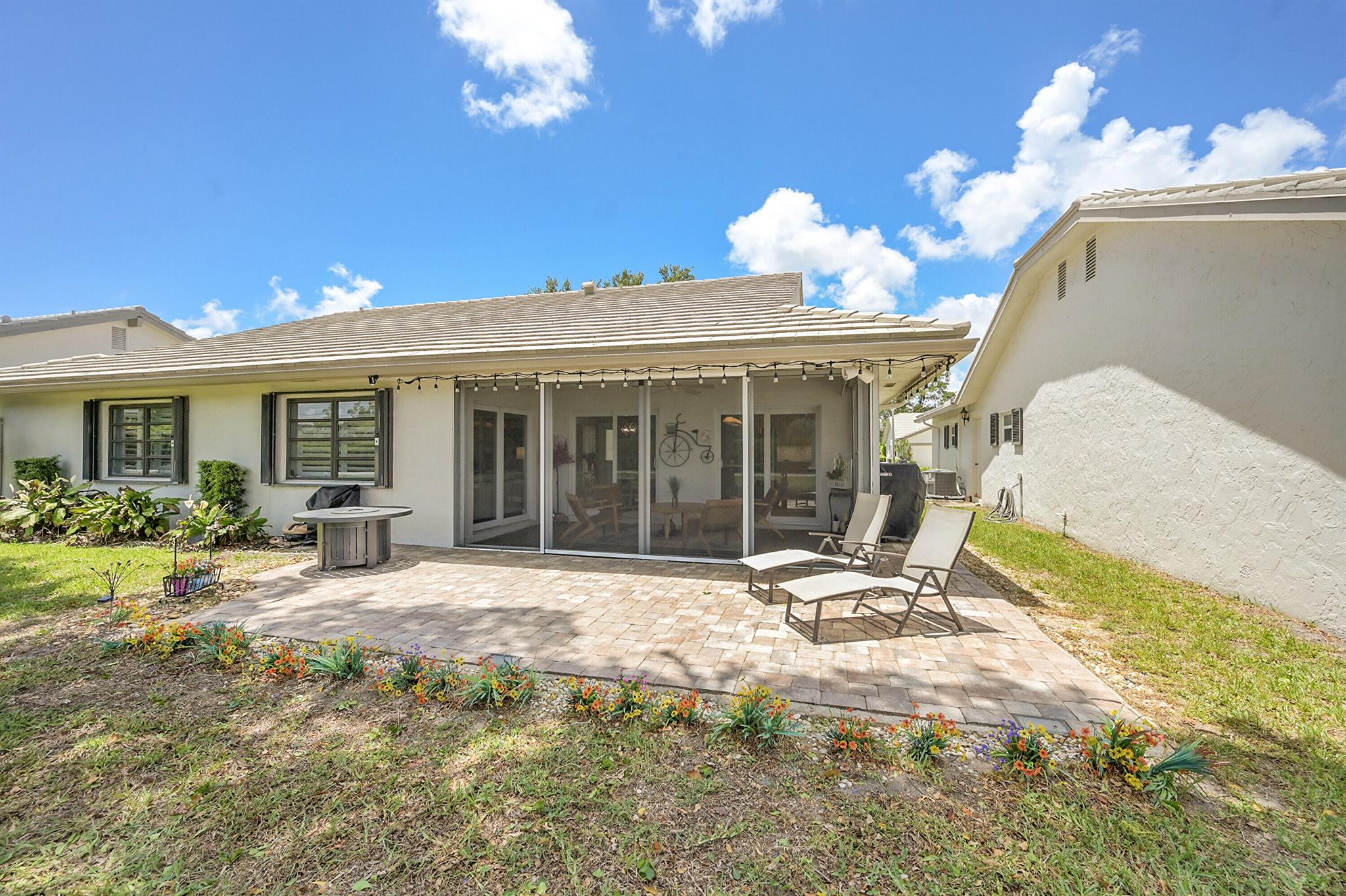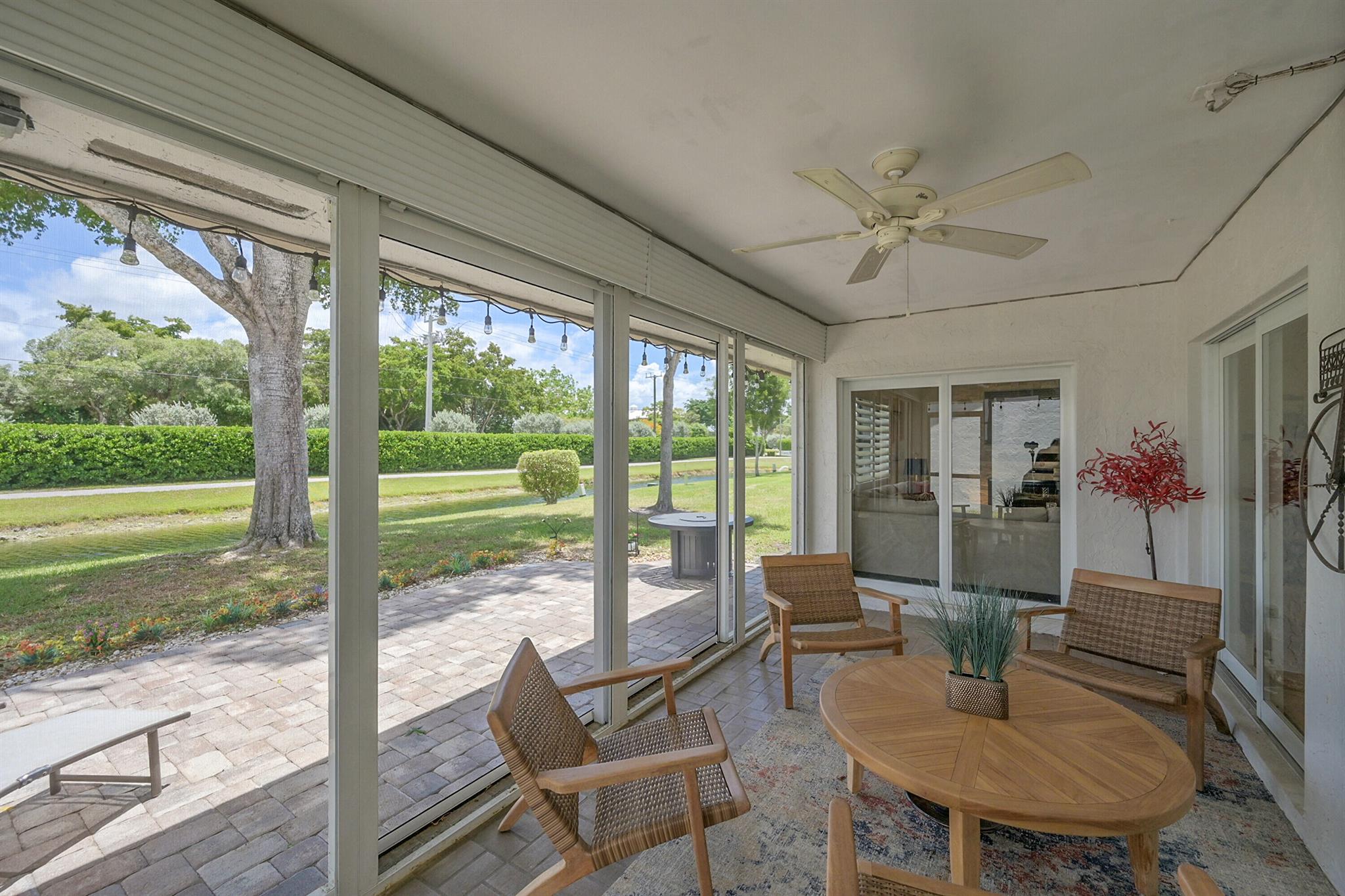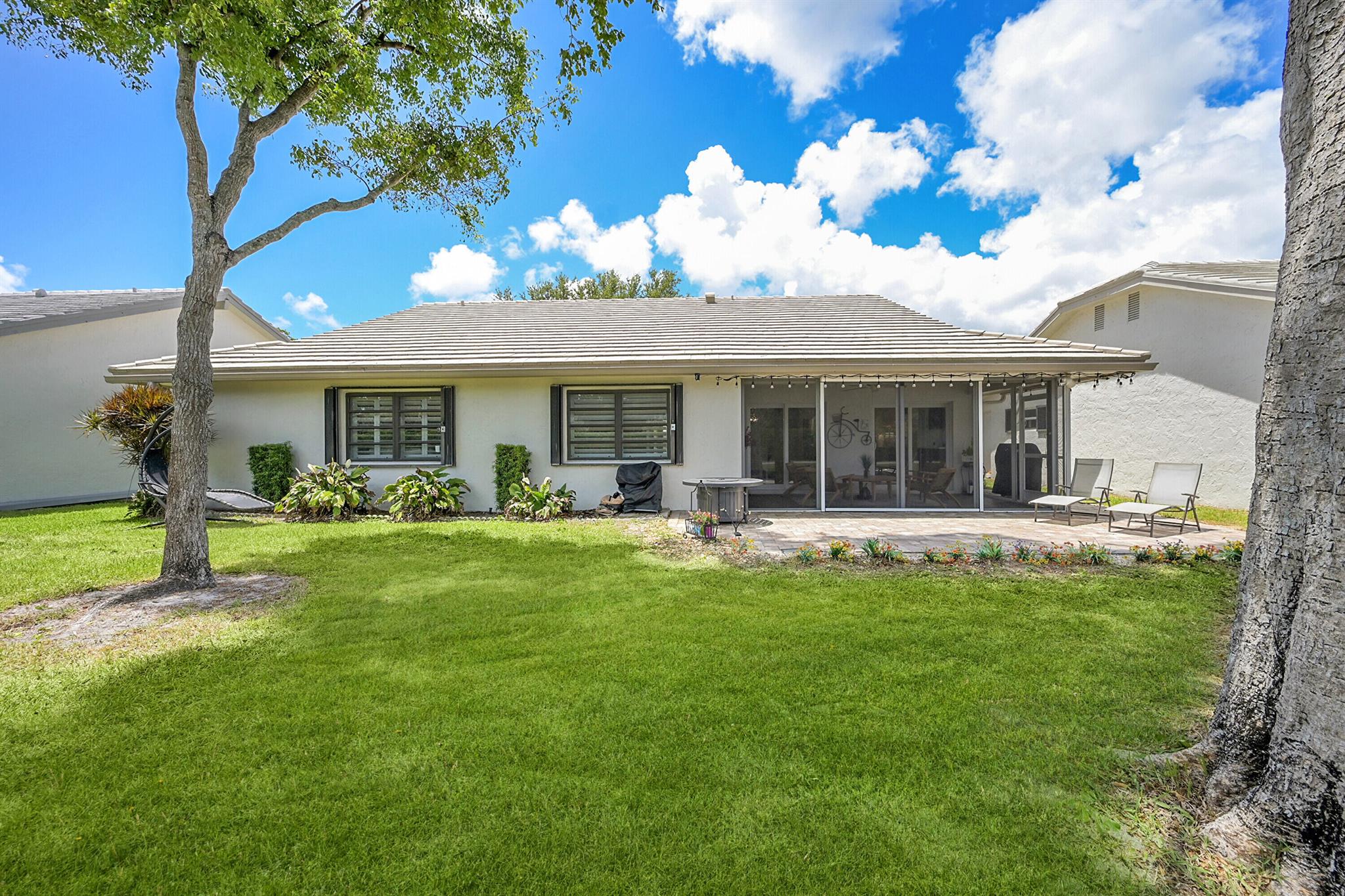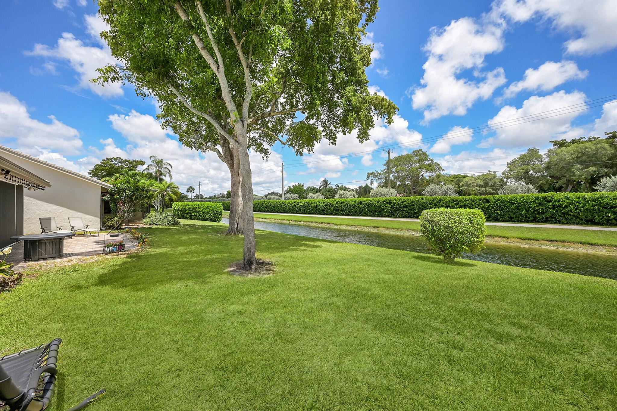 Located in the highly sought-after community of Camino Woods in central Boca Raton, this exquisitly upgraded 3-bedroom, 2-bath home offers an open living area with vaulted ceilings. The kitchen features a center island with quartz countertops, wine bar, & wine fridge. Enjoy the cozy ambiance of a decorative electric fireplace and the elegance of plantation shutters throughout, while the updated baths include a main bathroom with double sinks & a sleek glass-enclosed shower. A separate laundry room & a 2 car garage add convenience. Step outside to a paved patio & enjoy serene water views from the private backyard--perfect for relaxing or entertaining. This 55+ community is just 5 miles from the beach & has a community pool & clubhouse. HOA fee of $390 per month incl all landscaping & more