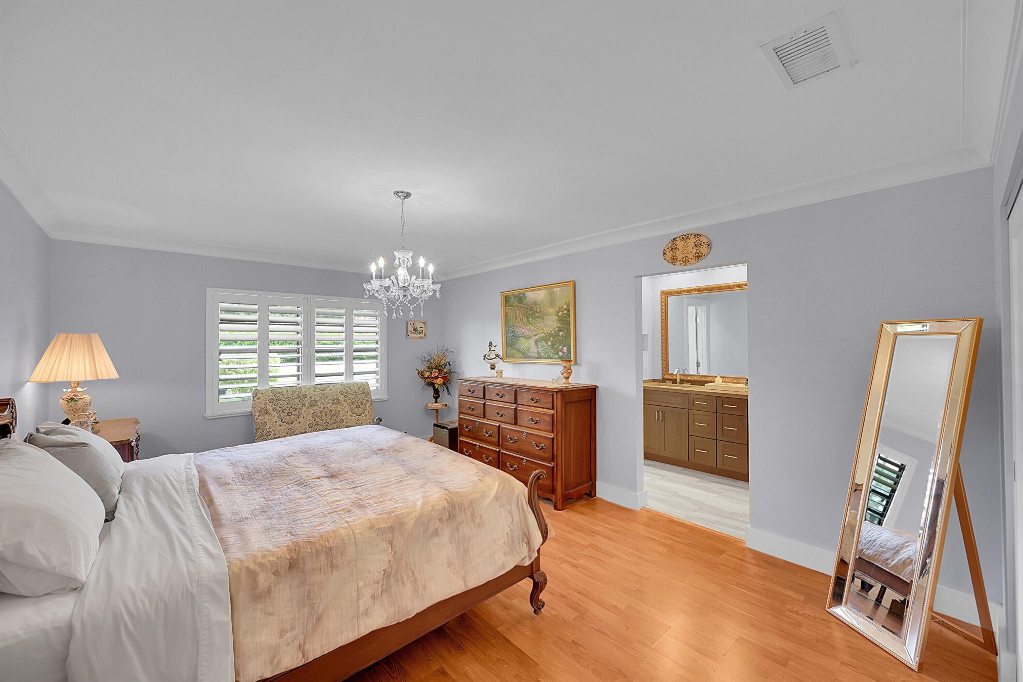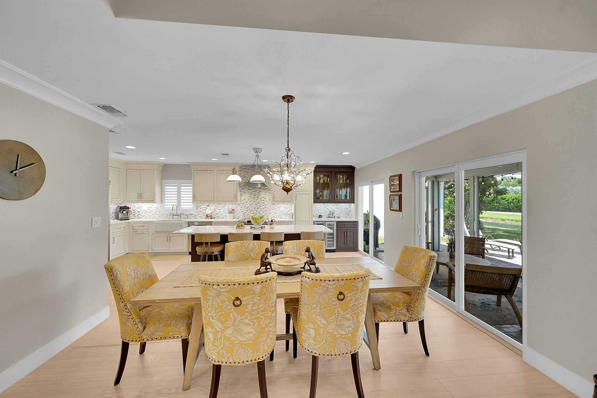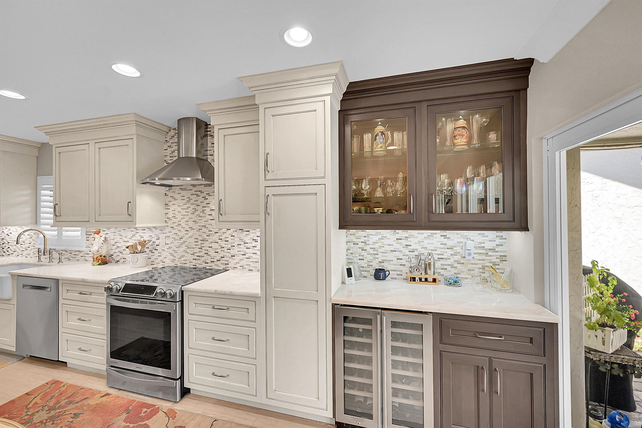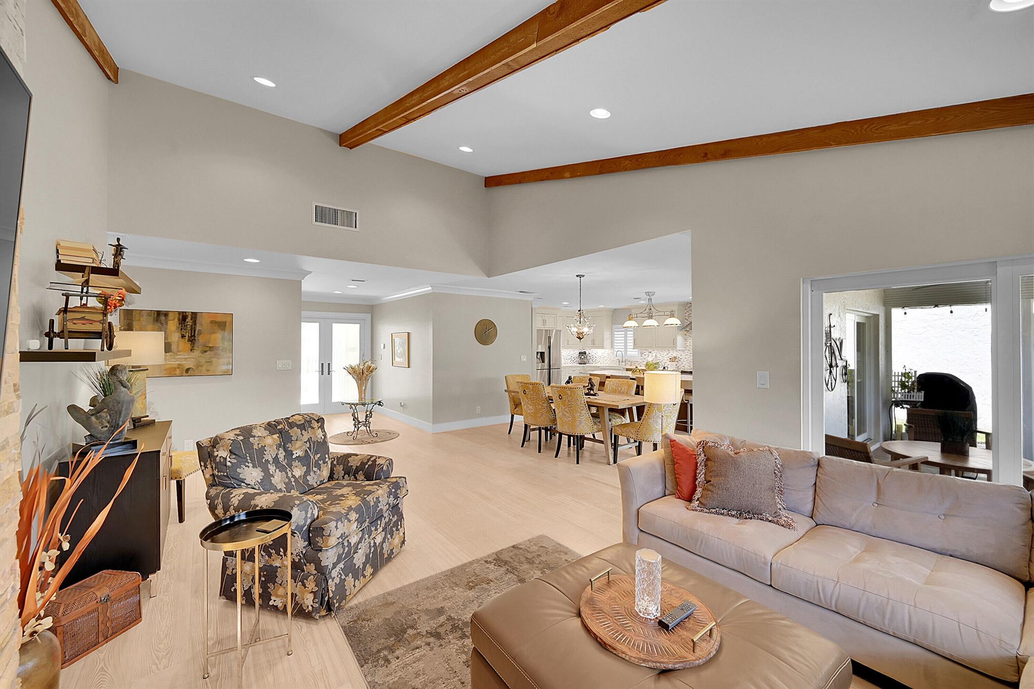 Located in the highly sought-after community of Camino Woods in central Boca Raton, this exquisitly upgraded 3-bedroom, 2-bath home offers an open living area with vaulted ceilings. The kitchen features a center island with quartz countertops, wine bar, & wine fridge. Enjoy the cozy ambiance of a decorative electric fireplace and the elegance of plantation shutters throughout, while the updated baths include a main bathroom with double sinks & a sleek glass-enclosed shower. A separate laundry room & a 2 car garage add convenience. Step outside to a paved patio & enjoy serene water views from the private backyard--perfect for relaxing or entertaining. This 55+ community is just 5 miles from the beach & has a community pool & clubhouse. HOA fee of $390 per month incl all landscaping & more