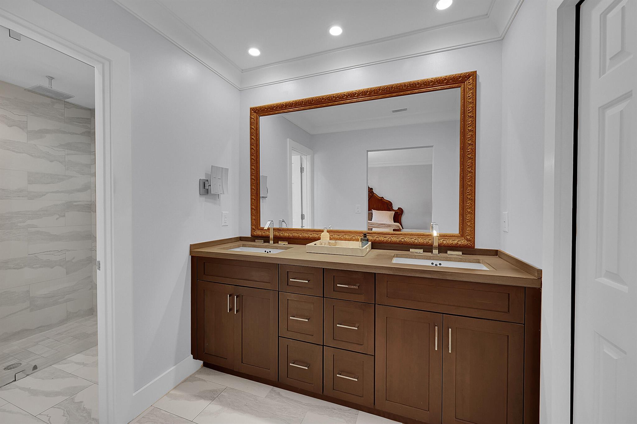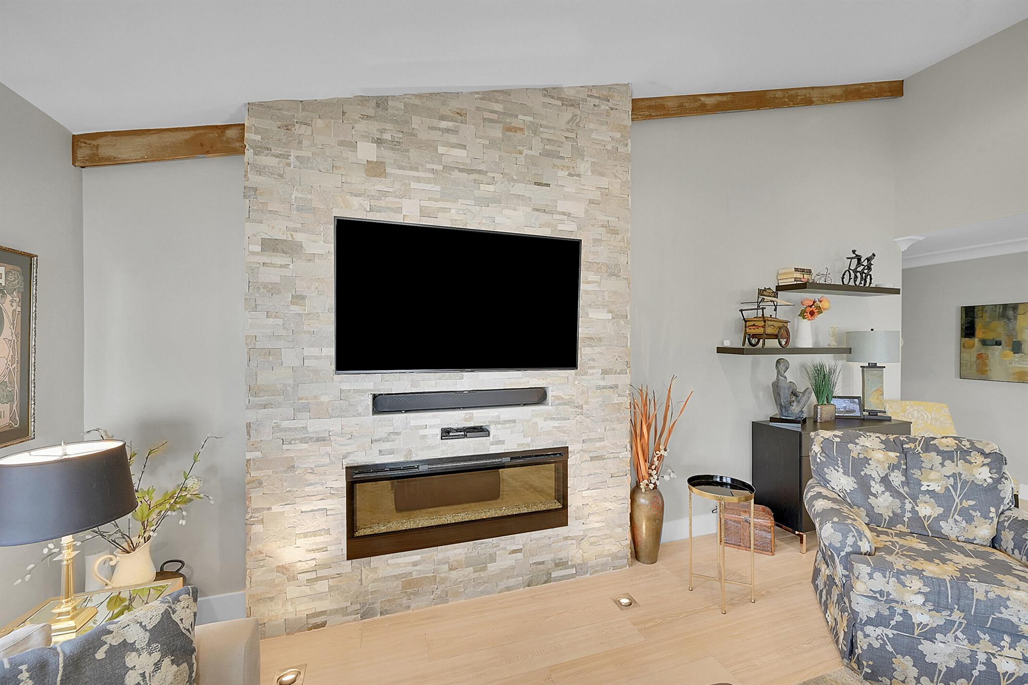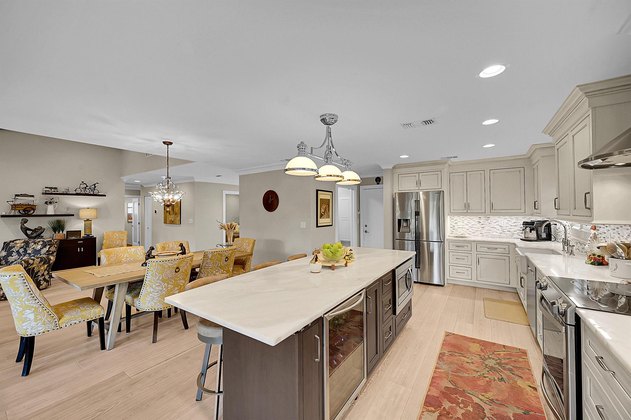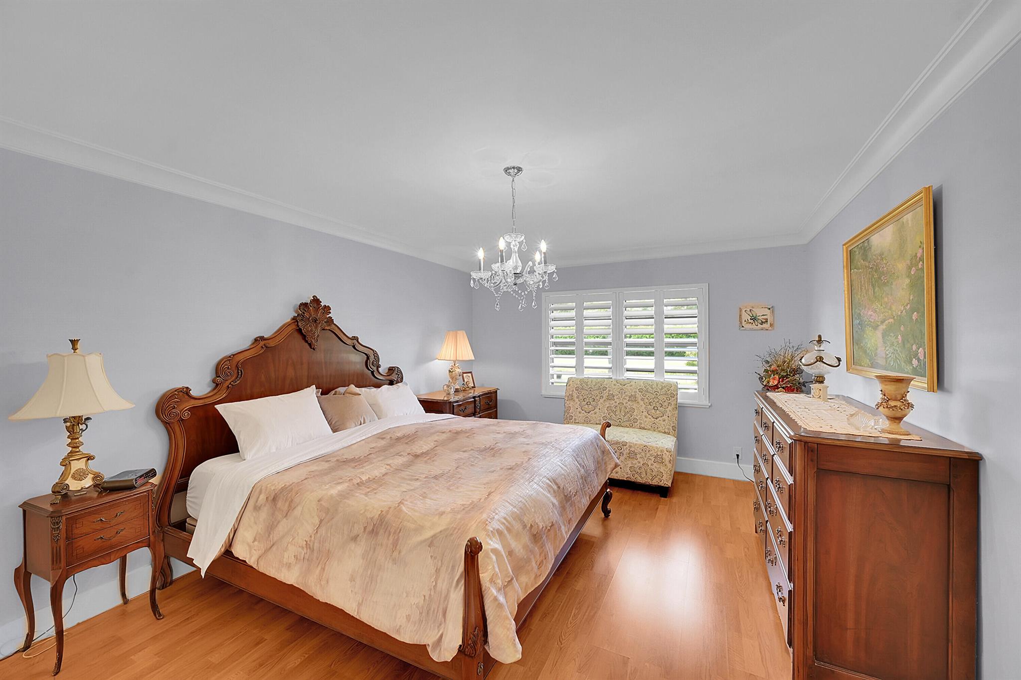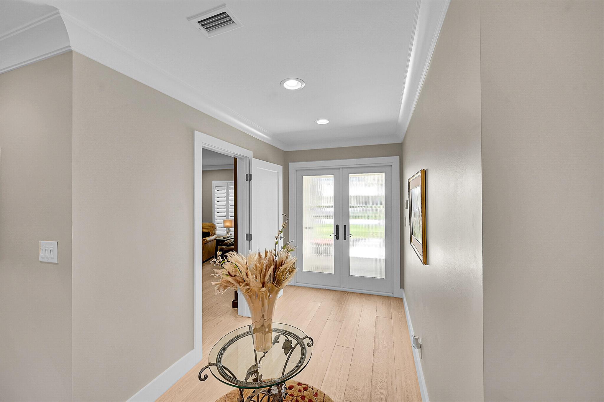 Located in the highly sought-after community of Camino Woods in central Boca Raton, this exquisitly upgraded 3-bedroom, 2-bath home offers an open living area with vaulted ceilings. The kitchen features a center island with quartz countertops, wine bar, & wine fridge. Enjoy the cozy ambiance of a decorative electric fireplace and the elegance of plantation shutters throughout, while the updated baths include a main bathroom with double sinks & a sleek glass-enclosed shower. A separate laundry room & a 2 car garage add convenience. Step outside to a paved patio & enjoy serene water views from the private backyard--perfect for relaxing or entertaining. This 55+ community is just 5 miles from the beach & has a community pool & clubhouse. HOA fee of $390 per month incl all landscaping & more