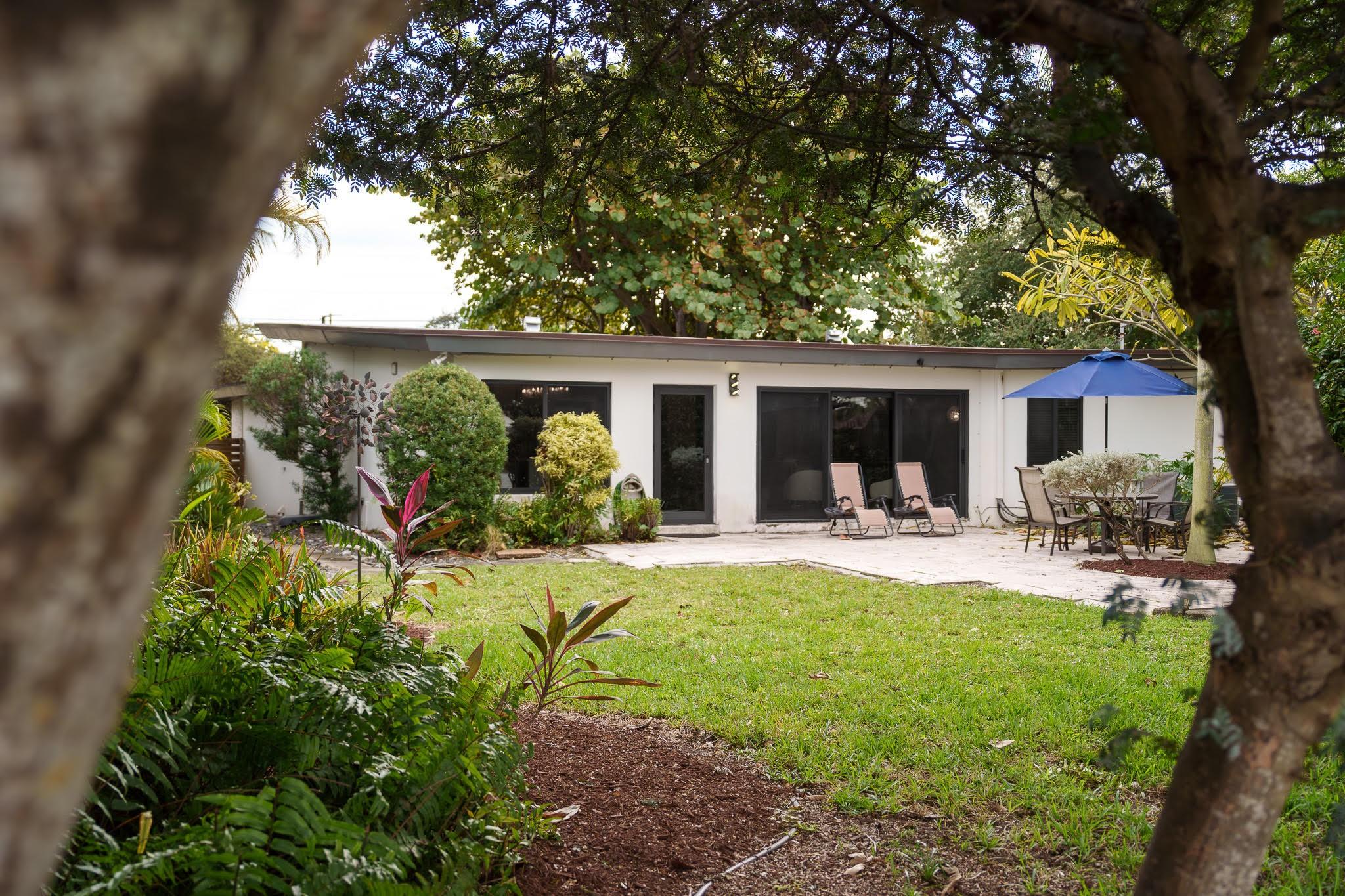 Discover your Mid Century "turn key" dream home in this stunning contemporary waterfront property, currently operated as a permitted Airbnb! This beautifully designed two-bedroom, two-bath residence features exquisite travertine flooring and a modern chef's kitchen equipped with stainless steel appliances, perfect for culinary enthusiasts. Home features, newer roof, new dock, "Eurotech" impact windows and doors, along with modern smart home features and lighted accent wall, open living area, adorned with mid-century vaulted ceilings, allowing natural light to illuminate your surroundings. Home is being sold fully furnished. Bring your kayak or paddle board and enjoy touring Middle river, !! Mins to Wilton Drive and the shoppes of Wilton Manors, easy access to beaches and 95 ! --