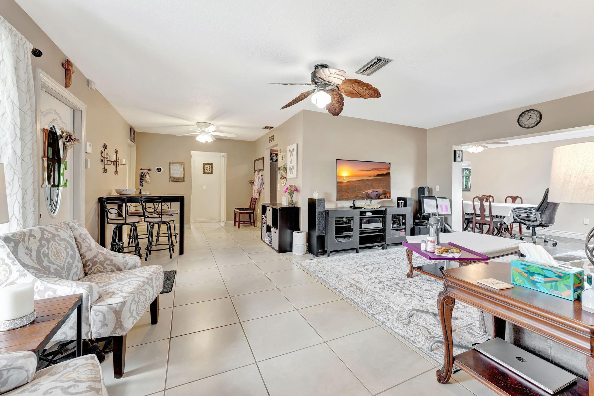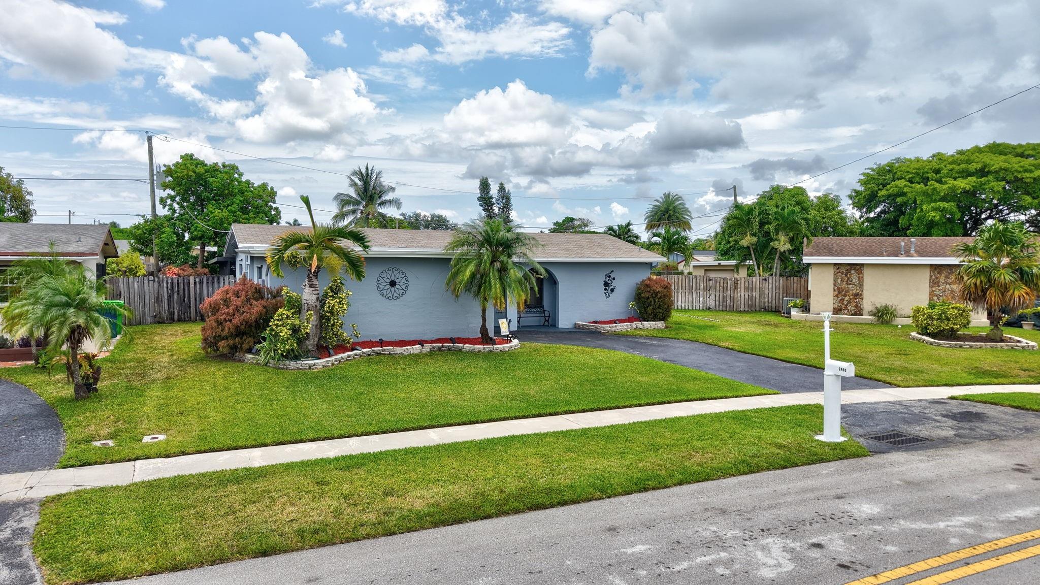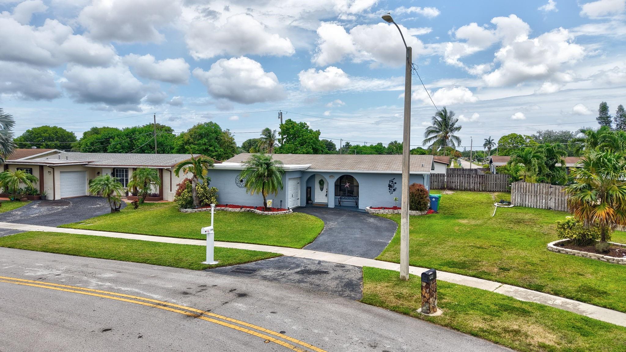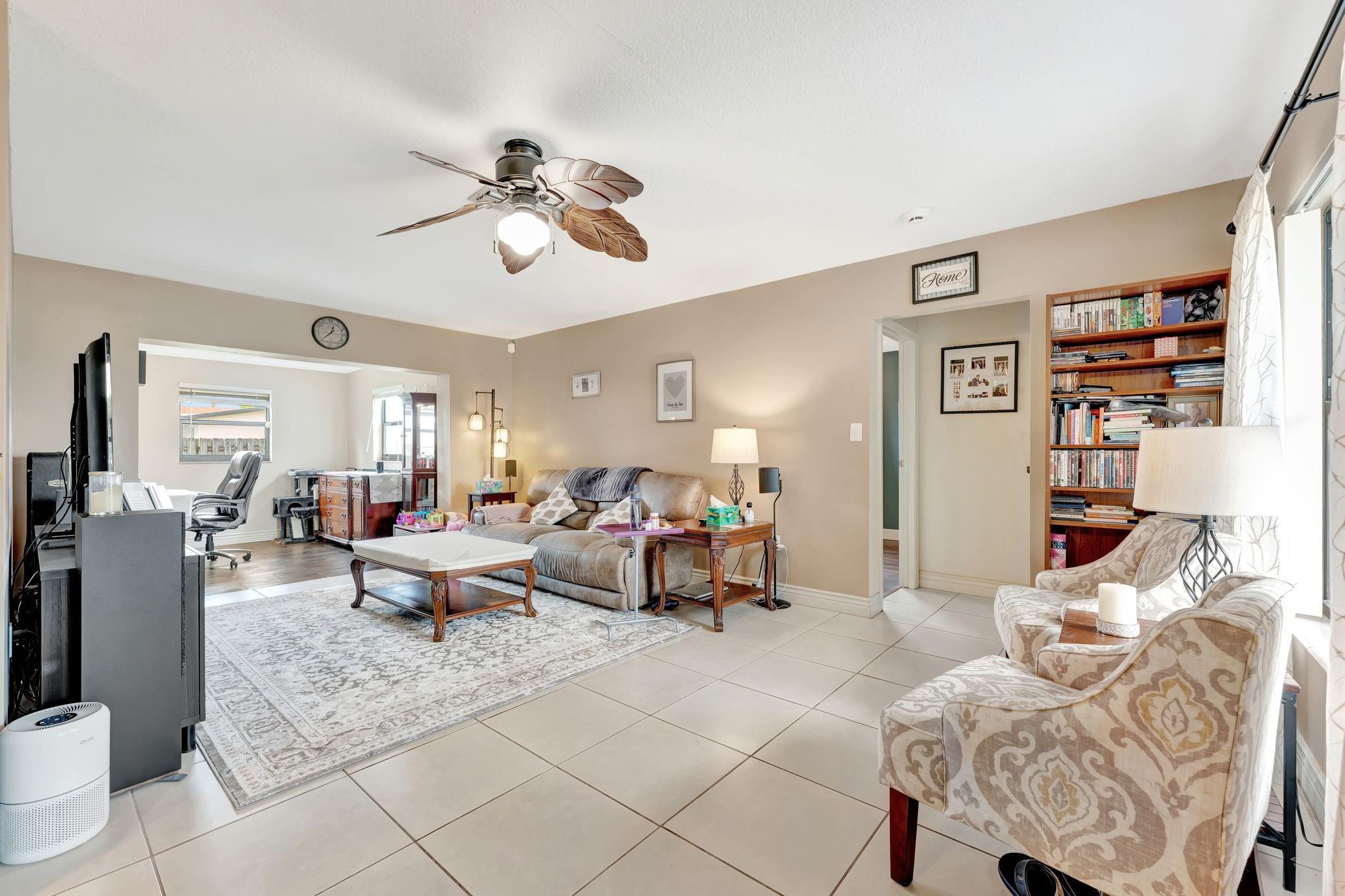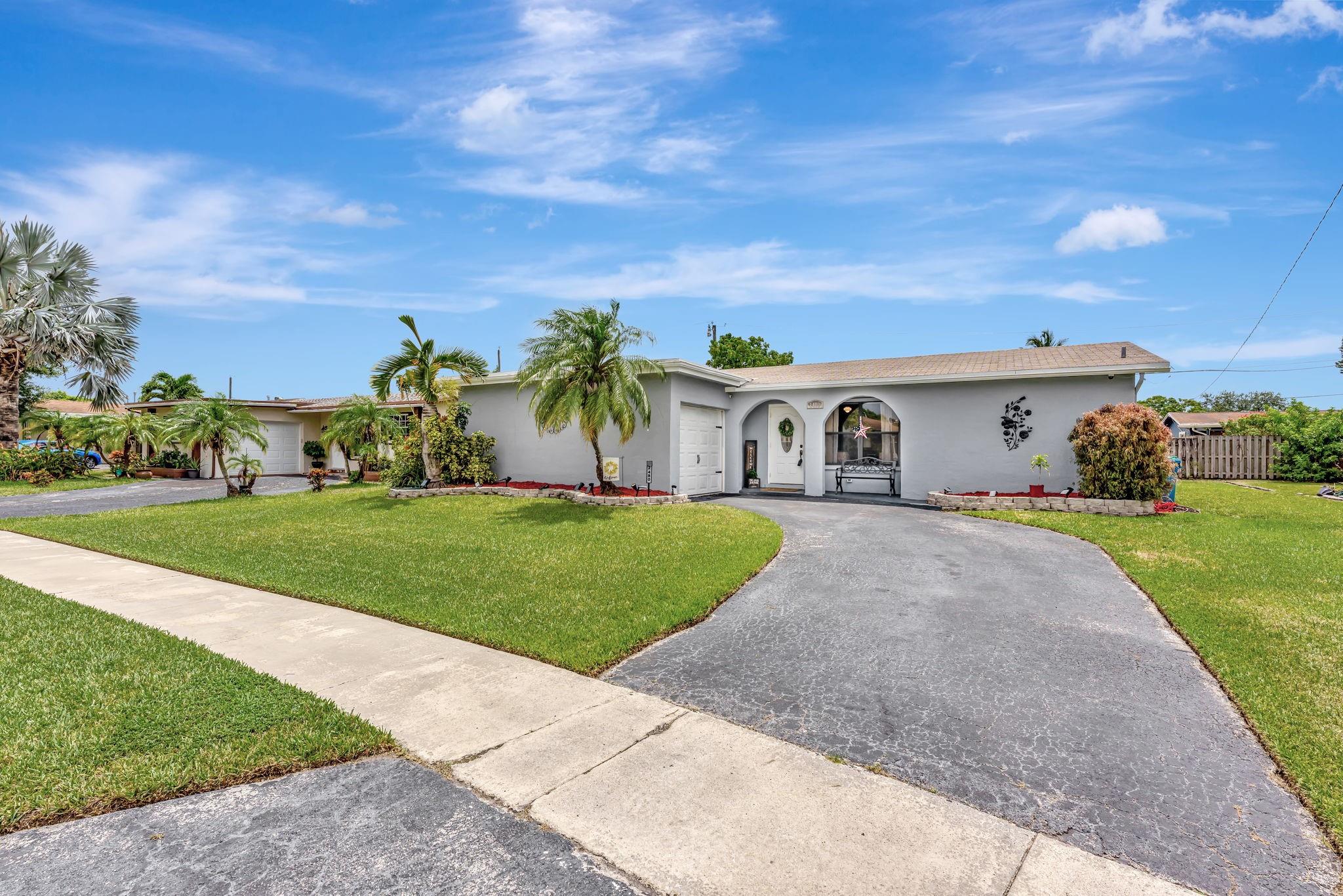 This is the amazing home you've waited for in a quiet nghbhd with NO HOA! Boasting a huge dining/living room + huge family room could be converted to 3rd BR easily. Gorgeous wood cabinetry kitchen remodeled with pull out drawers, pantry and granite c/tops, new s/s frig, sink filtration. Energy savings with the gas stove and 2024 hot water heater! Roof is 2015 & flat roof has been sealed yearly. Full hurricane shutter protection. New A/C 2023, both electric panels have been updated. HUGE 7443 s/f lot provides ample space to add a bedroom or a pool. Yard partially fenced. Enclosed patio invites a cool breeze for outside dining. 1-car garage has updated door, dedicated a/c unit, 2018 washer & 2024 dryer and ceiling storage racks. This won't last. See atts! 100,00 sf Civic center>Pools/GYM+