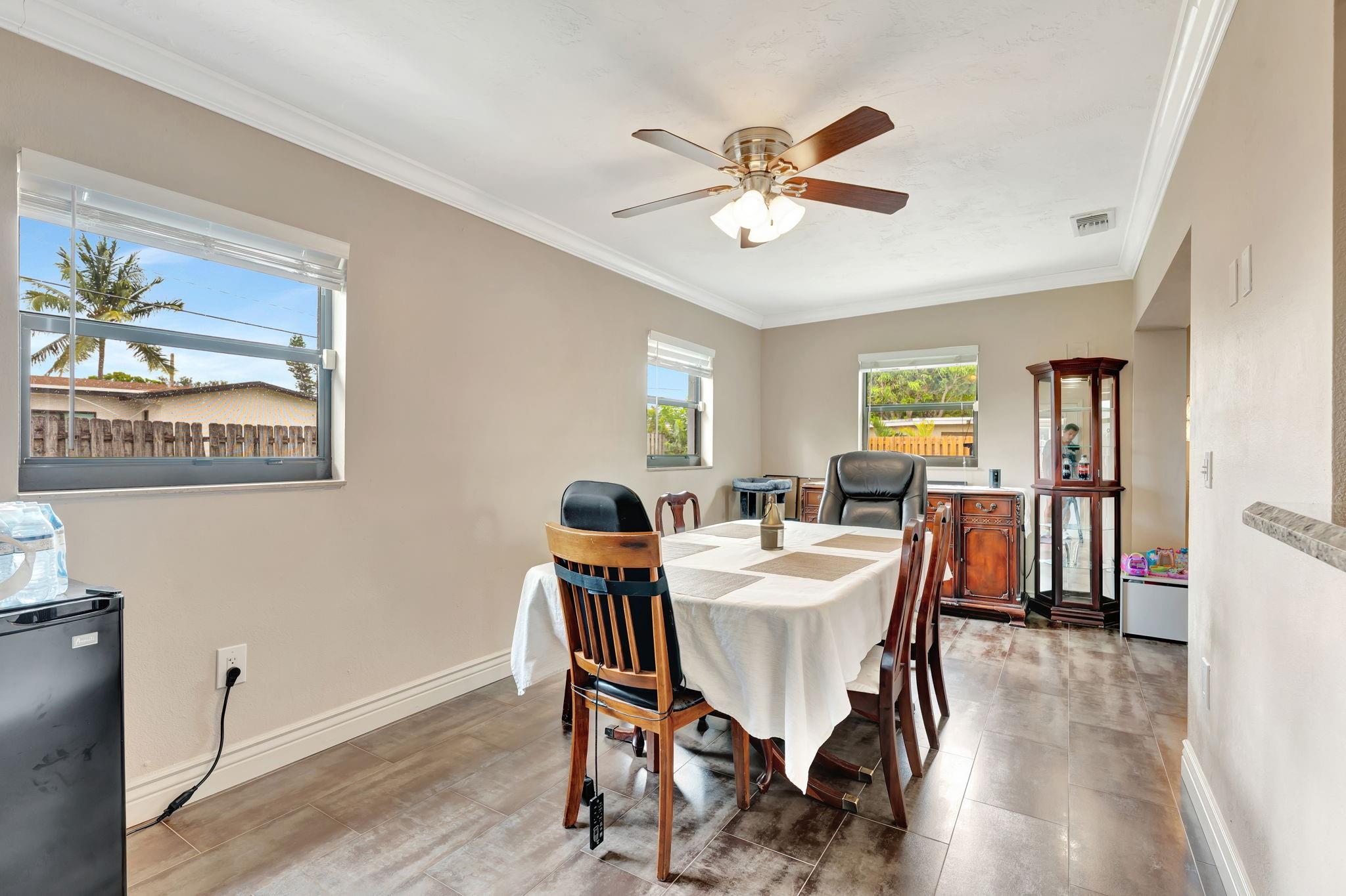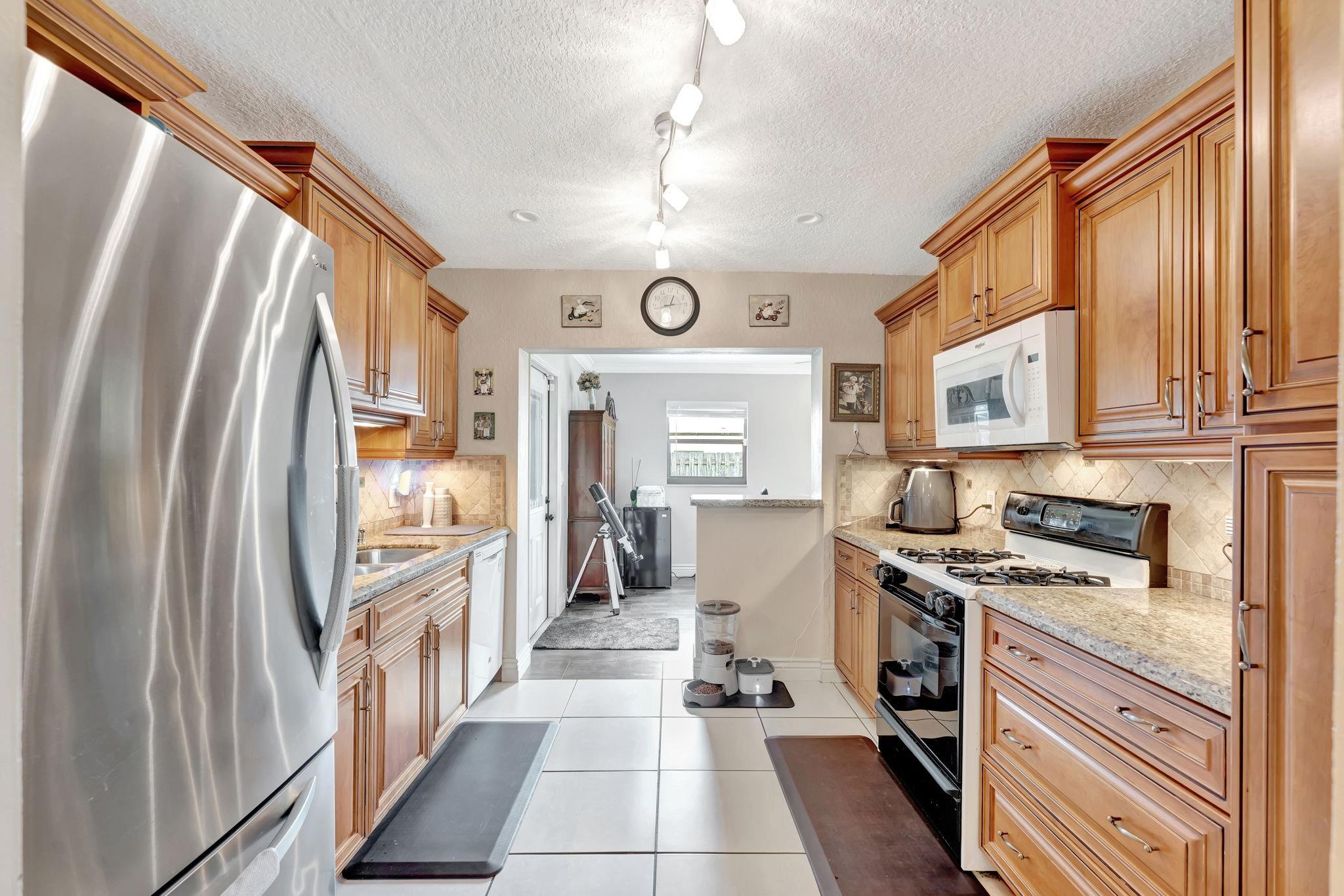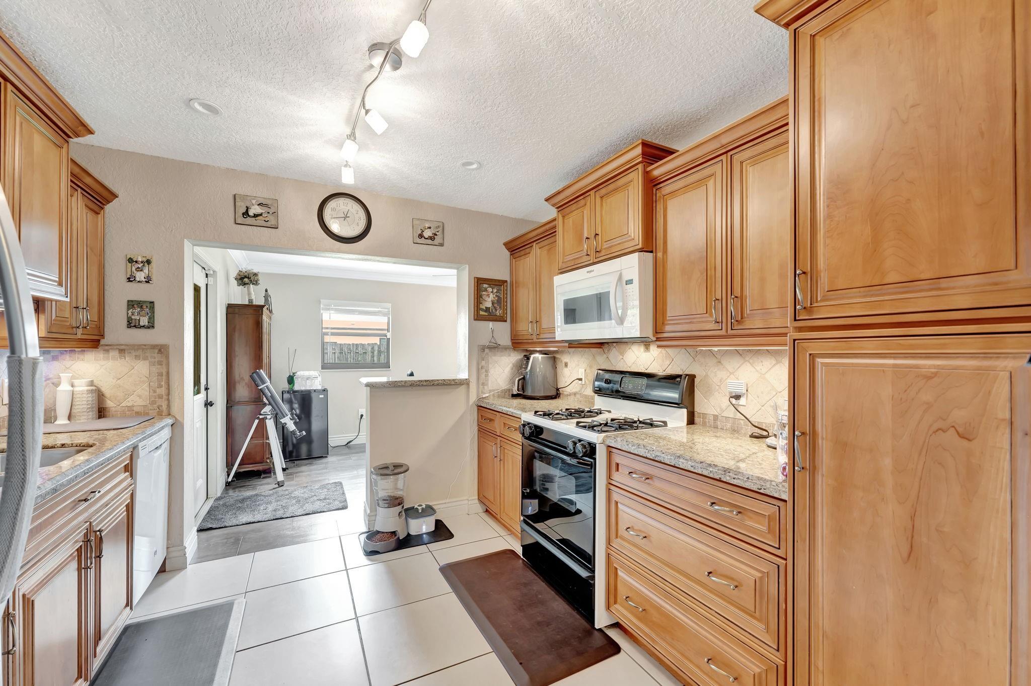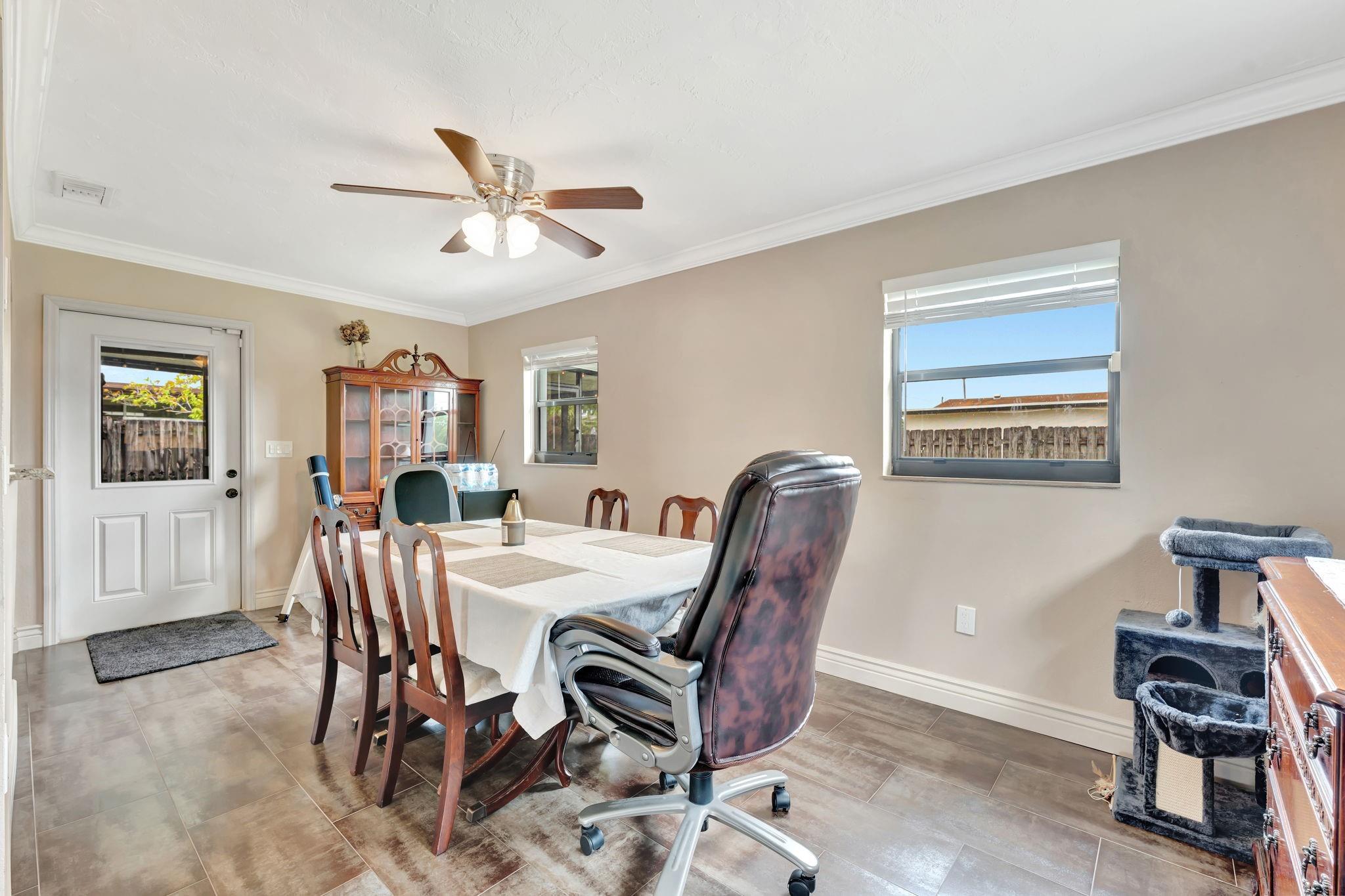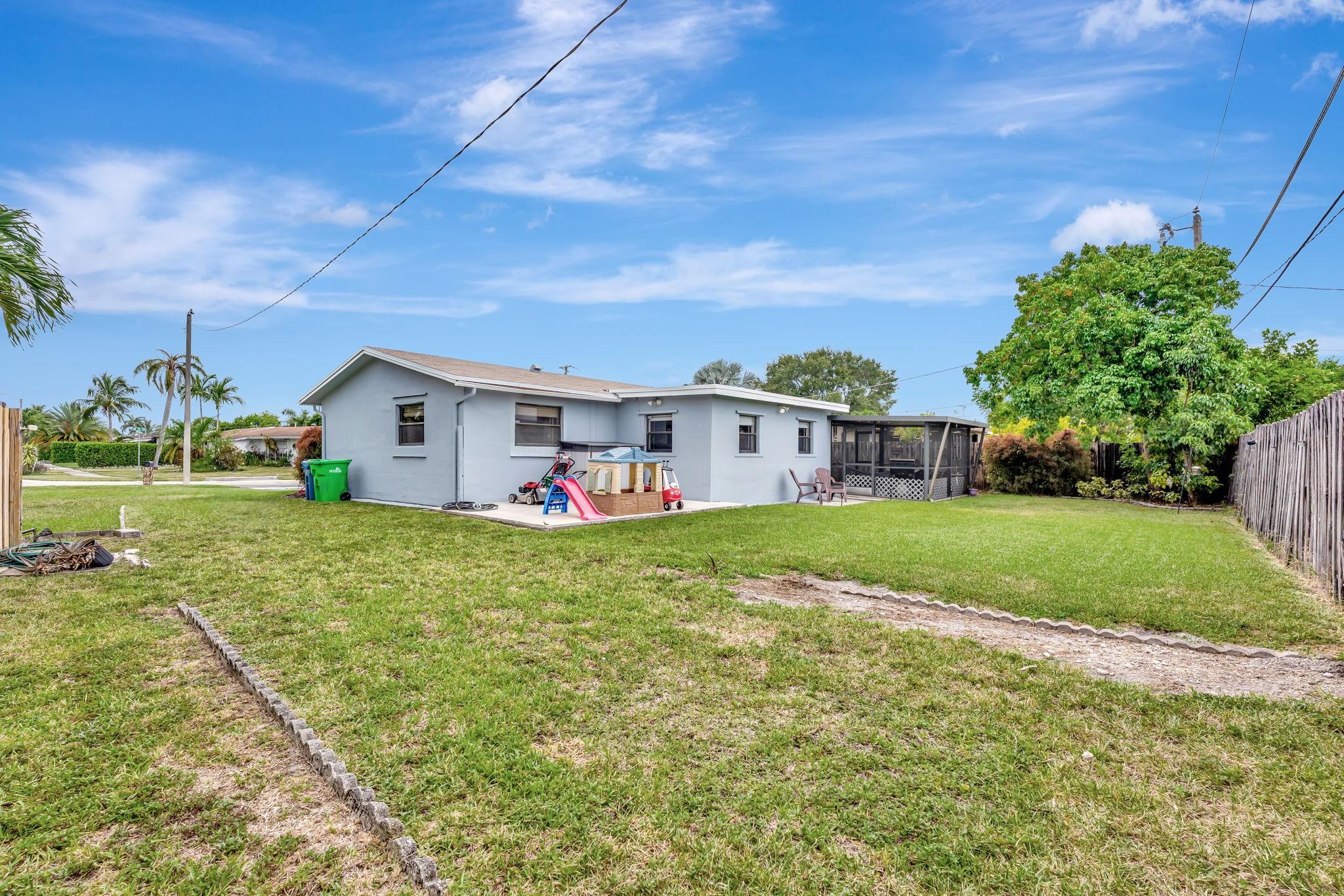 This is the amazing home you've waited for in a quiet nghbhd with NO HOA! Boasting a huge dining/living room + huge family room could be converted to 3rd BR easily. Gorgeous wood cabinetry kitchen remodeled with pull out drawers, pantry and granite c/tops, new s/s frig, sink filtration. Energy savings with the gas stove and 2024 hot water heater! Roof is 2015 & flat roof has been sealed yearly. Full hurricane shutter protection. New A/C 2023, both electric panels have been updated. HUGE 7443 s/f lot provides ample space to add a bedroom or a pool. Yard partially fenced. Enclosed patio invites a cool breeze for outside dining. 1-car garage has updated door, dedicated a/c unit, 2018 washer & 2024 dryer and ceiling storage racks. This won't last. See atts! 100,00 sf Civic center>Pools/GYM+