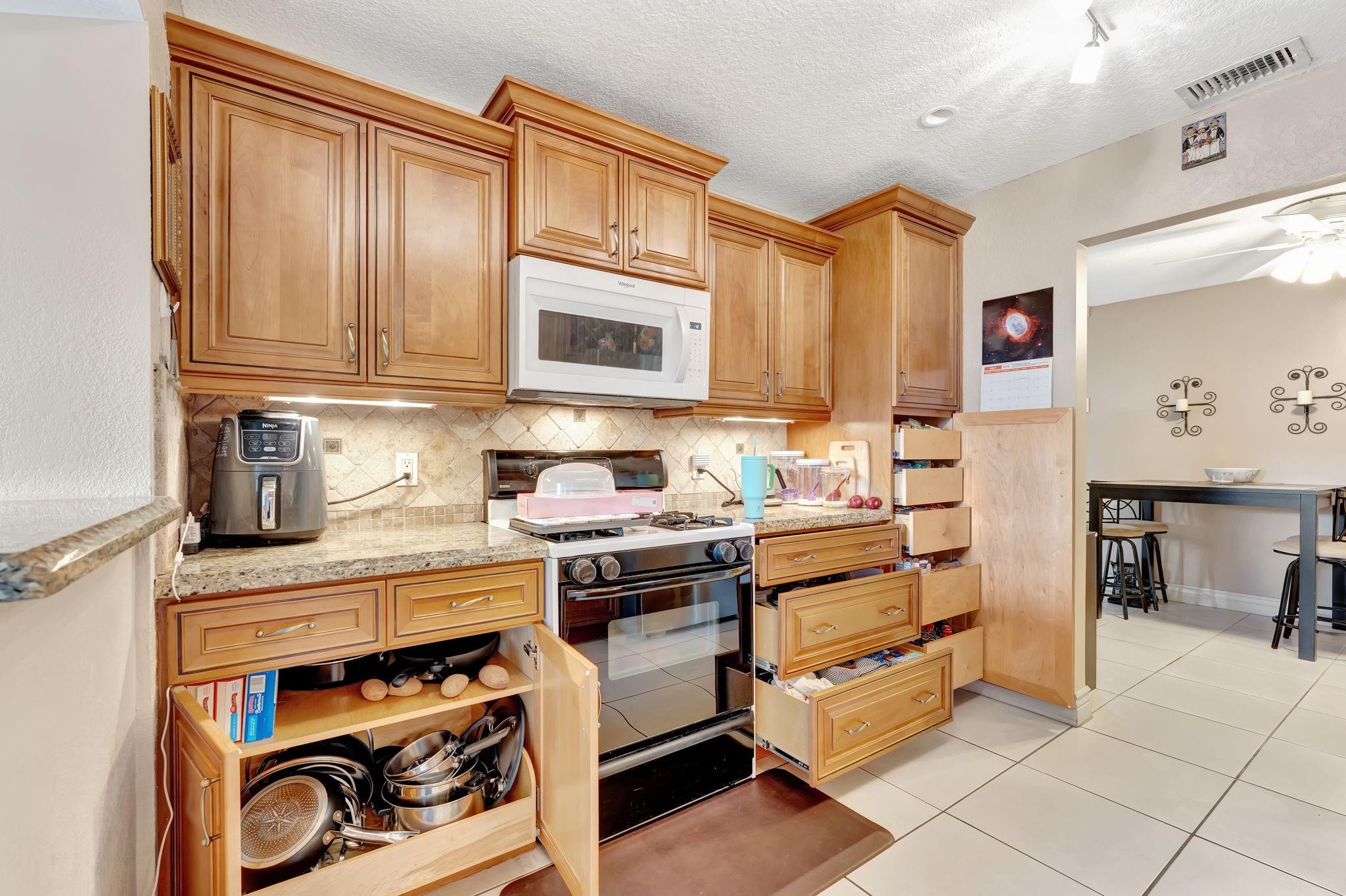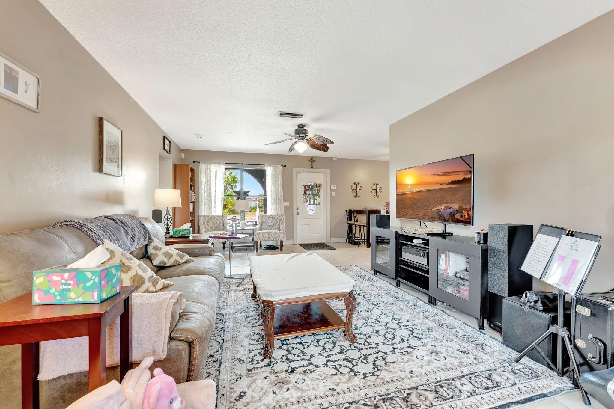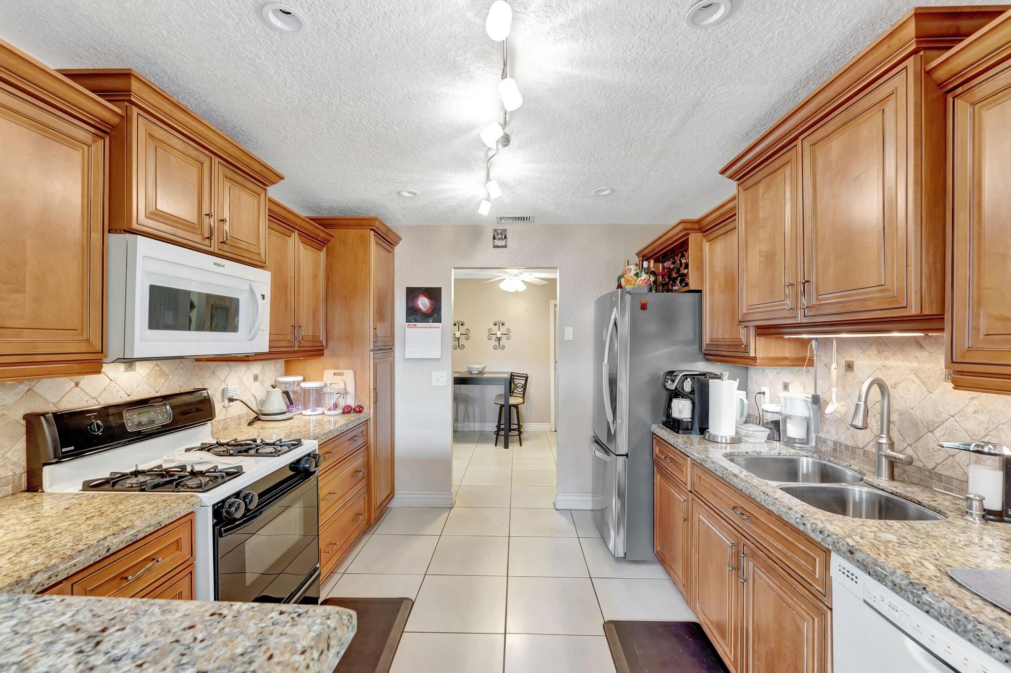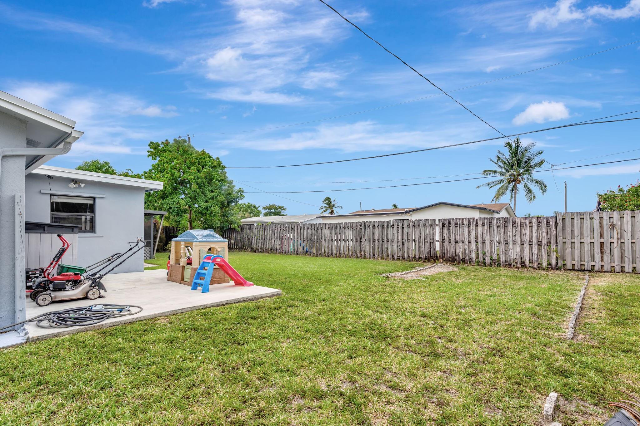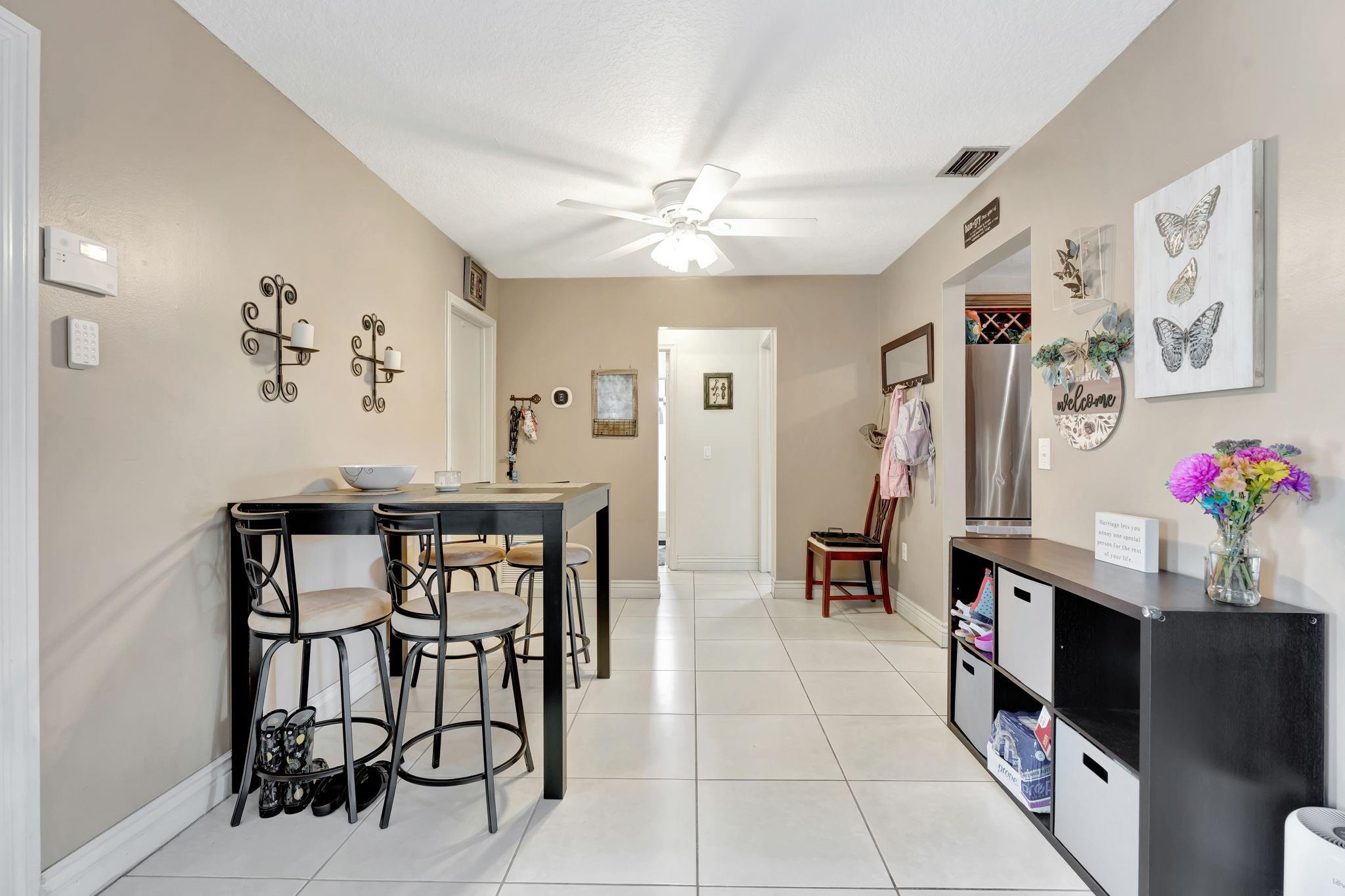 This is the amazing home you've waited for in a quiet nghbhd with NO HOA! Boasting a huge dining/living room + huge family room could be converted to 3rd BR easily. Gorgeous wood cabinetry kitchen remodeled with pull out drawers, pantry and granite c/tops, new s/s frig, sink filtration. Energy savings with the gas stove and 2024 hot water heater! Roof is 2015 & flat roof has been sealed yearly. Full hurricane shutter protection. New A/C 2023, both electric panels have been updated. HUGE 7443 s/f lot provides ample space to add a bedroom or a pool. Yard partially fenced. Enclosed patio invites a cool breeze for outside dining. 1-car garage has updated door, dedicated a/c unit, 2018 washer & 2024 dryer and ceiling storage racks. This won't last. See atts! 100,00 sf Civic center>Pools/GYM+