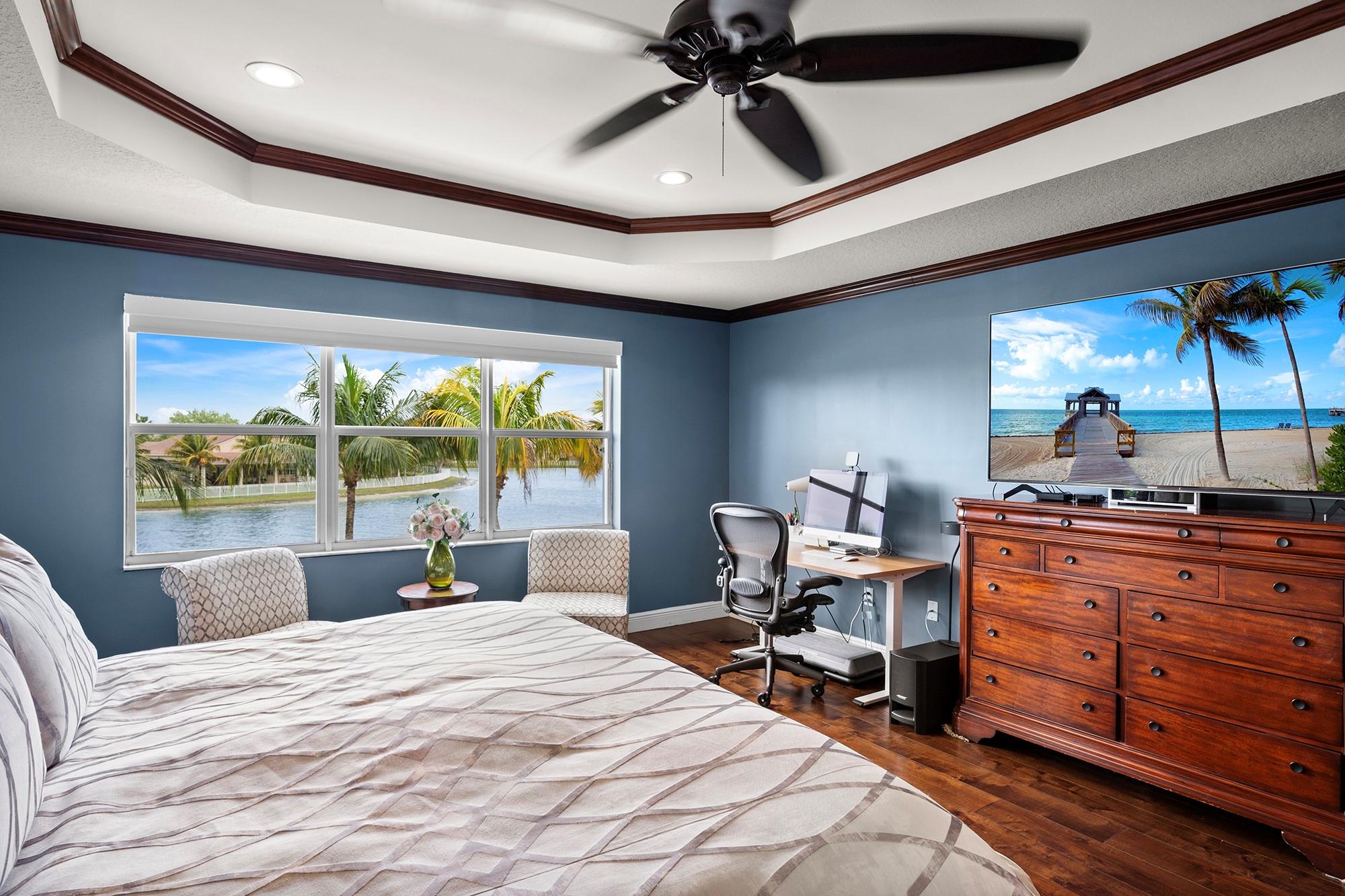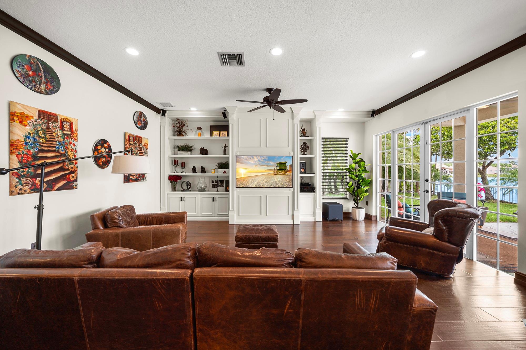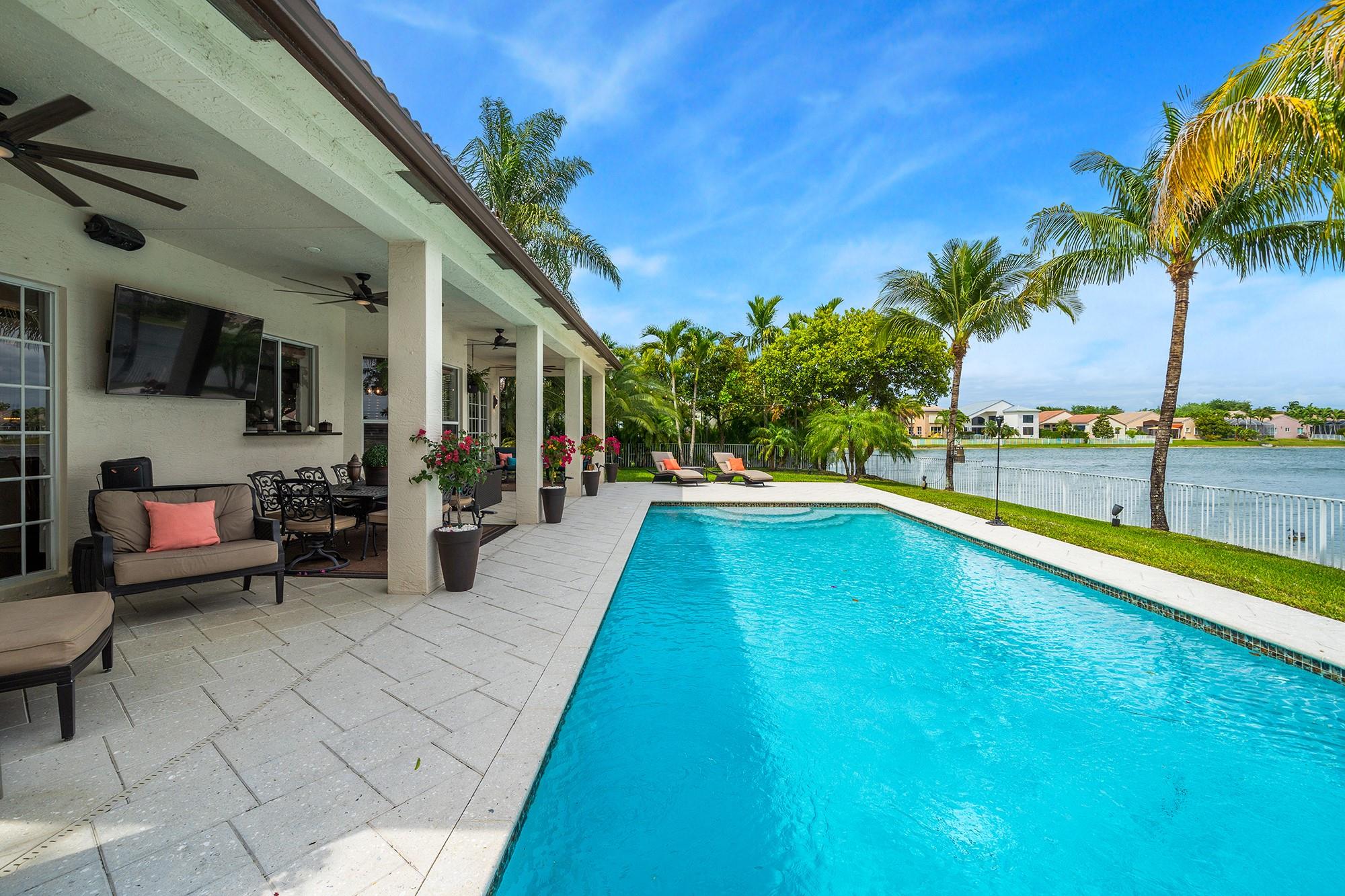 Opportunity knocks!! Priced UNDER Appraised value! Exquisite Estate offers breathtaking lake views! Elegance abounds-hardwood floors, gourmet island kitchen with new Cambria Quartz counters and appliances. Entertainers dream, enjoy gathering in the beautiful family room overlooking the tranquil pool area. The luxurious primary suite offers custom-designed walk in closets, while all three bathrooms have been completely renovated with designer finishes. New heated saltwater pool & spa, fully controlled via the iAquaLink app. Covered patio boasts ceiling fans and TV mount, perfect for entertaining. Upgraded ACs, EV charger, built-in garage storage, LED lighting. Sunset Lakes features resort-style amenities, including a clubhouse, fitness center, and tennis courts. Don’t miss this dream home!