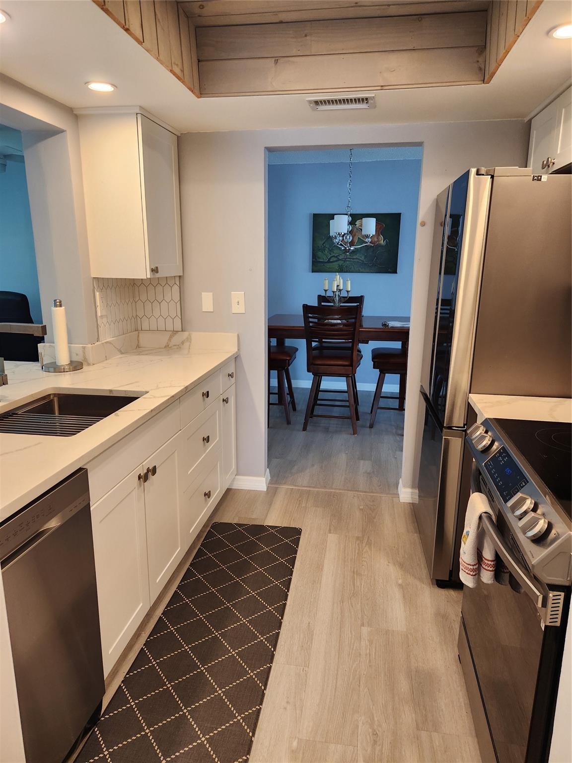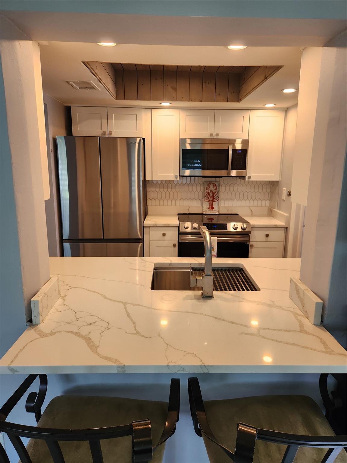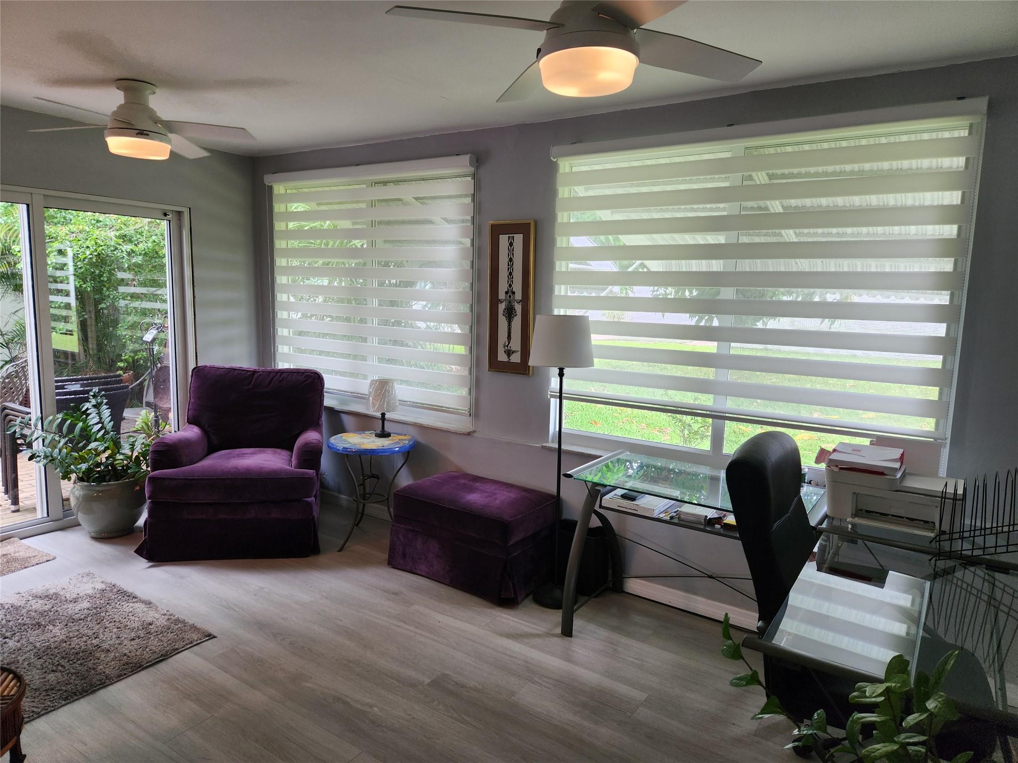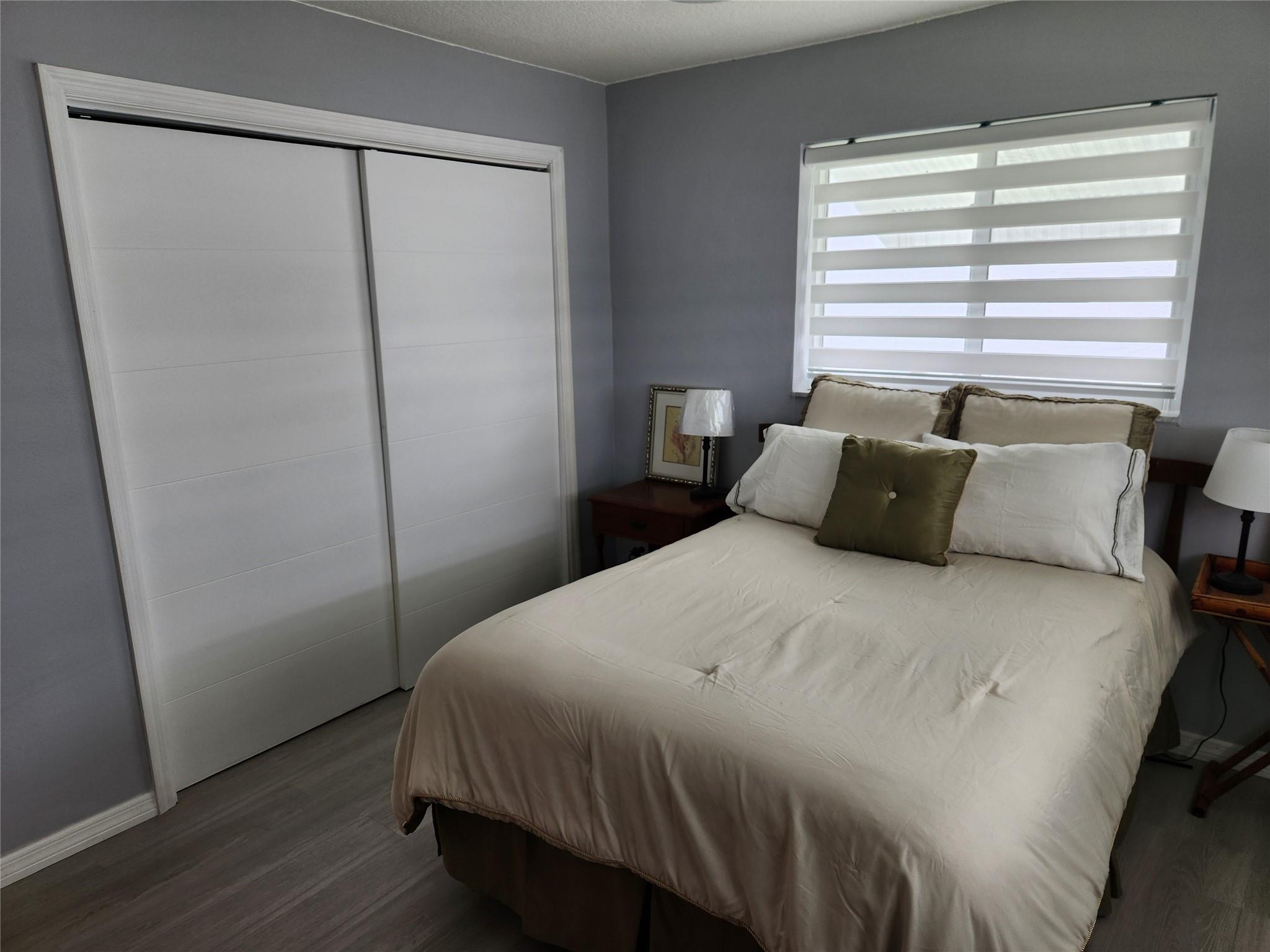 This home has been substantially updated over the past 3 yrs. New Roof, Hurricane impact windows and doors, new flooring throughout, new interior paint and interior doors. New kitchen cabinets, quartz countertops and stainless appliances. Updated bath, Primary bedroom has walk in closet. Both bedrooms have built in closet organizers. The kitchen breakfast bar opens into a sunny family room with sliding glass doors to the private patio. The Laundry area is located in the air-conditioned garage and has a second refrigerator and storage galore. The low monthly fee includes, water, sprinklers, two club houses and 2 pools, 9-hole golf course, courtesy van transportation for shopping and regular exterior painting of the home and roof. 1 yr home warranty provided by Seller.
