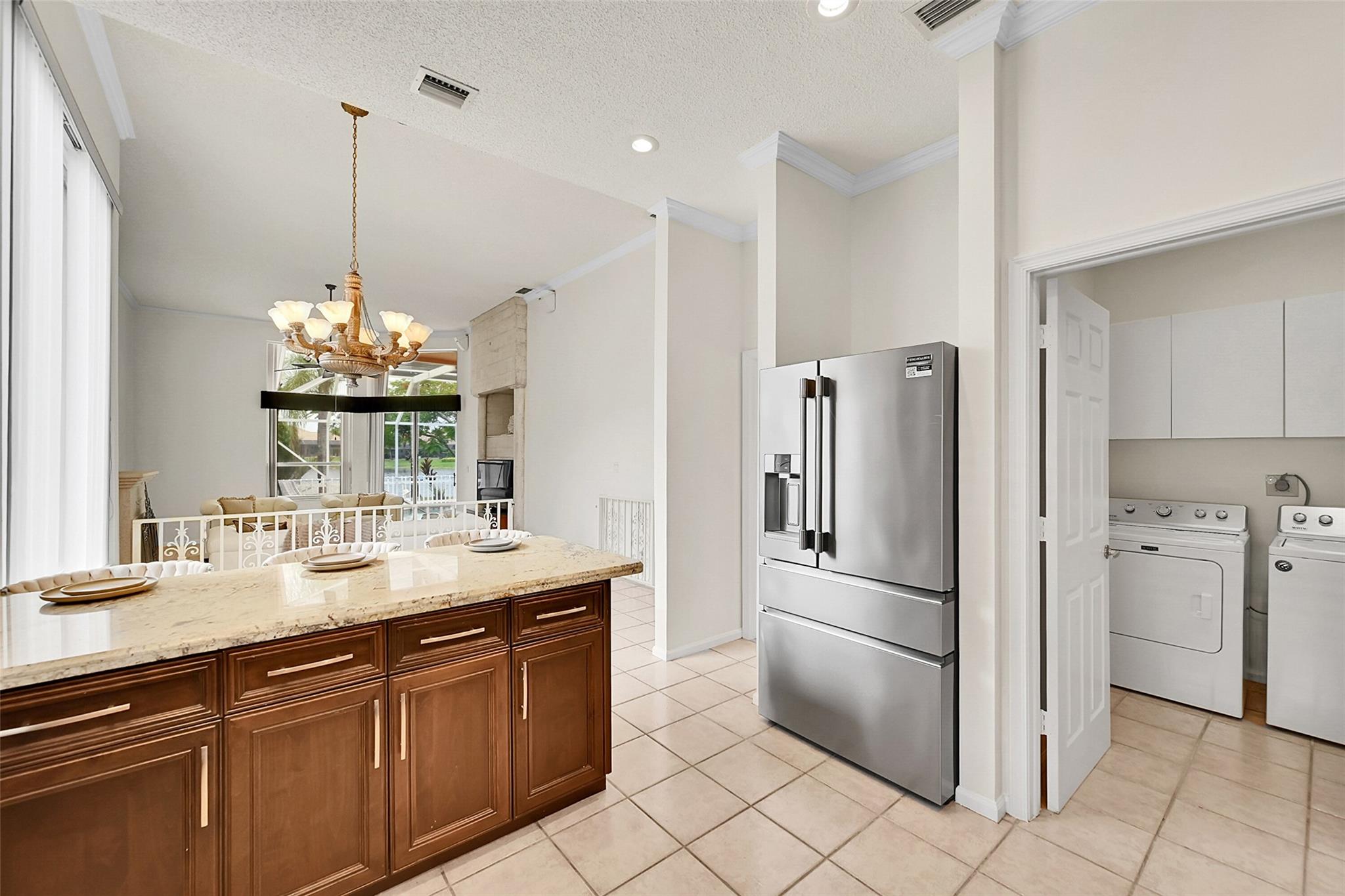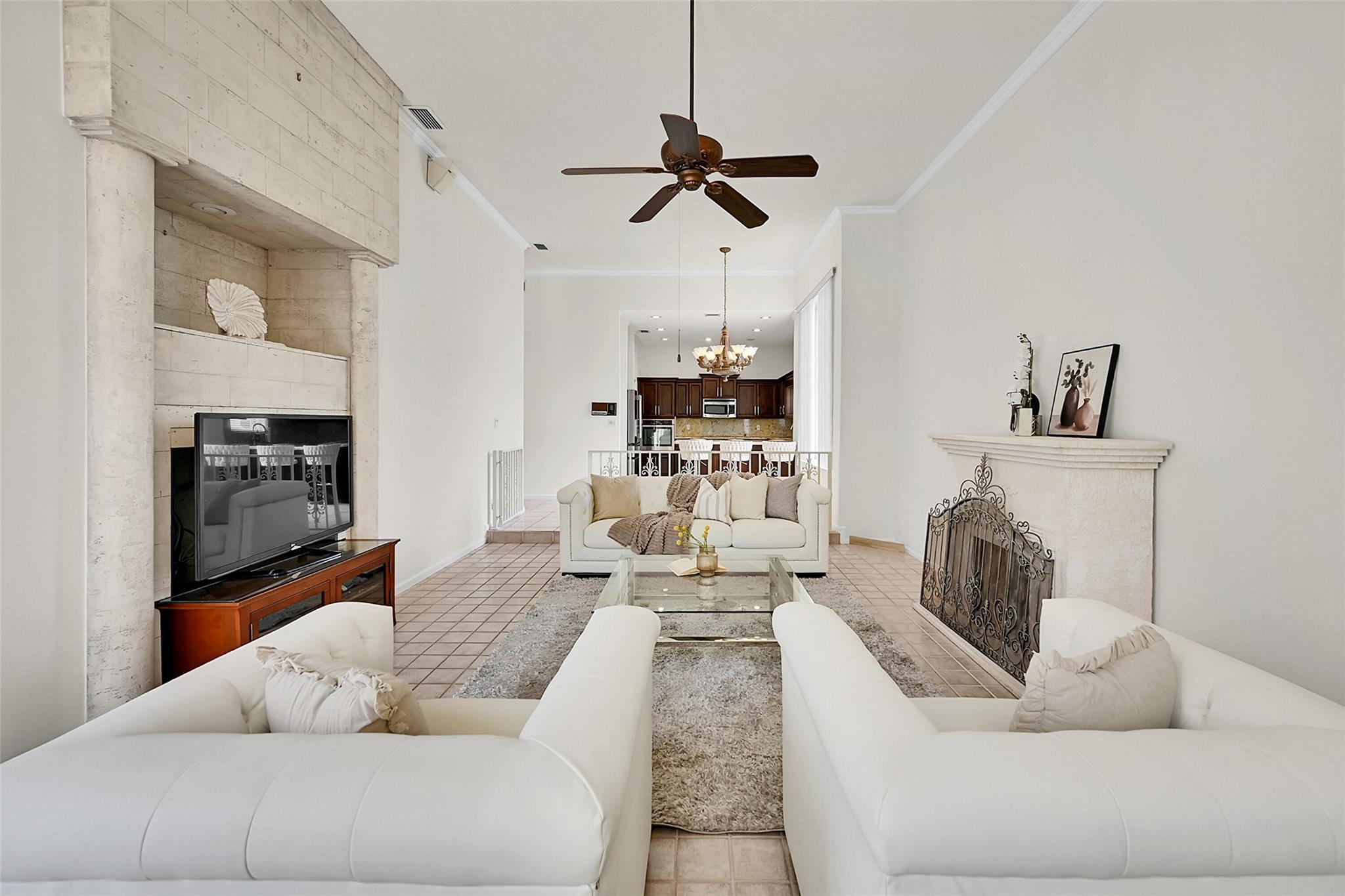 Imagine the sunsets here! Panoramic lake & pool views the moment you walk into this beautifully maintained home in the sought-after North Springs neighborhood - no HOA! Vaulted ceilings & tons of natural light make the space feel even bigger. Bright, open layout offers great flow for everyday living & entertaining. Spacious family room connects seamlessly to the kitchen & breakfast area - perfect for gatherings. Large primary suite has a sitting area w/ lake views & two walk-in closets w/ built-ins. The primary bath features double vanities, soaking tub, & a separate shower. All bedrooms are generously sized. 1/2 bath for guests & separate pool bathroom outside, so no one has to bring water through the house after swimming. This smart & functional layout works for any lifestyle.