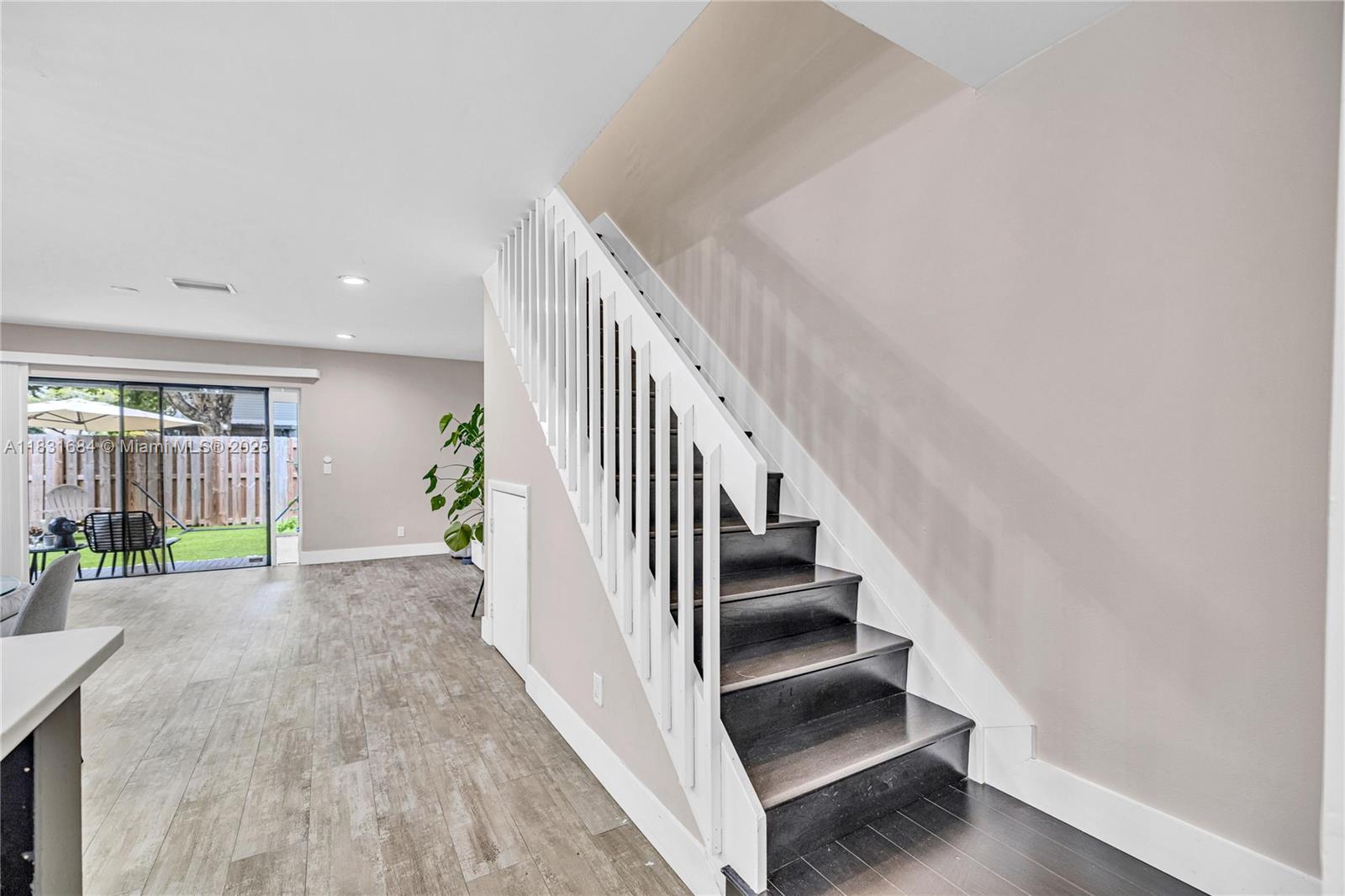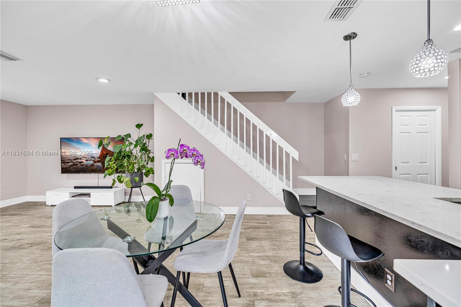 Impeccably maintained and thoughtfully updated, this two-story corner unit townhome offers spacious bedrooms, modern baths and a private backyard retreat. Enjoy the bright, open floor plan, featuring a contemporary kitchen with sleek cabinetry and countertops, and stainless steel appliances. The living and dining areas flow seamlessly, ideal for both everyday living and entertaining. Upstairs, the generous primary suite boasts a walk-in closet and an elegantly renovated en-suite bath. Two additional bedrooms provide ample space for family, guests, or a home office. Enjoy the comfort of a low-maintenance lifestyle with your own fenced yard—perfect for outdoor dining or quiet relaxation. Ideally located near shops, dining and accessibility to expressways.