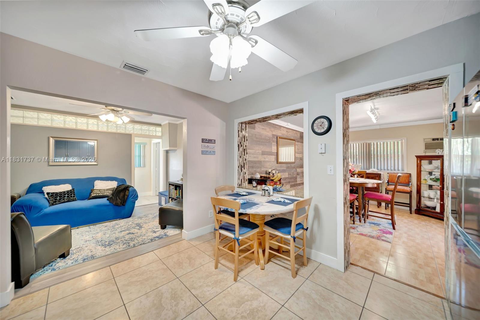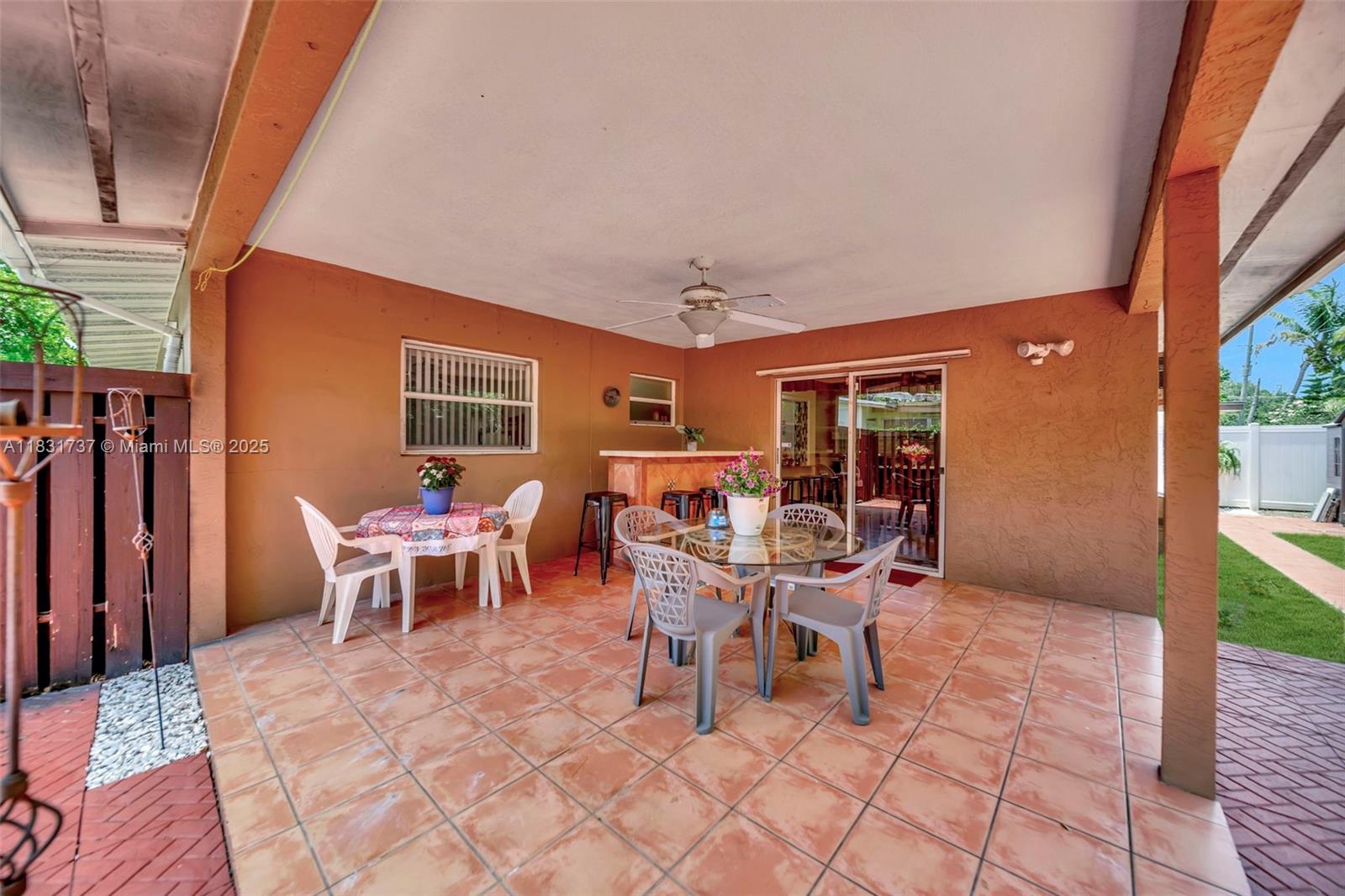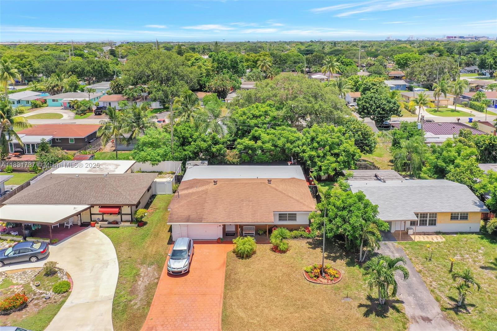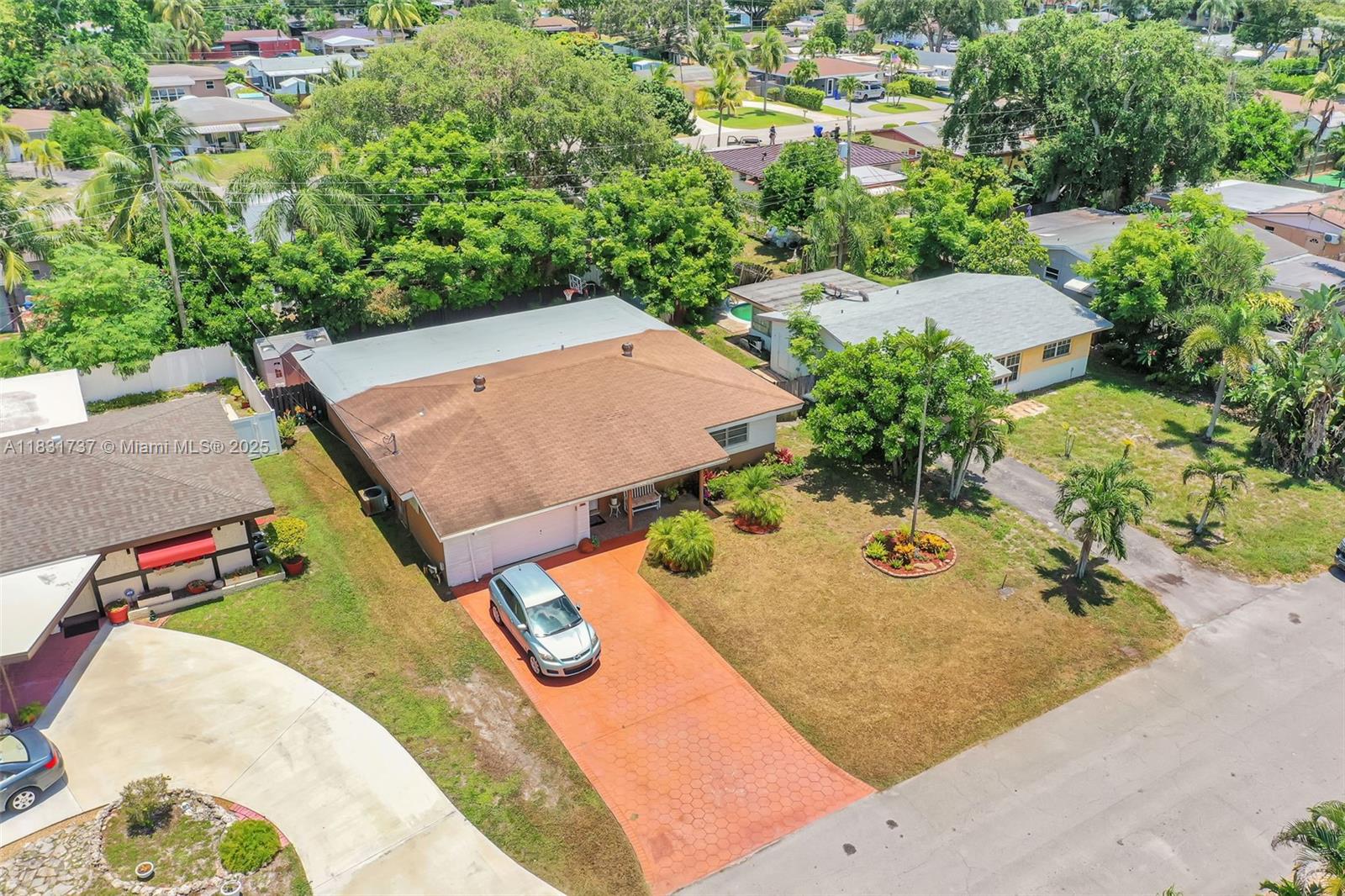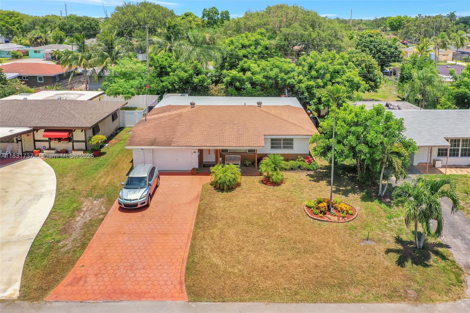Beautiful home offers 3 bedroom, 2 bath. 1,820 sq ft of living space. The spacious layout features an upgraded kitchen, large living area, formal dining/family room, den or office, and a master bathroom with double sinks. Elegant laminate flooring flows throughout, and the eastern exposure fills the home with natural light. Large front and backyard, plus a covered patio with a snack bar, perfect for entertaining. Parking: 1-car garage and a paved driveway accommodating up to 5 large vehicles. Located in a quiet residential neighborhood just steps from T.Y. Park with its beautiful green spaces and water park. Prime location is under 10 minutes to Hard Rock Casino, FLL Airport, Memorial Hospital, major highways, shopping, dining, and more.