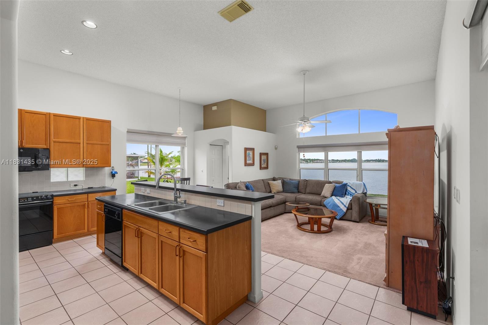 Don't miss this one! These waterfront lots are rarely available. Stunning Sunrises Await! Waterfront, Single-Level, 4 Bedrooms, 2½ Bathrooms Home is Nestled in Keystone Lake, a Guard Gated Community Built Around a Serene 143- Acre Lake. Impeccably Maintained, High Ceiling, Open Concept, Split Floor Plan, Screened and Covered Lanai, Expansive Unobstructed Lake View. Custom Zebra Shades and Accordion Shutters Throughout. Roof Replaced 2017. Low HOA Includes Basic Cable and High-Speed Internet, Guarded Main Gate plus 2 Additional Gate w/ Call Box, Microphone/Camera and Tot Lot. Top Rated Schools, Easy Access to All Major Highways, Minutes to Hospitals, Shopping, Restaurants, Parks and More! Only One Lucky Buyer.