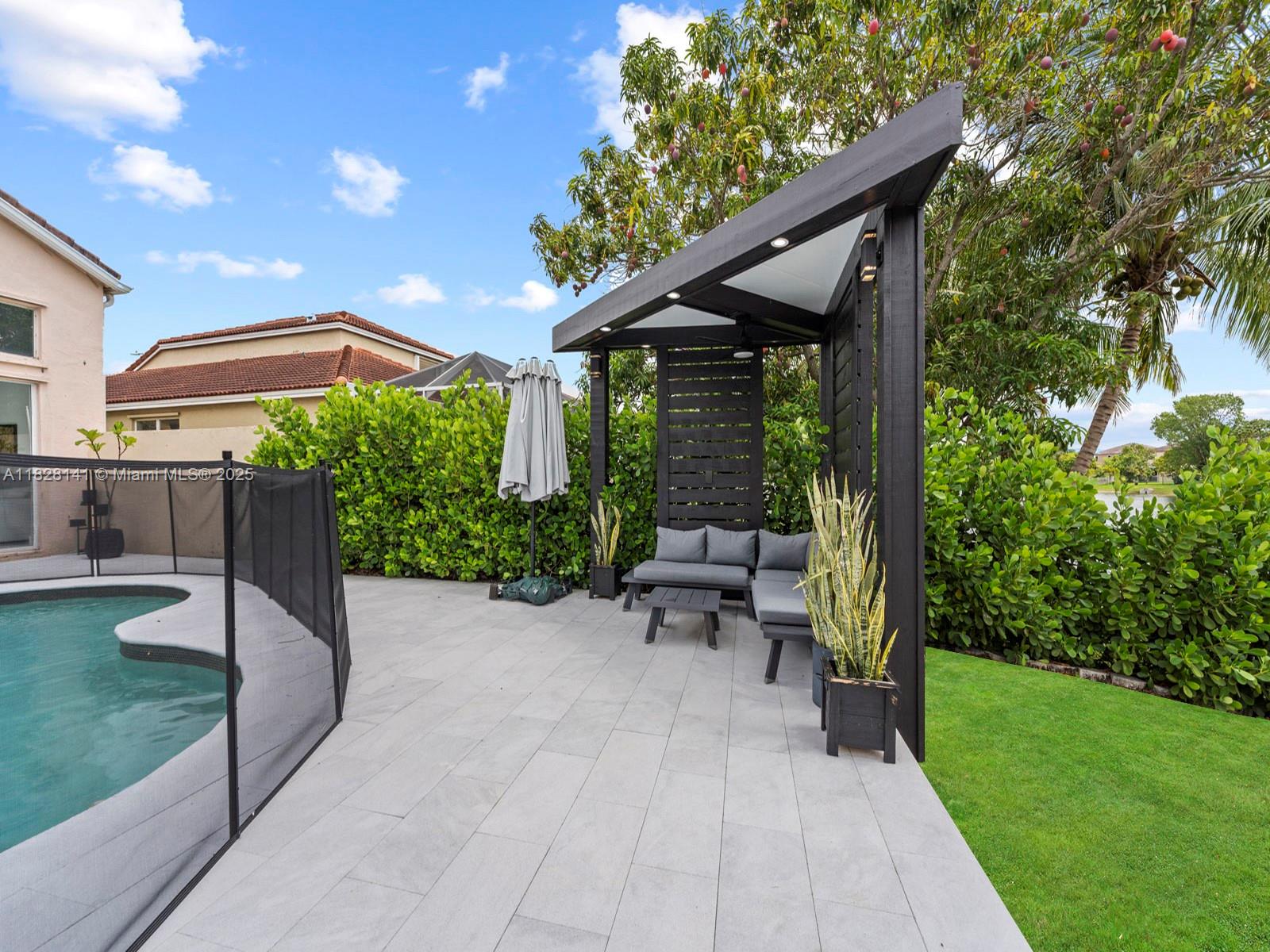 Welcome to this breathtaking 3 bed, 2.5 bath home in Towngate. Enjoy the beautiful water views from the moment you step inside. This home boasts marble + waterproof vinyl floors, a sleek kitchen with quartz countertops & dark SS appliances, vaulted ceilings, a mud room, custom closets, ample storage space, & a 2-car garage. The primary bedroom has generous floor space along with lake views, a large custom walk-in closet, & dual vanity sinks. Second bedroom also has a walk-in. A luxurious pool deck awaits you in the backyard, featuring 2 pergolas with recess lighting + fans - perfect for relaxing & entertaining. Clusia lines the backyard for an added touch of privacy & lush greenery. Great community amenities. Central location right off I-75 surrounded by excellent restaurants & shopping.