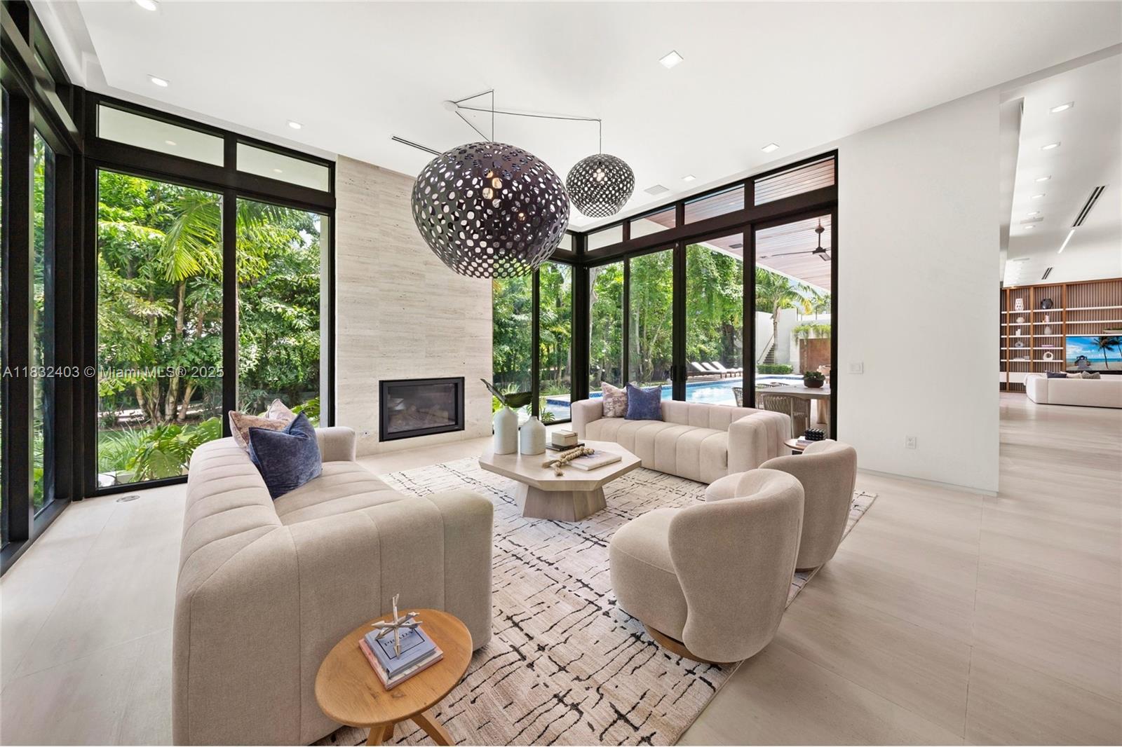 Experience luxury living in this stunning home designed by renowned architect Cesar Molina. Nestled on a quiet, cul-de-sac street, this residence offers exceptional privacy and tranquility. Enjoy resort-style amenities including an elevator, a sparkling pool with a shallow beach entry, and a breathtaking waterfall wall cascading into the jacuzzi. The thoughtfully designed layout features 4 suites, a family room on the second floor, and 2 bedroom’s plus an office on the main level. Culinary enthusiasts will love the gourmet kitchen, equipped with Sub-Zero appliances, wine coolers, and a Wolf range. Indulge in spa-inspired bathrooms with premium Hansgrohe and Duravit fixtures.