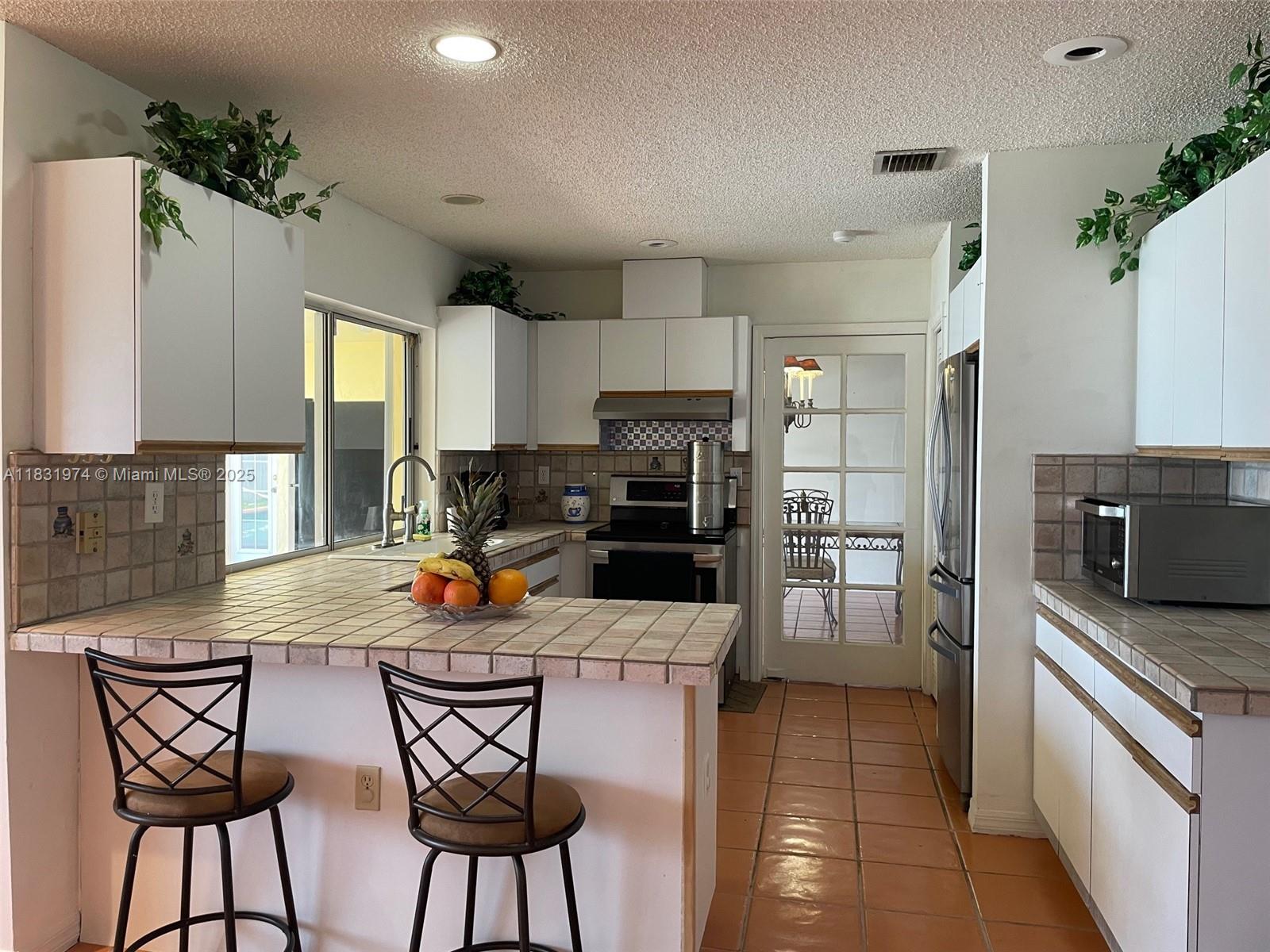 New roof being installed at this time. CBS=A Rare Find In Country Walk! This amazing 4 2 1/2 Pool Home is located in a cul-de-sac on a fenced 11,601' lot with many fruit trees plus a hen house. 2 Car Garage. Accordion hurricane shutters, sprinkler system. Enter through double doors into the formal living room with an elegant wood vaulted ceiling. All Tile. Inside laundry room. Huge primary bedroom with his & hers walk-in closets! Large bath with double sinks + a spacious linen closet! Spectacular clubhouse with tennis, pools, basketball, jacuzzi, + a one mile path around the lake + private dock for fishing. Vacant! No Association approval necessary. Can move now! .