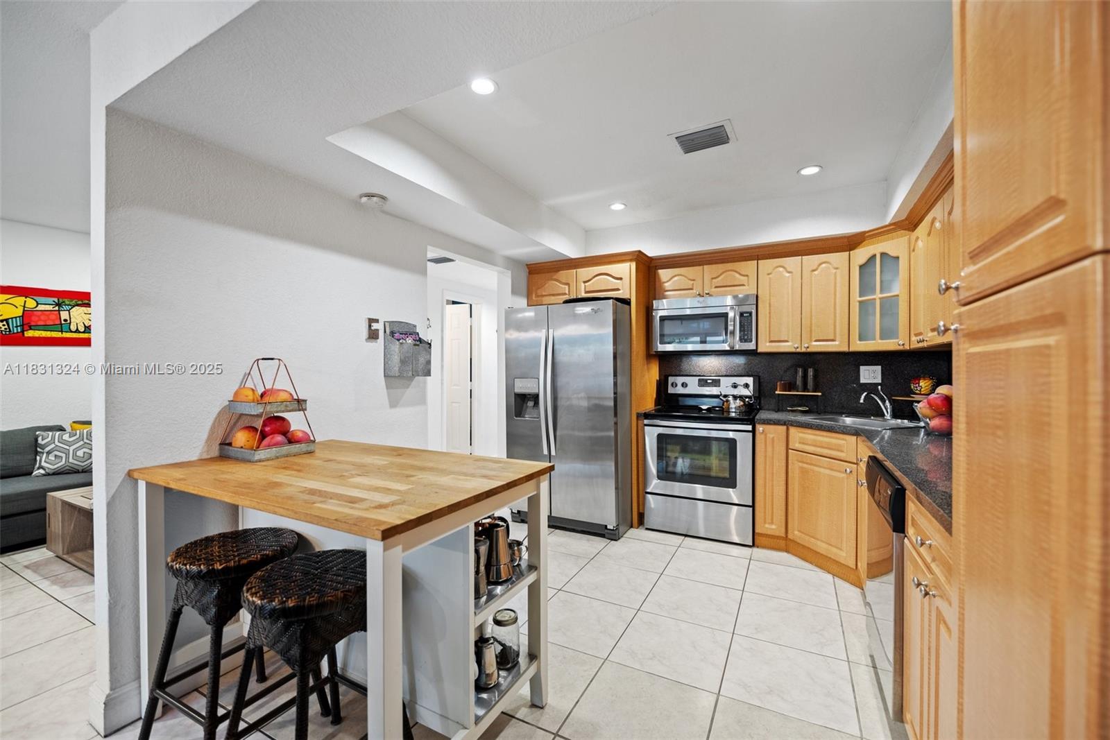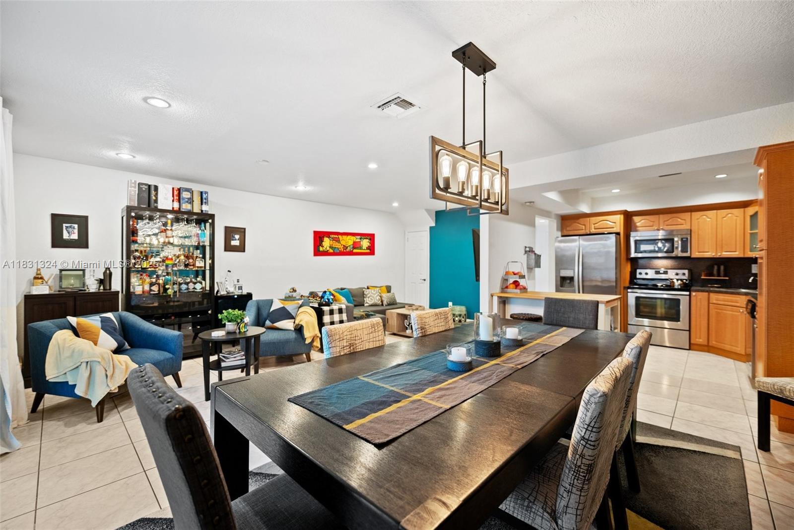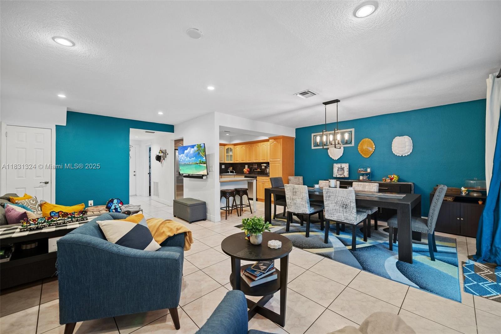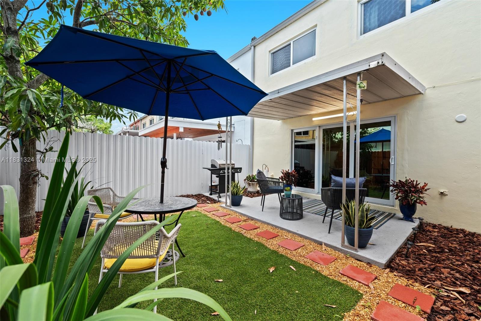 Step into this bright and spacious home featuring 3 spacious bedrooms and 2.5 modernized bathrooms. The home offers numerous upgrades for your comfort and peace of mind, including new impact windows, a newer AC unit enhanced with UV light, a newer tankless water heater, fresh exterior paint, and a newer washer and dryer. The well-designed layout flows seamlessly, showcasing a kitchen equipped with stainless steel appliances, timeless finishes, and recessed LED lighting throughout. Sliding doors lead to a fully fenced backyard featuring turf, a mature mango tree, and a covered patio, perfect for year-round entertaining. Ideally located just minutes from Amelia Earhart Park, top-rated schools, dining, shopping, and major highways, this home truly combines comfort, style, and convenience.