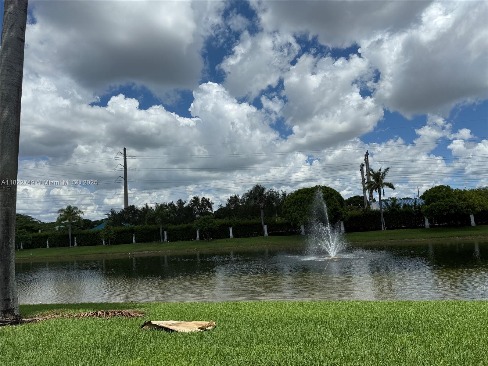 Dimensions At Doral Community, 3 bedrooms, 2 and half bathrooms, corner unit, lake view of a water fountain, Tile downstairs, new vinyl floor on stairs and upstairs, All NEW stainless steel appliances, All freshly painted, many spacious extra rooms include kitchen nook, dining room and upstairs open space. One car garage and large back yard, enclosed with wood fence. Gated with 24 hours virtual guard, this small well managed community in the middle of the heart of Doral is next to a trail / dog park and close to turnpike and HW 826,ready to welcome your family to move in