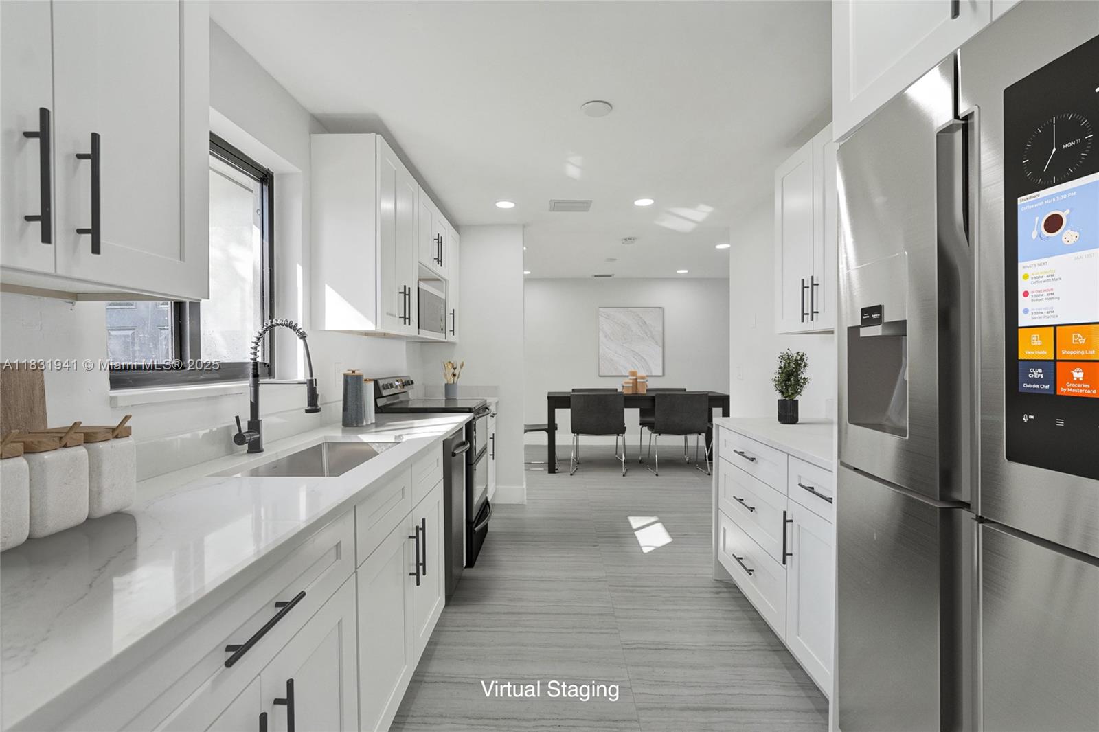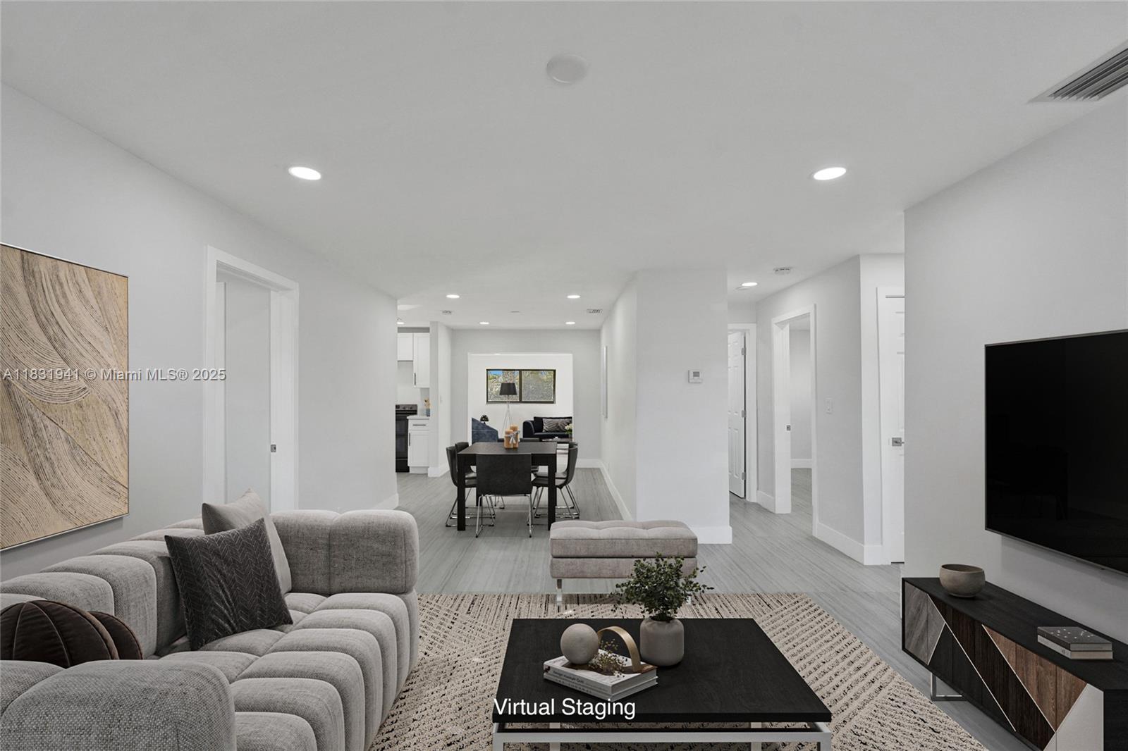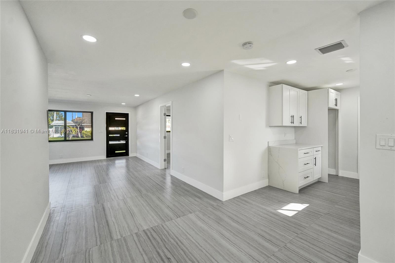 Experience lakefront living in this beautifully upgraded 3BD/2BA home featuring porcelain tile floors throughout. Enjoy a brand-new kitchen with quartz countertops, waterfall edge, and new cabinetry. Both bathrooms have been fully remodeled with quartz finishes. Recent improvements include a new roof, impact windows and doors, new central A/C, tankless water heater, and a modern front entry door. An oversized sunroom offers the perfect space for entertaining with peaceful lake views. Located just minutes from Dania Pointe, Fort Lauderdale Airport, and the beach. Supra Lockbox located on carport door NEW WHITE PRIVACY FENCE RECENTLY INSTALLED!