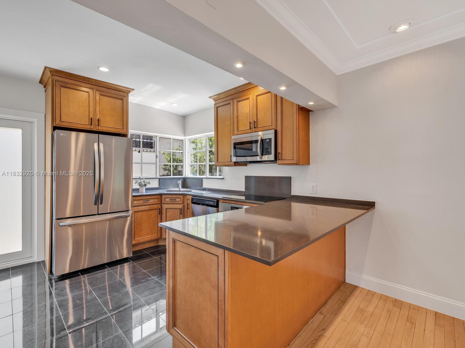 Welcome to Casa Coral! In the heart of Surfside and just 4 blocks from the ocean, this spacious, bright and updated 3bed/3bath home has been lovingly maintained and offers a great blend of original details and modern finishes. Enter into the extra-large sun-drenched living room with refinished wood floors and charming fireplace. Updated kitchen with new refrigerator and breakfast bar is open to the large dining area. Adjacent quarry-tiled sunroom features doors to the back pergola-covered deck and fenced-in gardens with room for a pool. Two of the three spacious bedrooms feature en-suite baths, including the bright main suite retreat with ample closet space. All hurricane windows-doors, newer A/C, plus a perfectly appointed laundry room with newer washer & dryer and tons of storage!