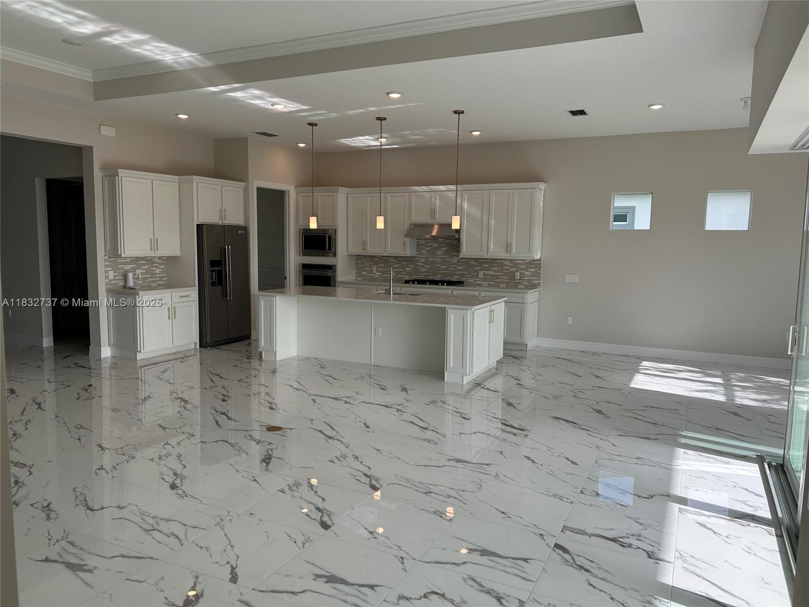 New move in ready Stellar model home in Pulte DiVosta Avondale section of Avenir. Upscale features including three bedrooms and study, 4 full bathrooms, extra large three car garage on an extra wide premium lot with spectacular views, fountain, park, bridge and expansive water view in back. Extensive upgrades include garage extension, corner glass rear sliders, cabana bathroom, walk-in double shower, coastal elevation flex room with glass double French doors, upgraded porcelain and carpet flooring, kitchen/ bathrooms (countertops, cabinets, hardware, tile, backsplash, appliances), upgraded lighting, drywall, ceilings, and paint, tankless water heater, pull down stairs for attic storage and more. Avenir has scenic walking trails, parks and access to shopping, dining and entertainment.