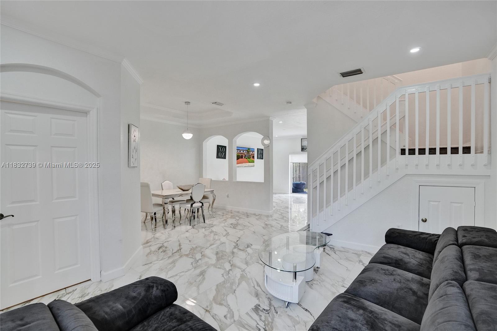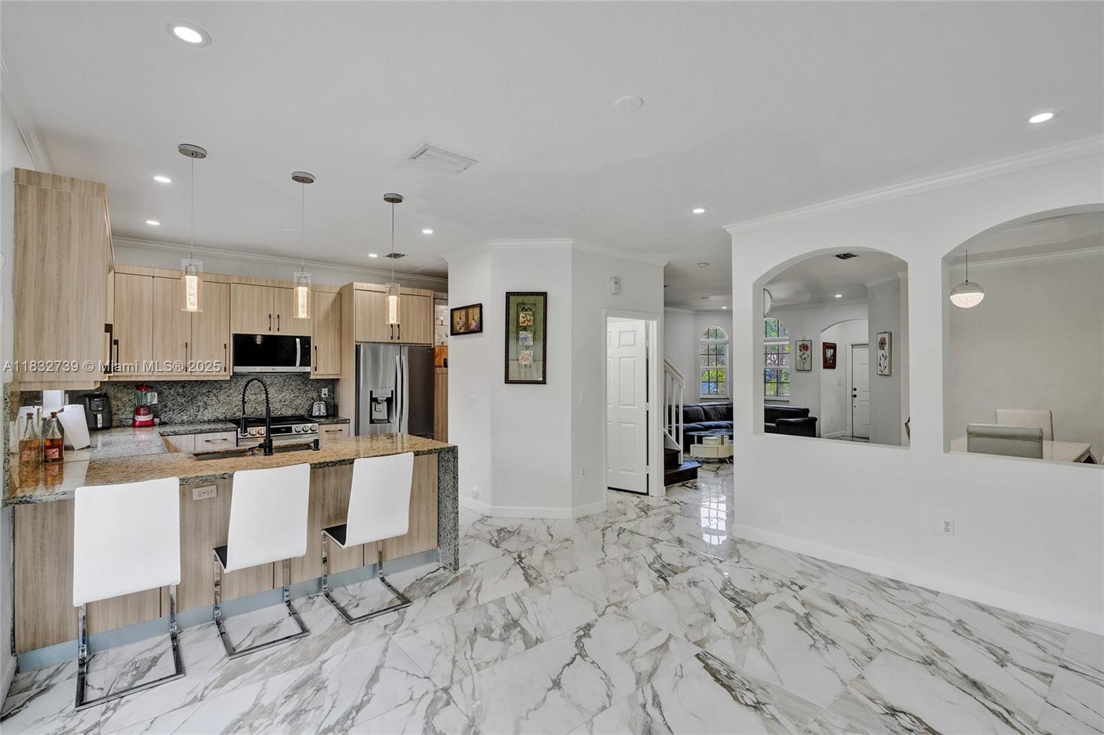 Amazing 4BR, 2.5BA townhome with many upgrades including all impact doors and windows in the 24-hour manned-gates security of Bellagio at Vizcaya. The living room is perfect for entertaining, Separate formal dining room and adjacent family room offers plenty of room for the whole family. All bedrooms are upstairs including a HUGE master with a double vanity and separate shower and roman tub. There is a fenced in backyard, Full size washer/dryer, and one car garage right across the street from the sparkling community pool and clubhouse. Great community great location and great schools nearby!