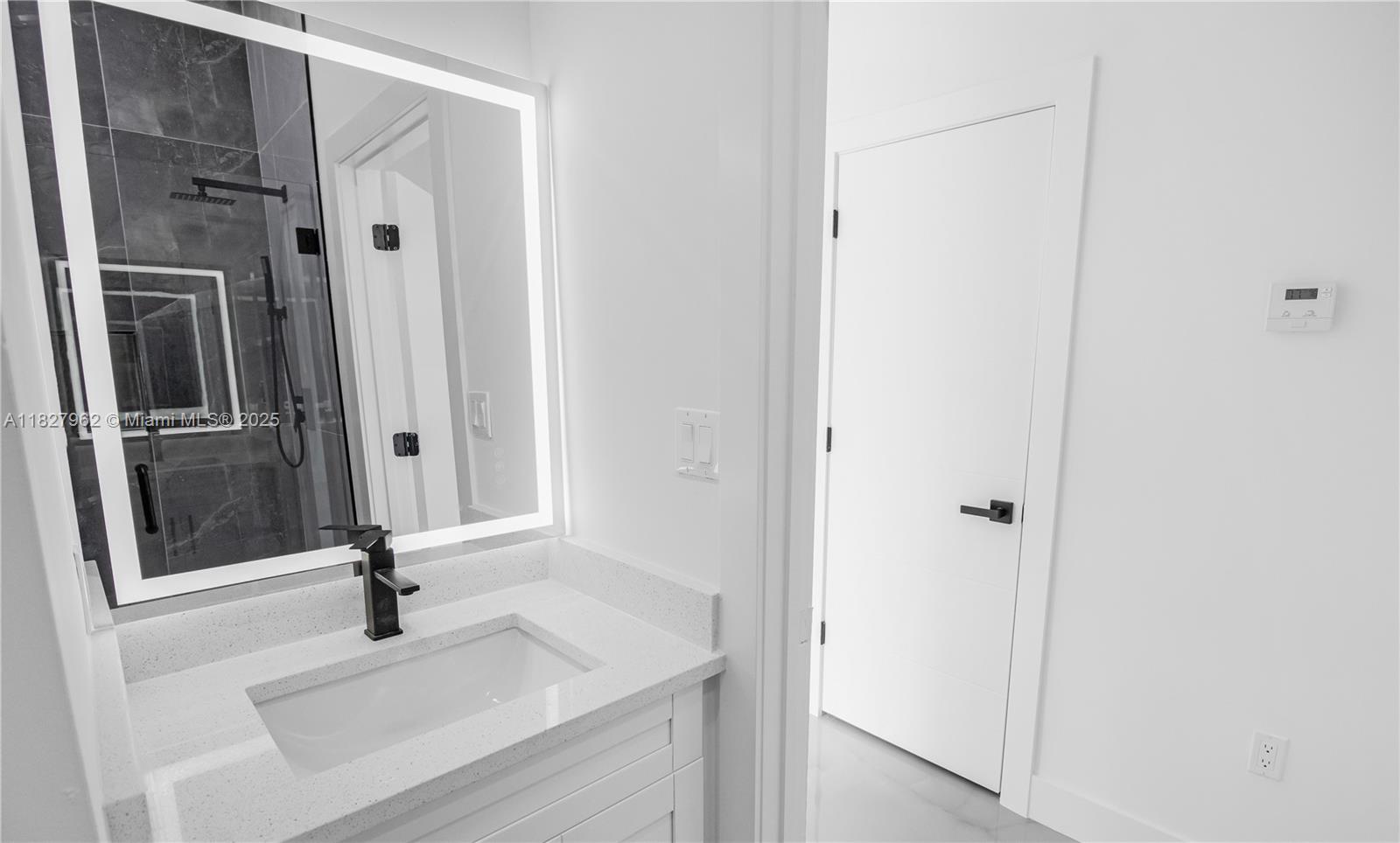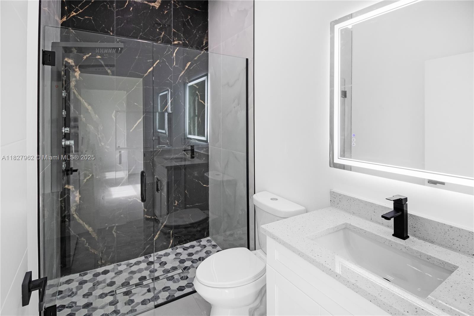 Beautifully upgraded 3 bed, 3 bath home with high-end finishes and great income potential! A section of the home already features a private entrance and full bath—perfect for converting into an efficiency or guest suite. Impact windows, stainless steel appliances, tankless water heater, quartz countertops, and modern bathrooms with glass shower doors and LED mirrors. Enjoy the peaceful setting with mature pine trees, beautiful landscaping, and a custom-built wall with chimenea. One-car garage. A perfect blend of comfort, style, and opportunity! A TV has Been installed that can remain with the property at no additional cost. TV is not new and is offered as-is with no warranty.