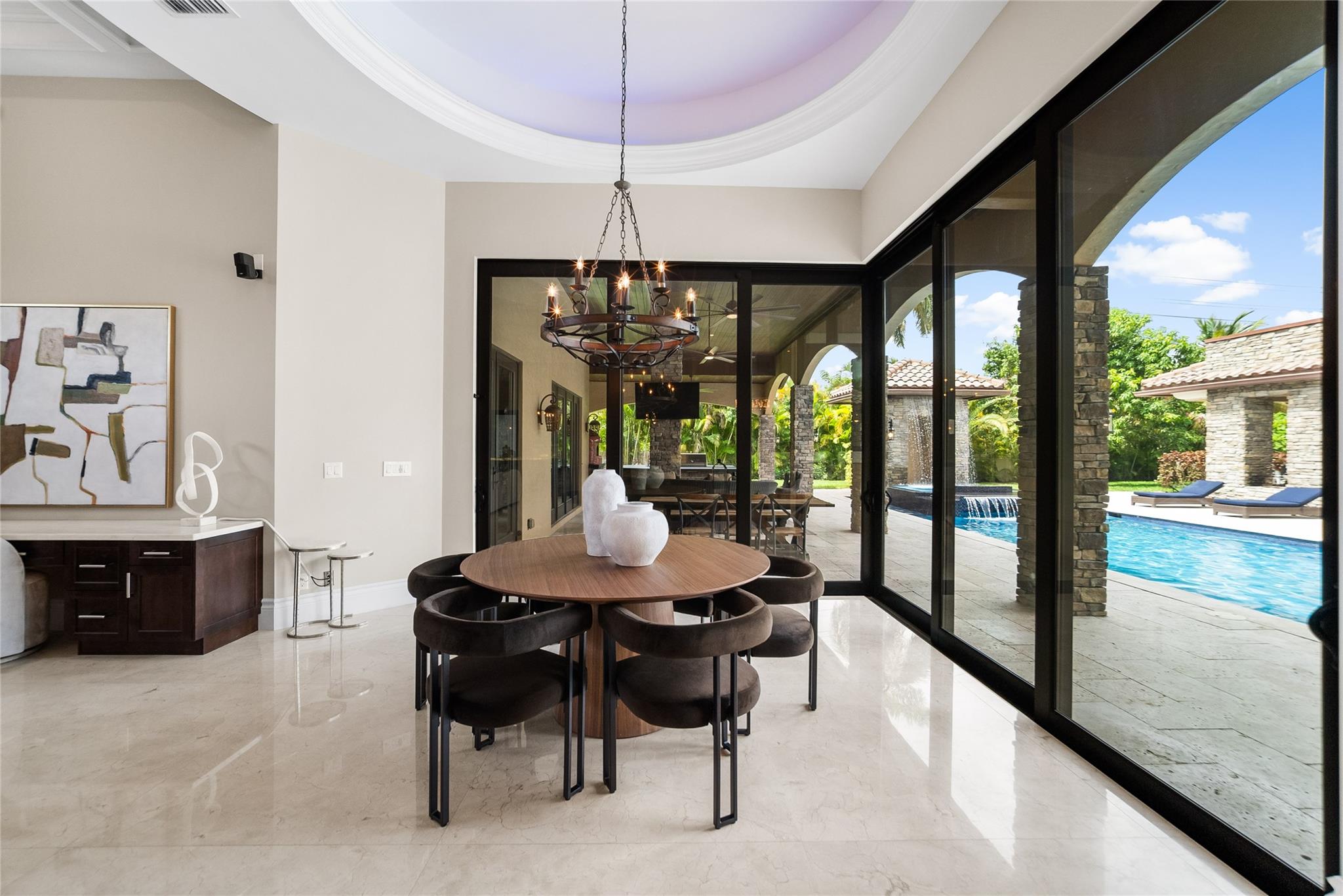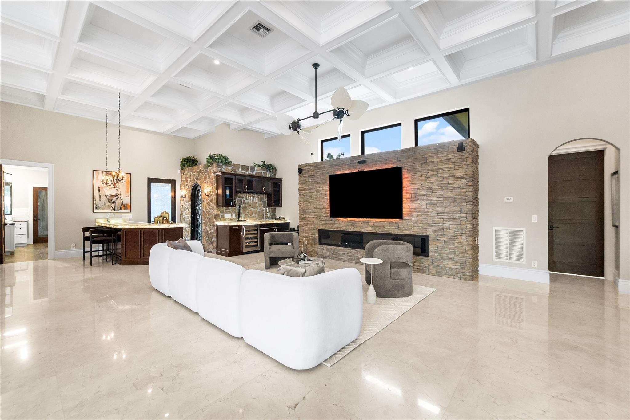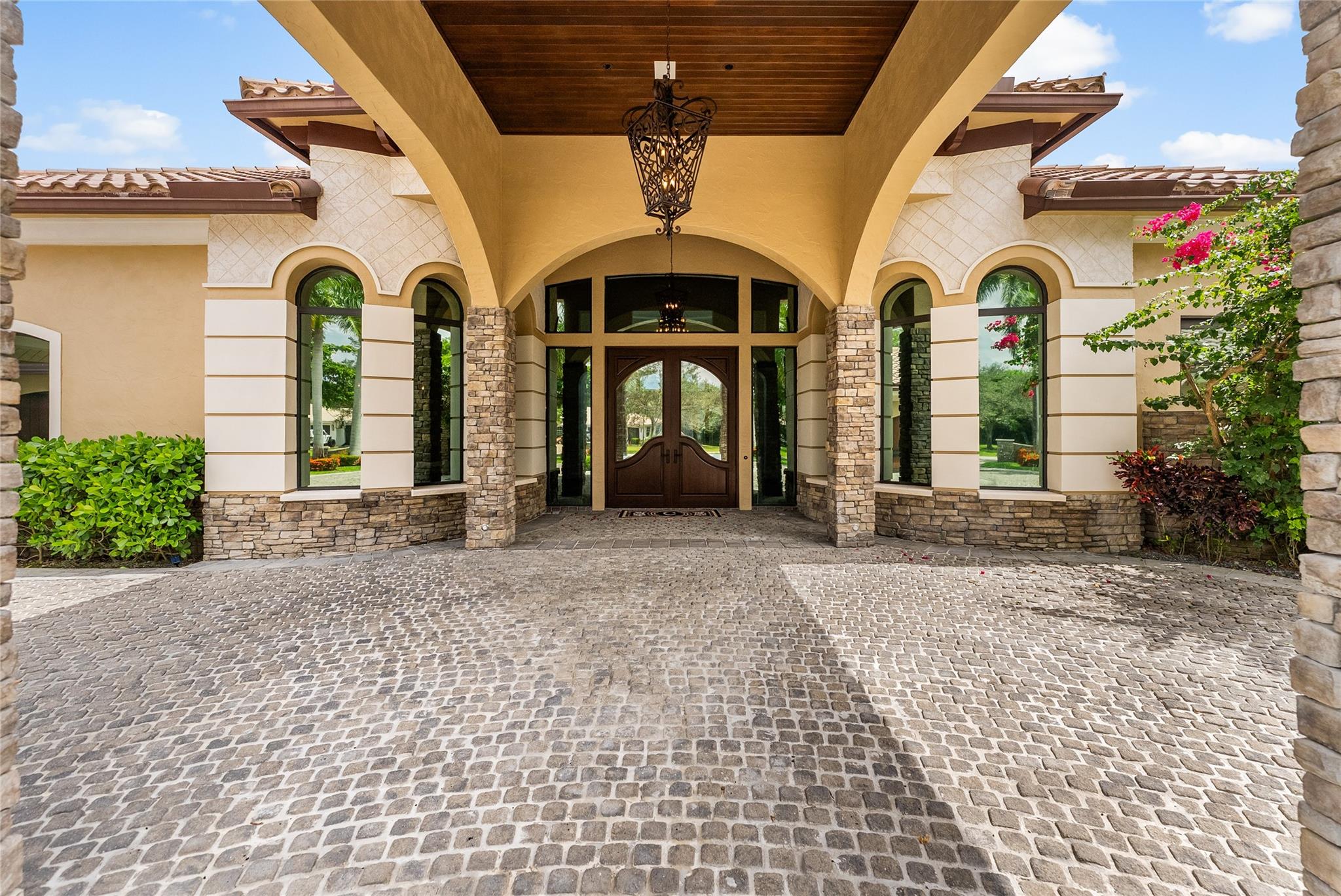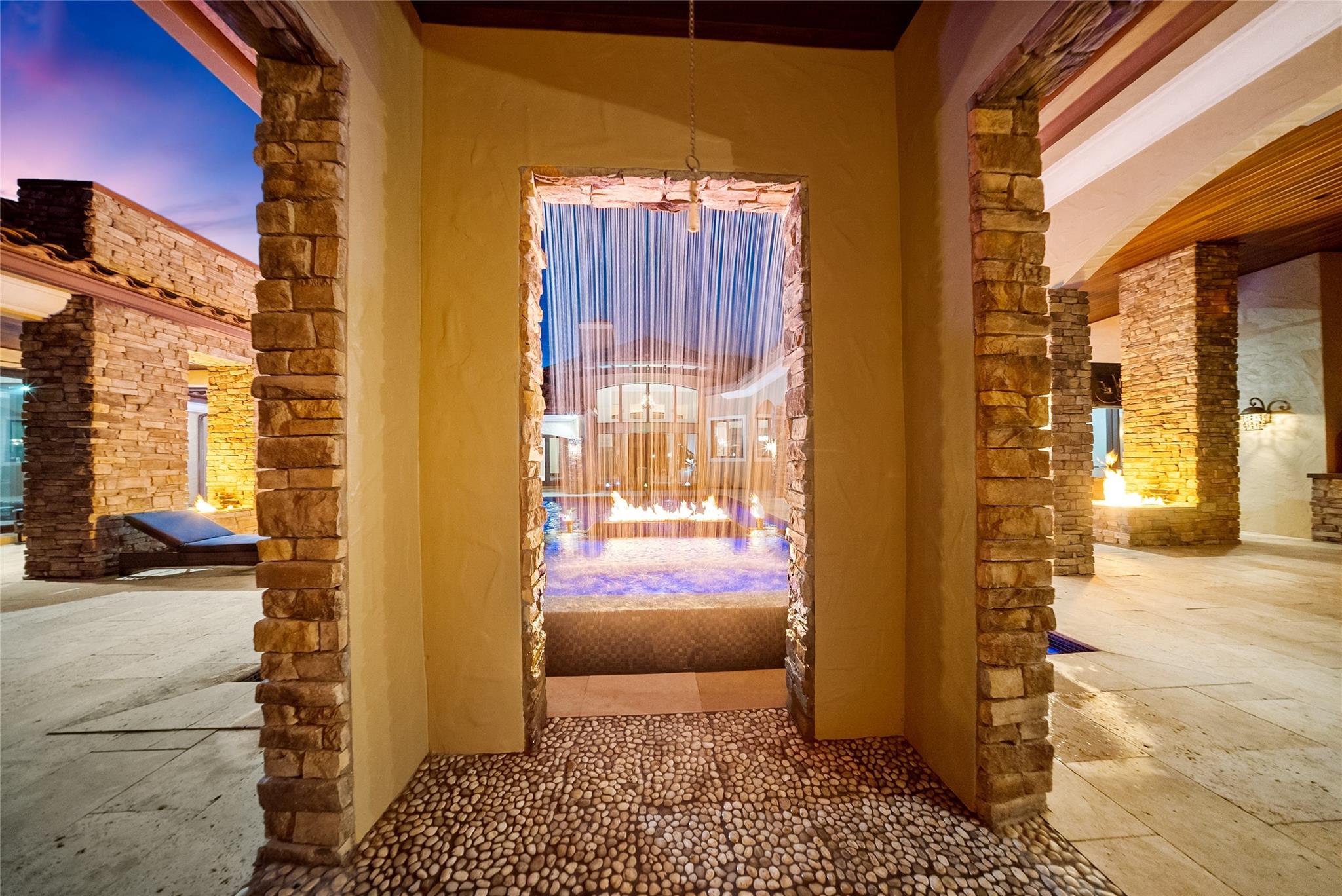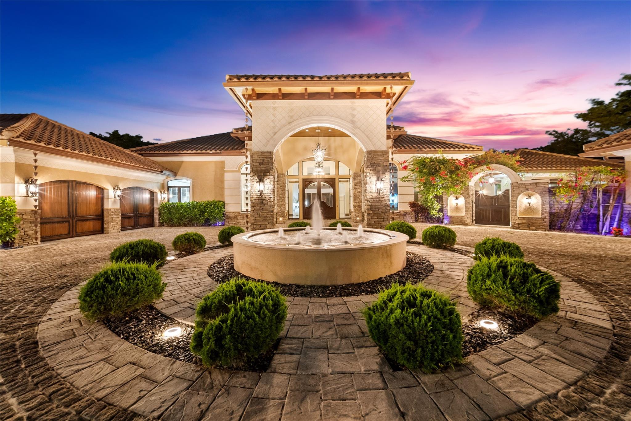 Imported Italian Stone Driveway & Porte Cochere Greets You To This 2016 Custom Smart Home w/7,100 SqFt Mediterranean Mansion w/5 Bedrooms, 5 Baths, 2 Half Baths + Gym + Gameroom + Office, Wine Cellar & Backlit Stone Counter Bar & Outdoor Resort w/5 Fire Features & 5 Waterfalls Surrounding An Outdoor Kitchen & Woodfired Oven, Exterior Living & Dining w/Wall Fountains. Private Guest House w/Full Kitchen & Living Room & Ensuite Bath w/Generator. Soaring Coffered Ceilings & Mediterranean Wooden Arches Guide You Throughout The Home. Impact Windows & Doors Where Every Room Has A Pool & Courtyard View Or Water Feature. All Beds Have Ensuite Baths w/Backlit Counters, 6-Car Garage w/A/C & Hydraulic Lift For Car Collectors. Meticulous Landscaping w/Fruit Trees All On 1 Acre! Guard Gated Community.