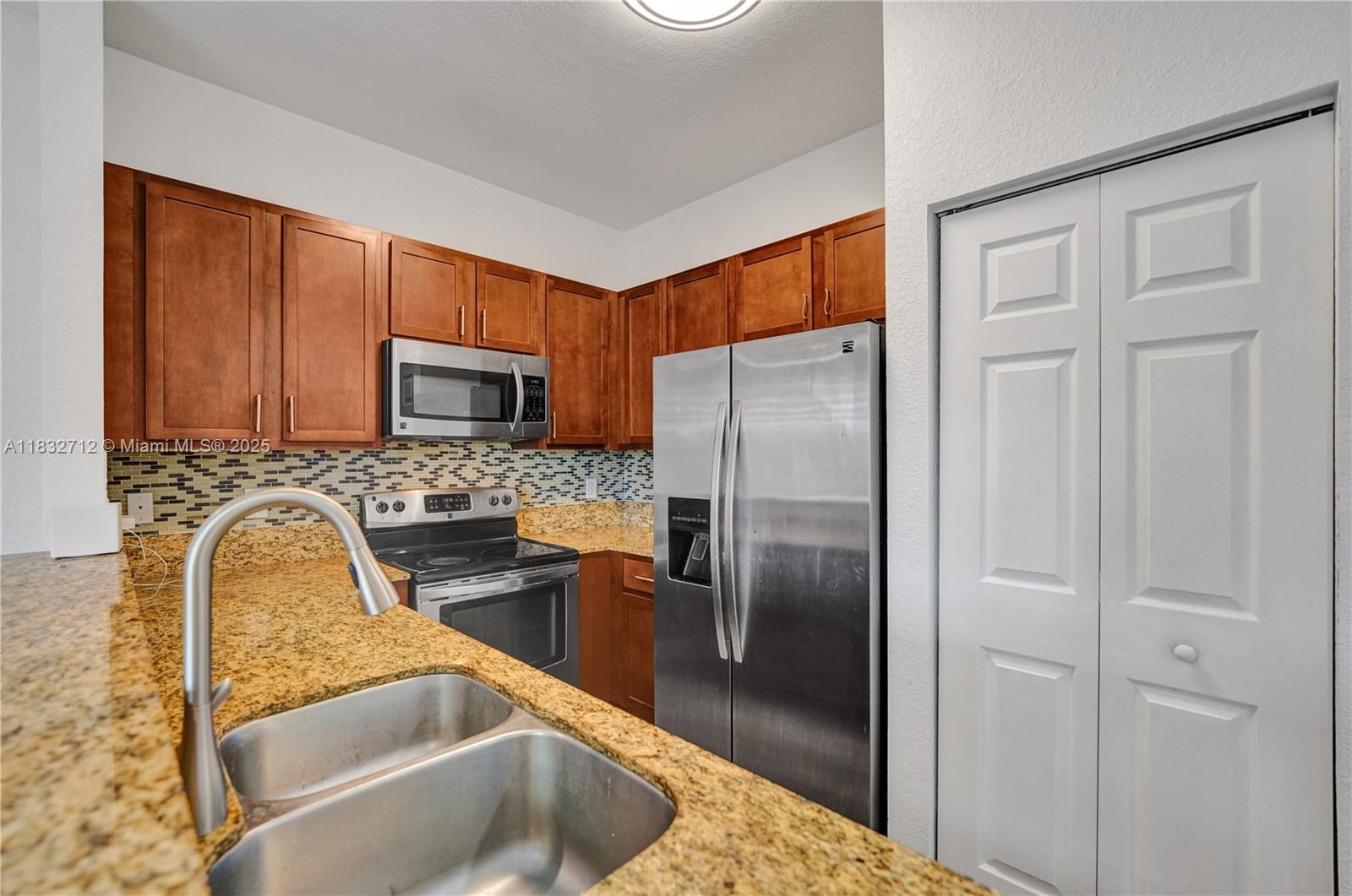 Beautiful and move-in ready 2-story Mediterranean-style townhome in the gated community of Village Walk. This spacious 3-bed, 2.5-bath home features granite countertops, glass tile backsplash, stainless steel appliances, New laminated flooring throughout, washer and dryer, alarm system, and two assigned parking spaces right in front of the unit. Enjoy the community’s **low HOA fees** and great family-friendly amenities including a clubhouse, pool, and playground. FHA and VA loans are approved, making financing easy! Built in 2014 with approximately **1,656 sq ft of living space**, this home is ideally located near top-rated schools, shopping centers, restaurants, major highways like I-75, and just minutes from Pembroke Lakes Mall. A perfect place to call home!