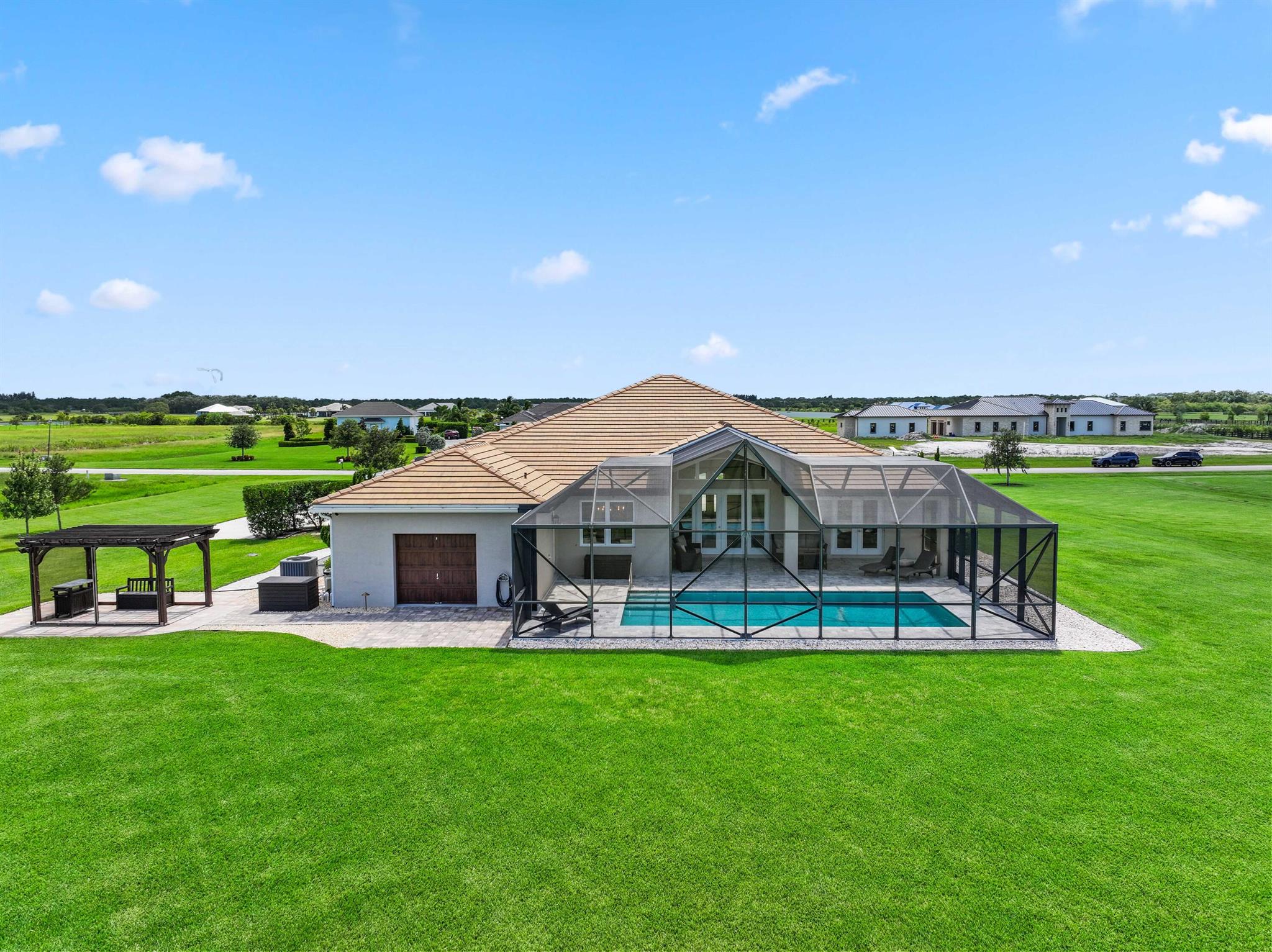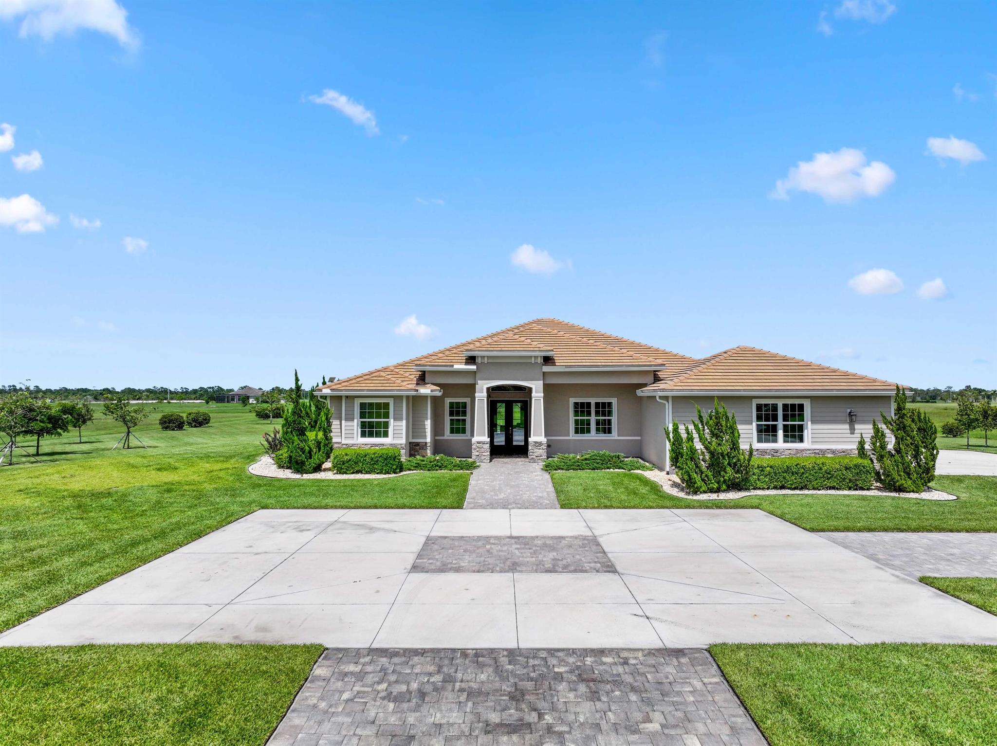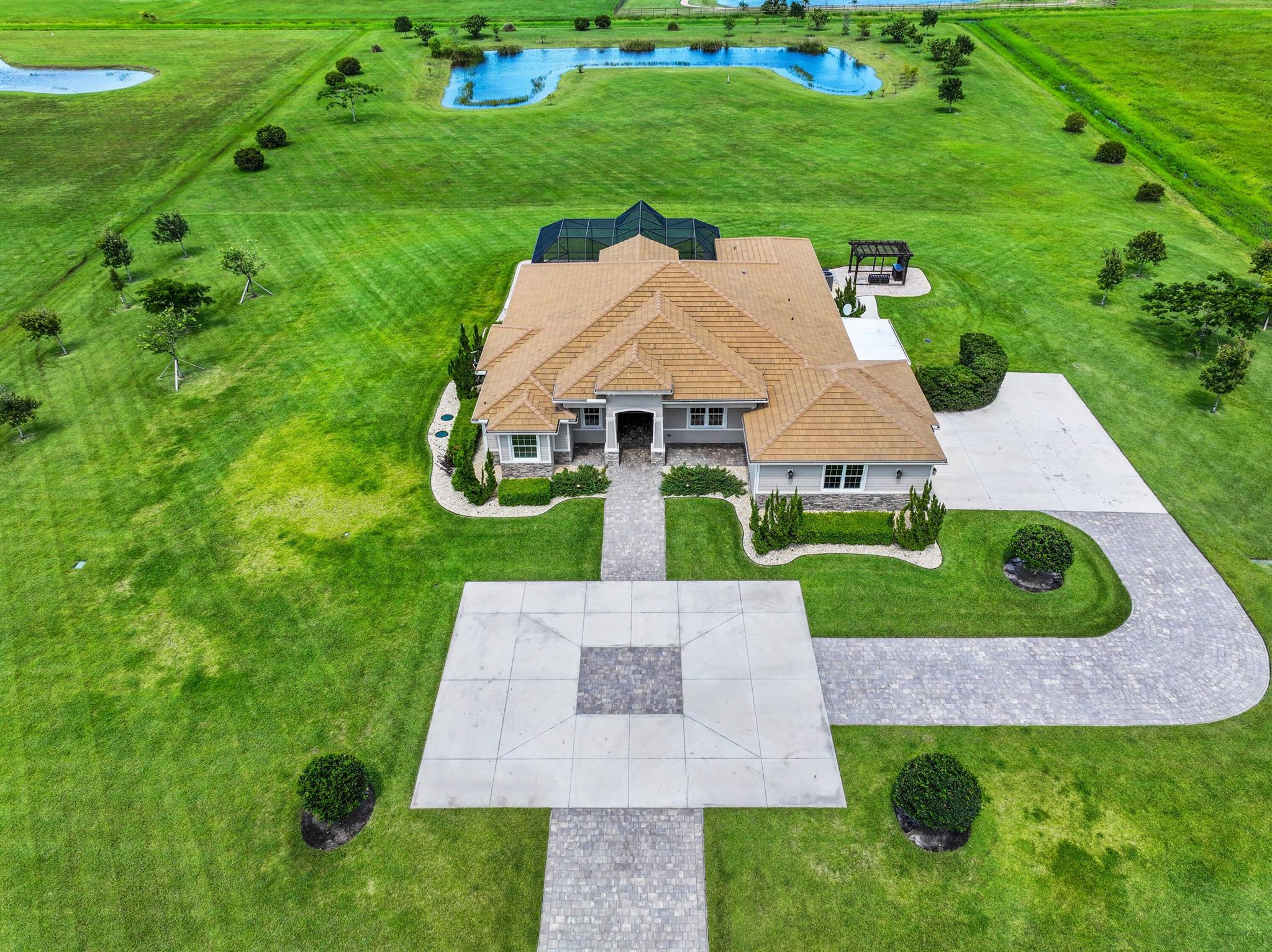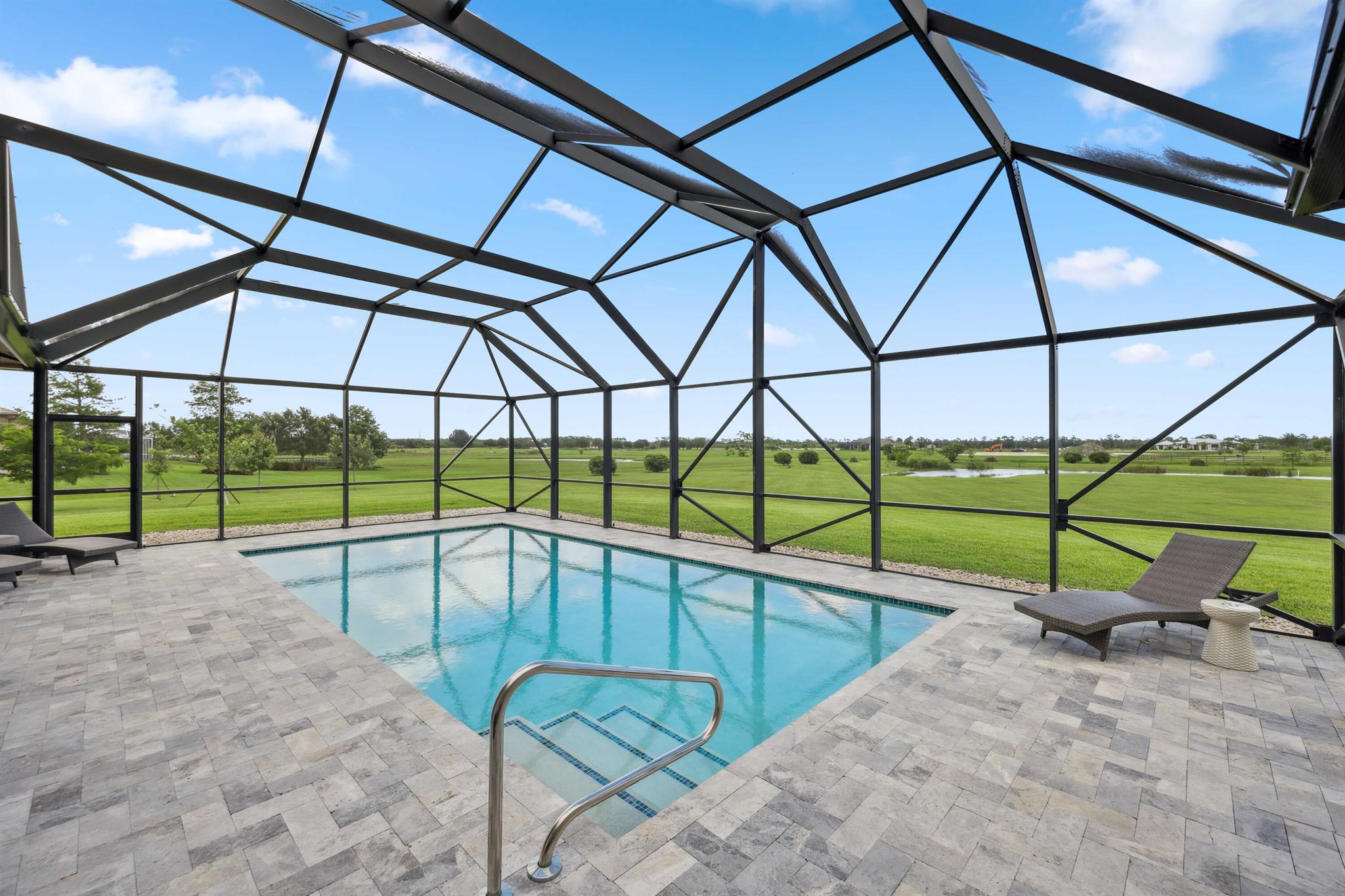 Welcome to estate living on 5 private acres in one of Martin County's most desirable neighborhoods. Built in 2019, this meticulously designed home has a flexible floor plan--currently featuring 3 bedrooms, an office, and a bonus room, with the option to easily create up to 5 bedrooms. The 3-way split design provides the perfect floor plan that is ideal for every buyer. You will experience the thoughtfully designed home from the moment you drive up. Enjoy volume ceilings and a great room with striking beams, plus a kitchen with a large island, pantry, and dining area perfect for entertaining. You will love your screened pool area overlooking the property. Energy-efficient features, impact glass, whole-house water filtration/generator, and extended 3-car garage. Equestrian friendly too.