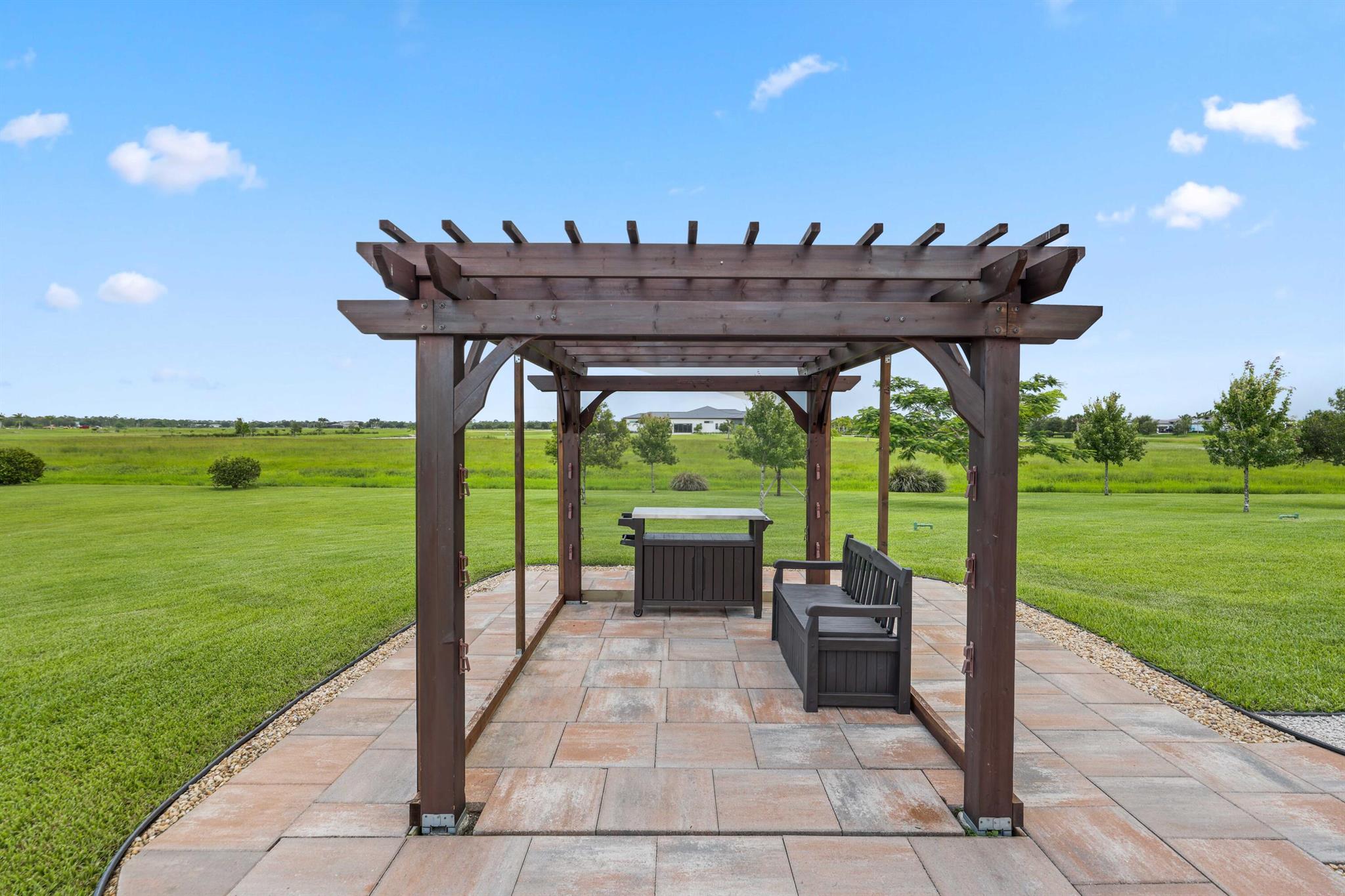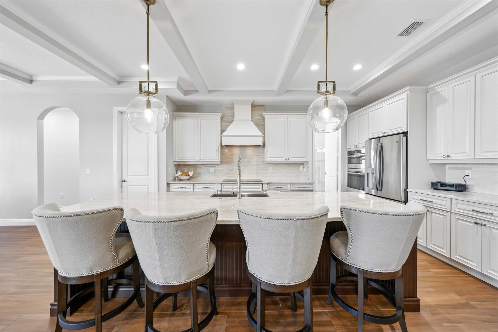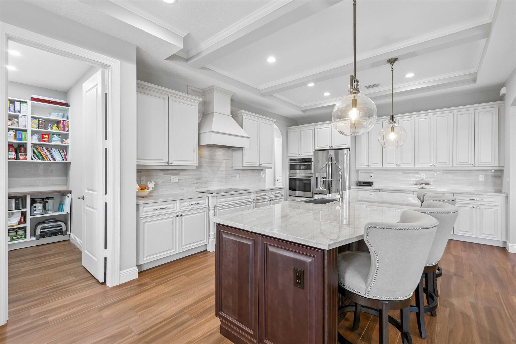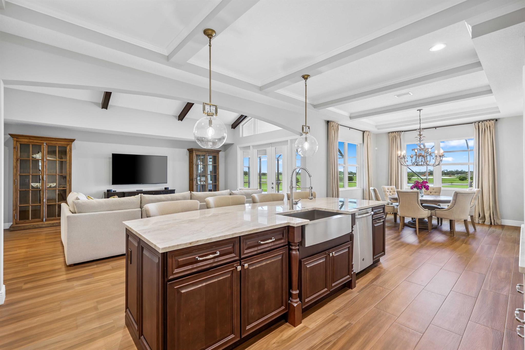 Welcome to estate living on 5 private acres in one of Martin County's most desirable neighborhoods. Built in 2019, this meticulously designed home has a flexible floor plan--currently featuring 3 bedrooms, an office, and a bonus room, with the option to easily create up to 5 bedrooms. The 3-way split design provides the perfect floor plan that is ideal for every buyer. You will experience the thoughtfully designed home from the moment you drive up. Enjoy volume ceilings and a great room with striking beams, plus a kitchen with a large island, pantry, and dining area perfect for entertaining. You will love your screened pool area overlooking the property. Energy-efficient features, impact glass, whole-house water filtration/generator, and extended 3-car garage. Equestrian friendly too.