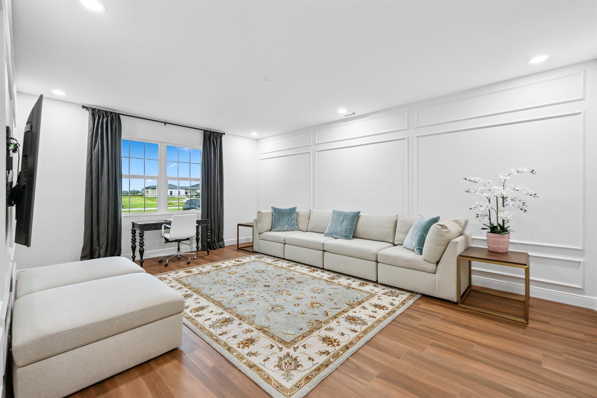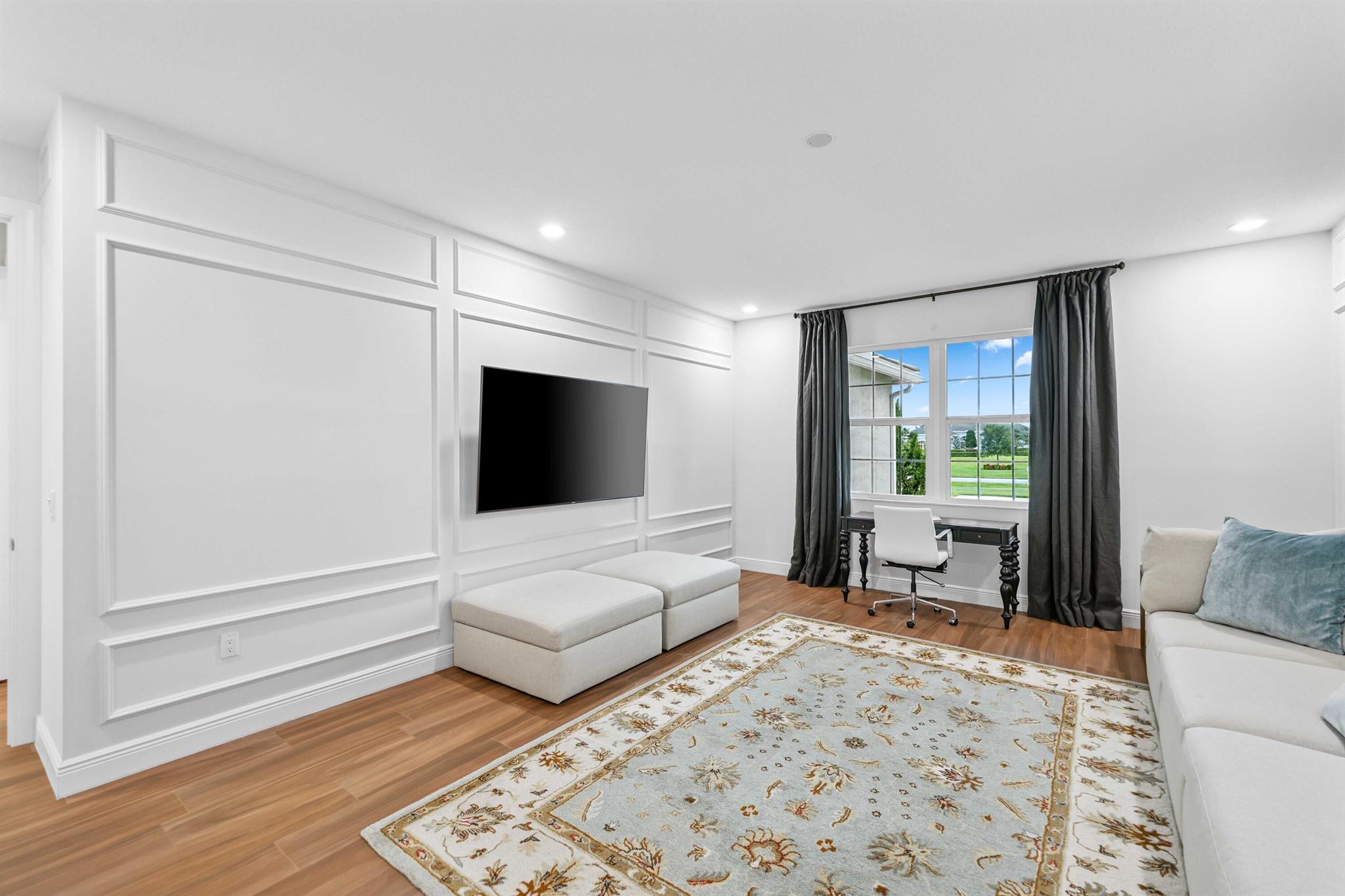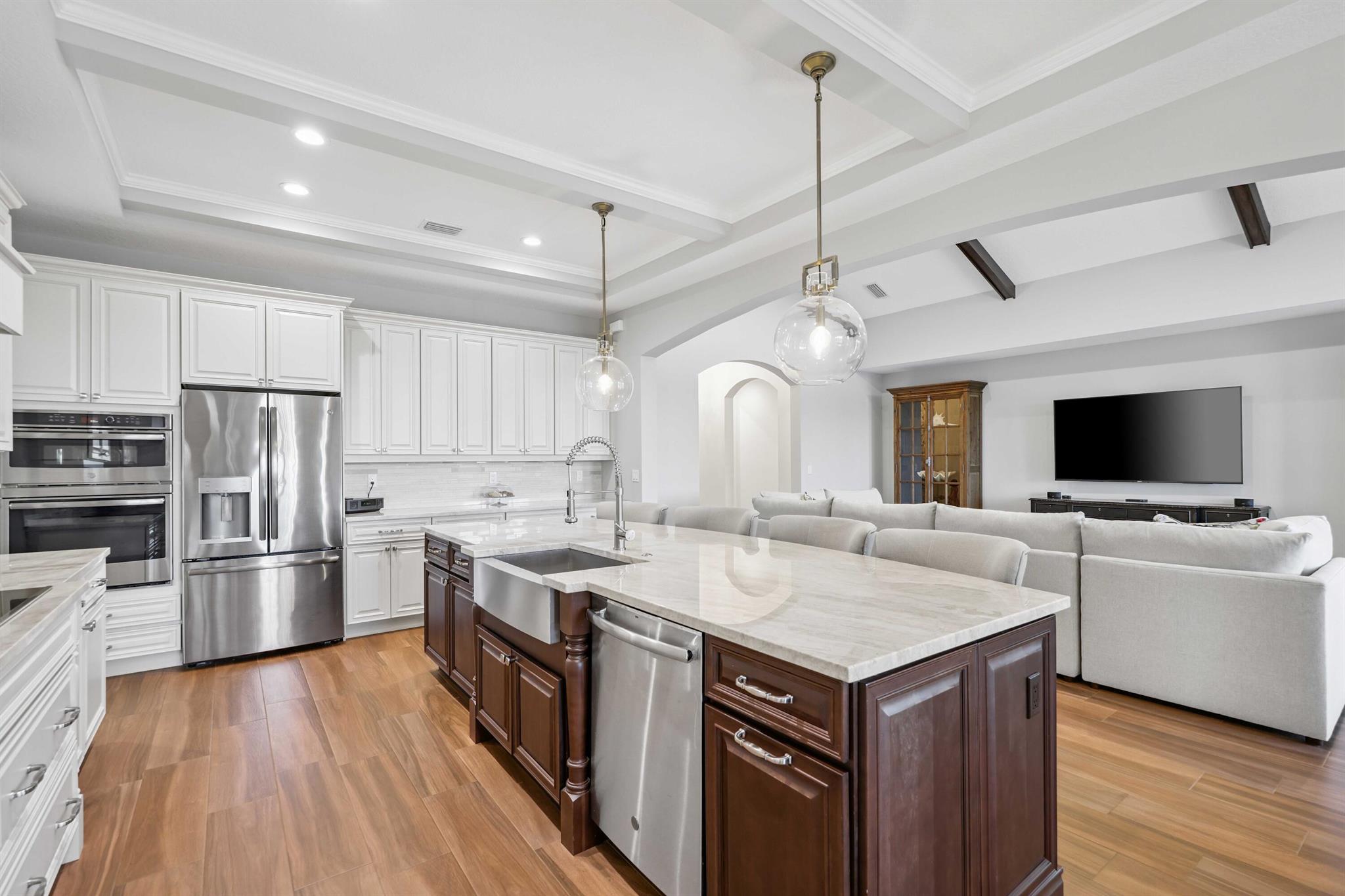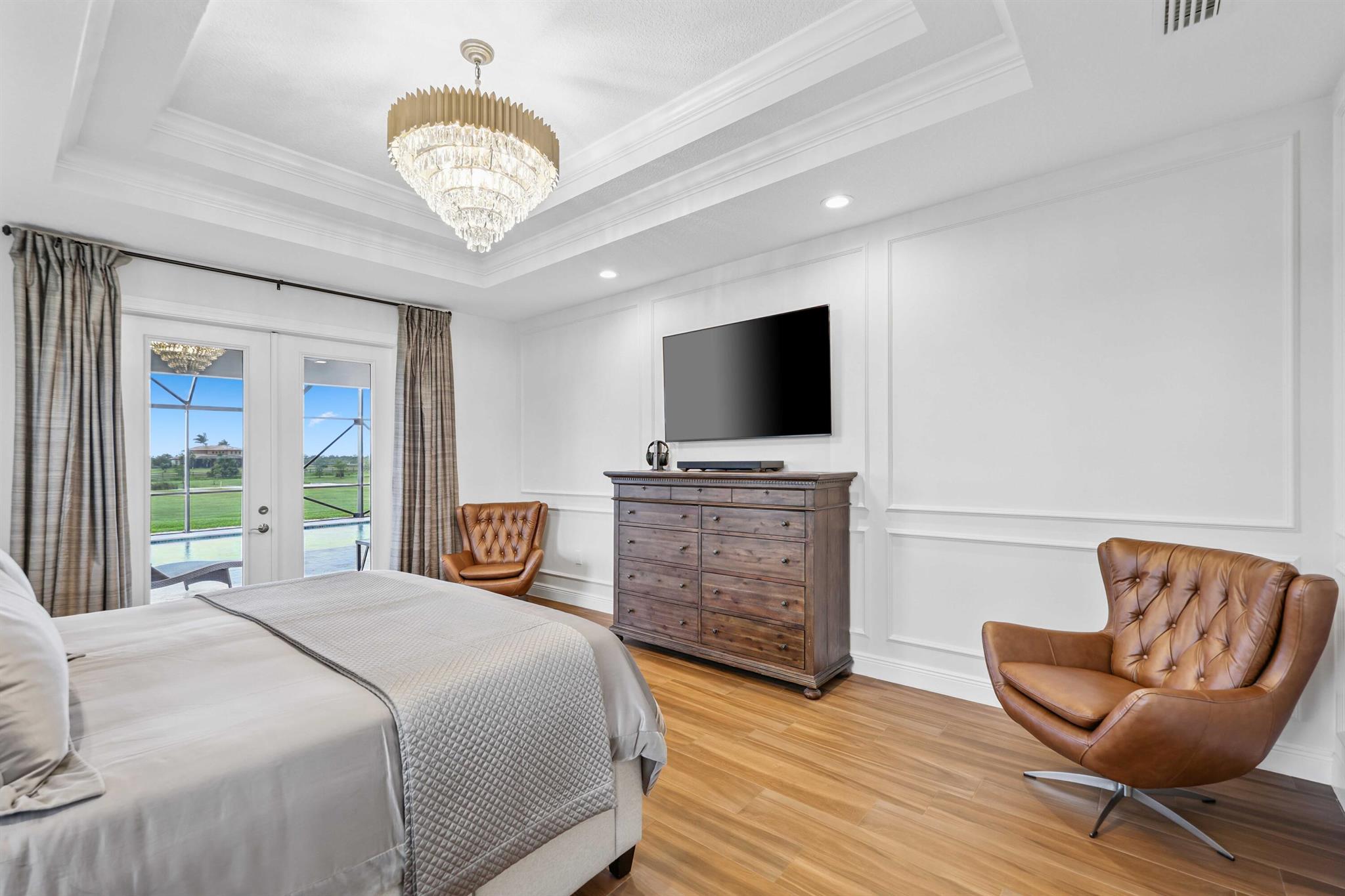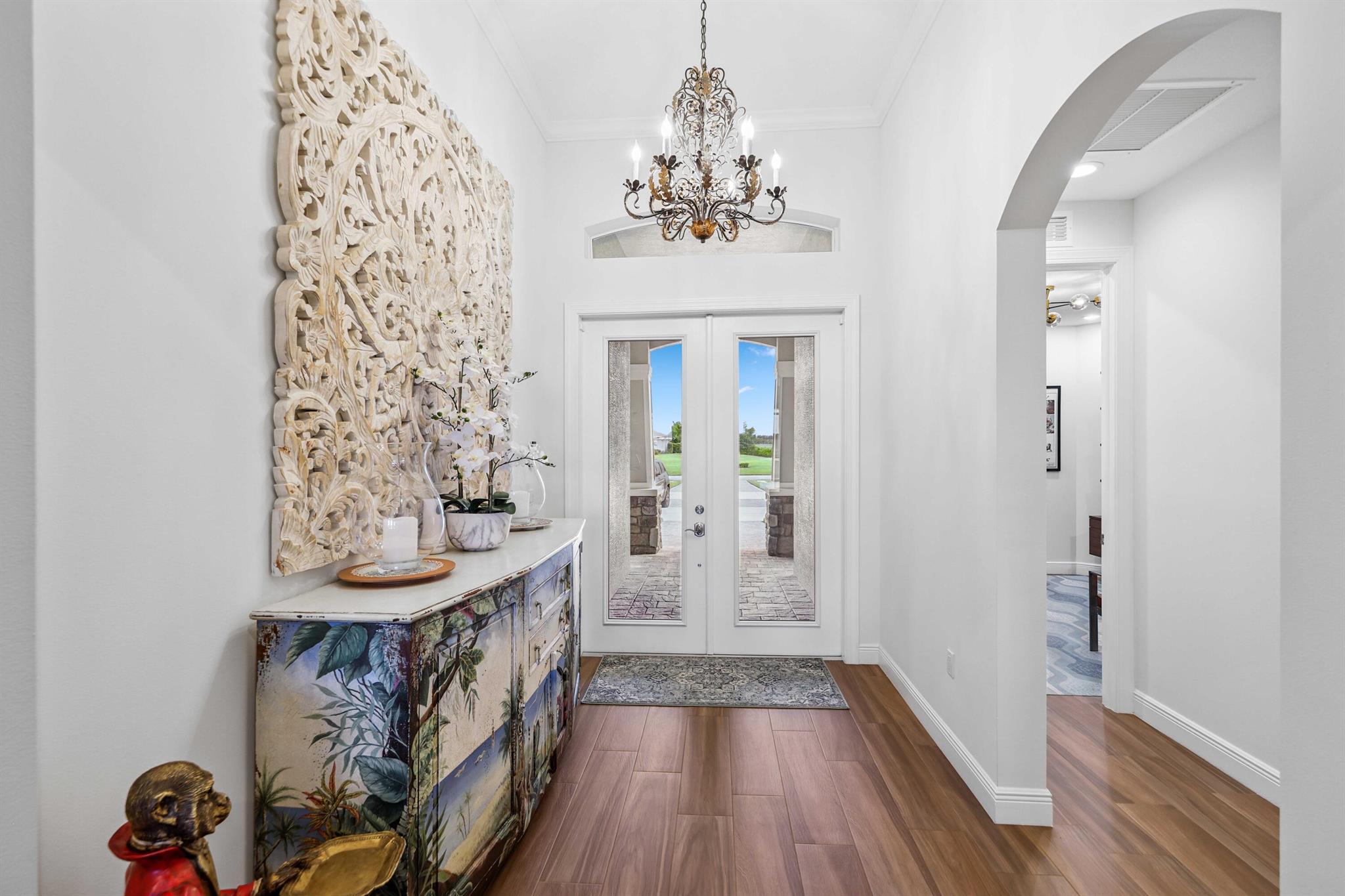 Welcome to estate living on 5 private acres in one of Martin County's most desirable neighborhoods. Built in 2019, this meticulously designed home has a flexible floor plan--currently featuring 3 bedrooms, an office, and a bonus room, with the option to easily create up to 5 bedrooms. The 3-way split design provides the perfect floor plan that is ideal for every buyer. You will experience the thoughtfully designed home from the moment you drive up. Enjoy volume ceilings and a great room with striking beams, plus a kitchen with a large island, pantry, and dining area perfect for entertaining. You will love your screened pool area overlooking the property. Energy-efficient features, impact glass, whole-house water filtration/generator, and extended 3-car garage. Equestrian friendly too.