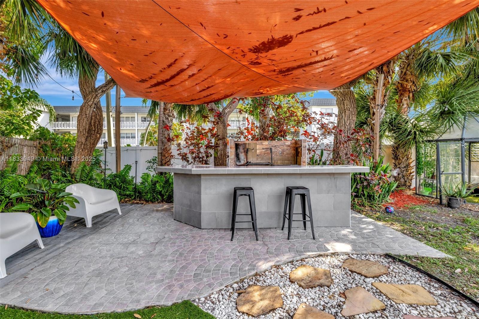 Desired neighborhood of Imperial Point! Enjoy the natural oasis as you walk into this three bedroom and three full bathroom home; interior includes porcelain tile flooring throughout living areas, white cabinetry kitchen with expansive quartz countertop for entertaining, spacious dining and separate living areas. Exterior features sleek flat tile roof with energy efficiency solar panels, impact windows and doors, oversized fenced in backyard with custom grill and two outdoor entertaining areas, one car garage. Just a stroll to the beaches of Lauderdale By The Sea and Pompano Pier, convenient access to major roads and highways and just minutes to all the activities downtown Ft. Lauderdale has to offer.