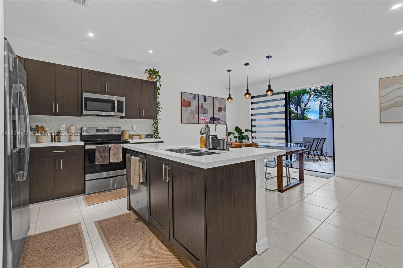 Up to $5,000 toward buyer’s closing costs with full-price offer.There’s a rare kind of peace you feel when you walk into a home designed for comfort and connection. This upgraded 4 bed / 3.5 bath townhome in Aquabella by Lennar sits on a quiet street near the Miami-Broward line, one of Hialeah’s most connected and growing corridors. With no rear neighbors and easy 100th St. access, it offers privacy and ease. Upstairs, the primary suite features a double-vanity bath, while a second bedroom also enjoys its own private bath, a rare find that adds flexibility for family or guests. Smart lighting, cameras, keyless lock, tile and laminate floors, travertine patio. The garage retreat with epoxy floors and built-in bar invites fun. Pools, clubhouse, gym, splash park, more than a home, your reset.