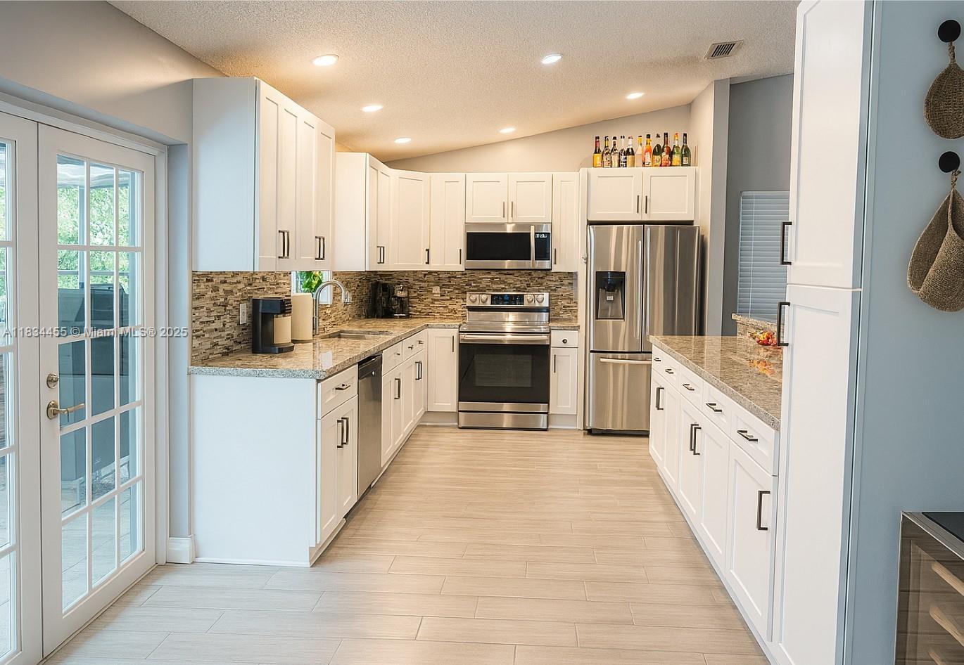 Price reduced, well below market value! 5-bedroom pool home on oversized 11,519 sqft corner lot in sought-after Pine Ridge, Coral Springs. This entertainer’s dream features a beautifully updated open kitchen with granite counters, white cabinets, s/s appliances, and a breakfast bar. Soaring ceilings, arched windows, and new tile flooring throughout all main areas+over 2,000 sqft of living space. Large primary suite with walk-in closet, & direct pool access. Saltwater/heated pool recently resurfaced w/marble deck & new screened enclosure. Home includes full impact windows, newer A/C, 7-year-old tile roof, 2-car garage, and a circular drive for 6+ cars. Fenced yard w/lush landscaping & fruit trees. A-rated schools. Close to parks, shops,+dining. Call or text agent today for your private tour