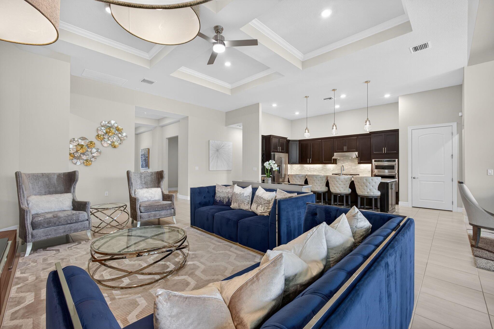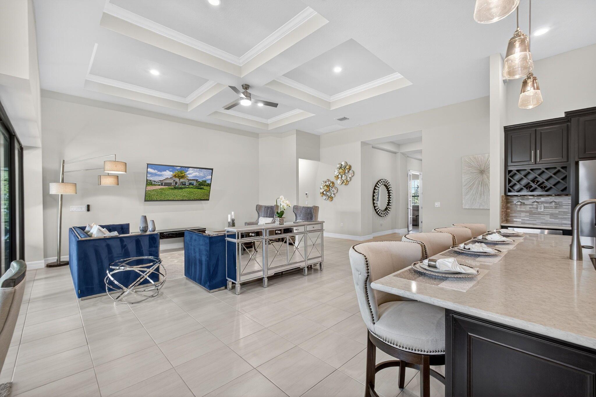 Unparalleled Elegance in this 2022, 4 Bedroom, 3 Bathroom with Den/Office Home on a Large Spacious Lot in the Prestigious Ancient Tree Community. This Distinguished Residence is the Epitome of Luxury Florida Living, Perfect for both Indoor and Outdoor Entertaining. A Well Appointed Chef's Kitchen Features Top of the Line Stainless Steel Kitchen Aid Appliances, Gas Range, Custom Island, Upgraded Cabinetry and Wine Bar. An Open Floor Plan Accents a Great Room filled with Stylish Designer Finishes like a Coffered Ceiling, Porcelain Floors and Zero Corner Sliders that lead into a Screened Lanai complete with Breathtaking Sunsets.The Primary Suite is Adorned with Spacious His & Hers Walk-In Closets with Built-Ins and a Lavish Bathroom. This Beautiful Home Truly Has it All, Move in Ready!!