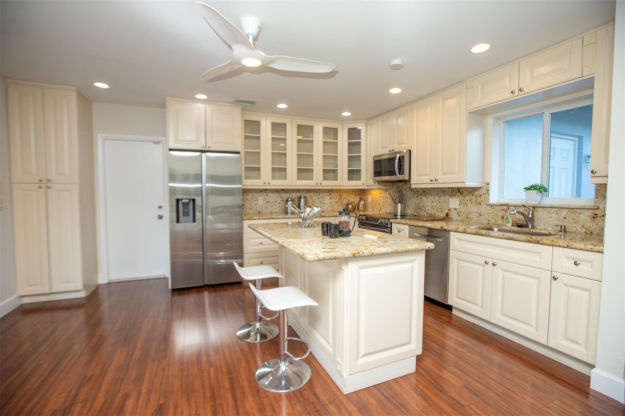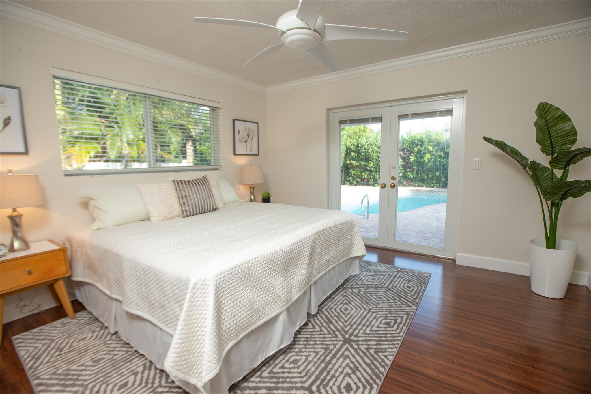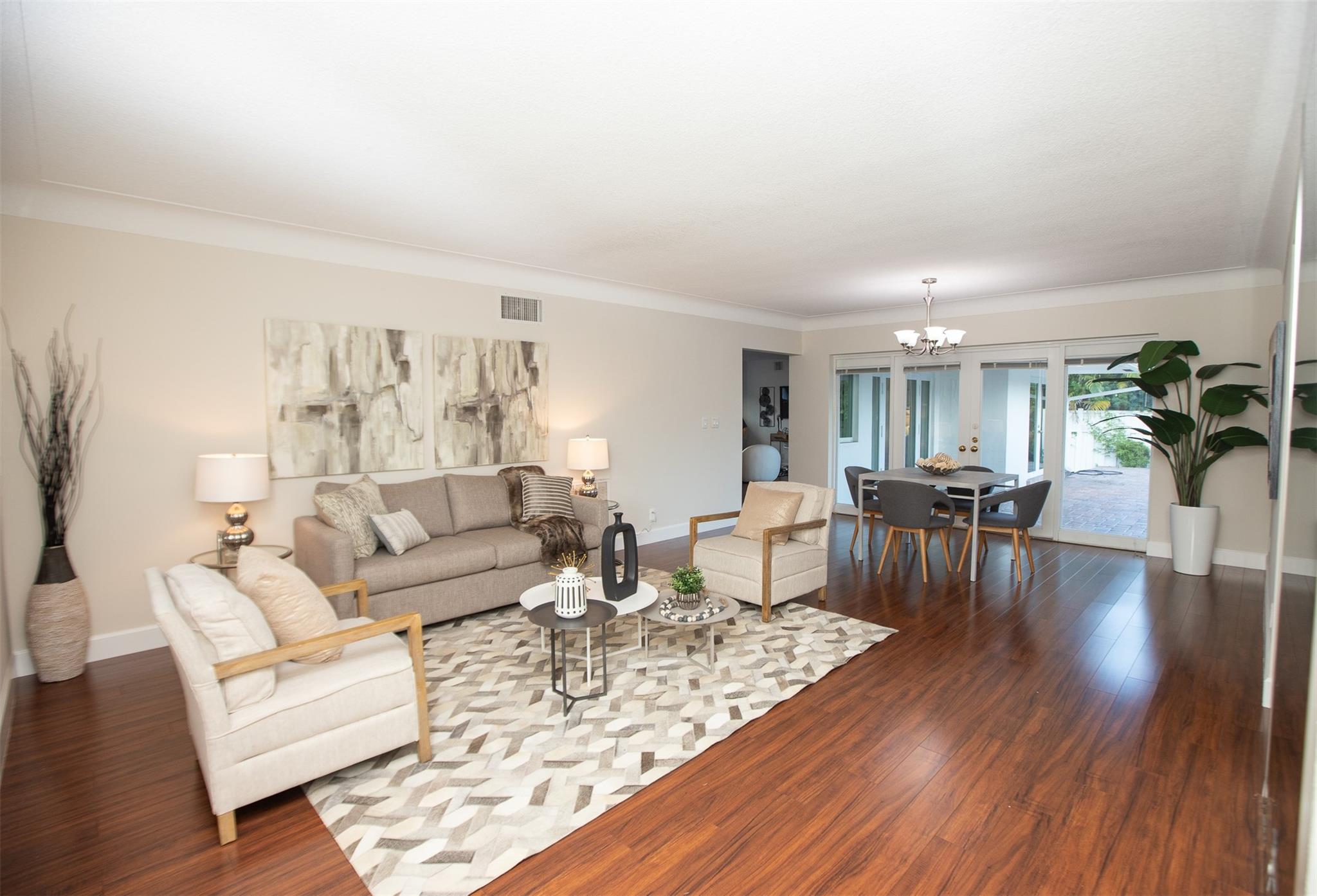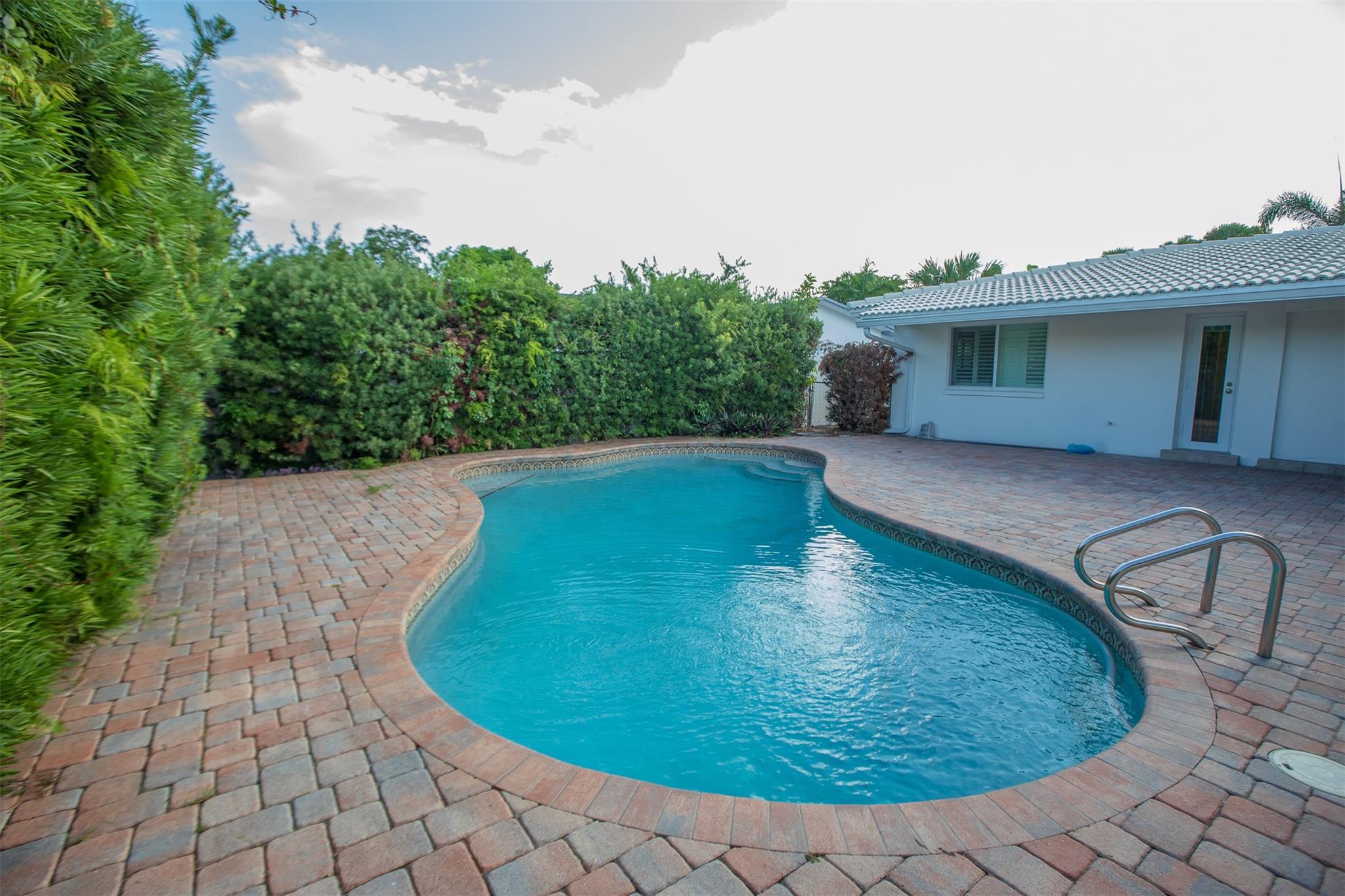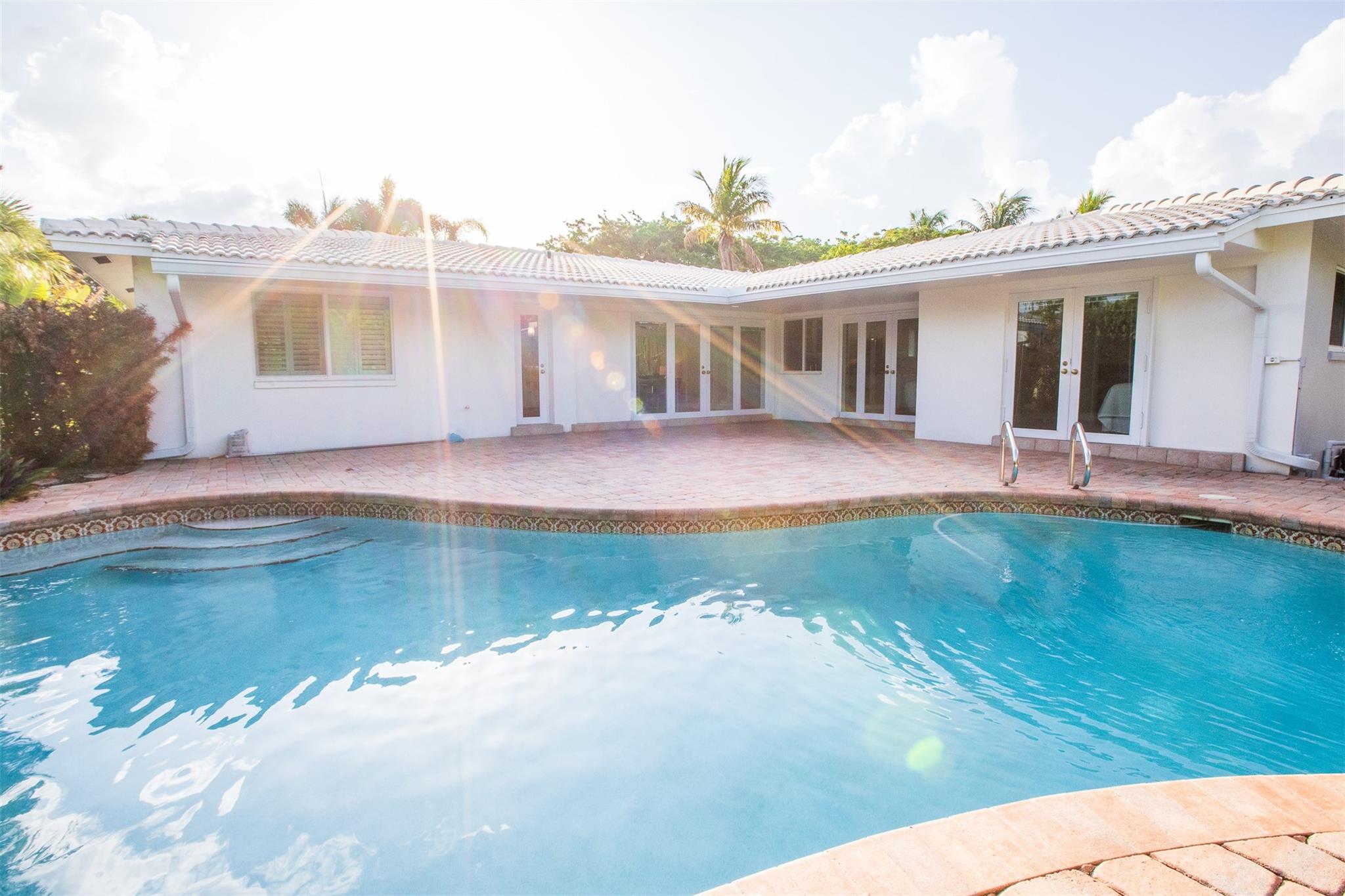 Beautifully updated 3-bedroom, 2-bath home in sought-after Coral Ridge Isles—just minutes from the beach and downtown Fort Lauderdale. This spacious split-floor plan features an open kitchen with granite countertops, stainless steel appliances, and wood flooring throughout. All impact windows and doors provide security and energy efficiency. Step outside to a large pool deck and sparkling swimming pool—perfect for entertaining. The oversized 2-car garage features a beautifully designed epoxy floor, and the huge circular driveway offers plenty of parking. Incredible location near top schools, shopping, dining, and the beach.