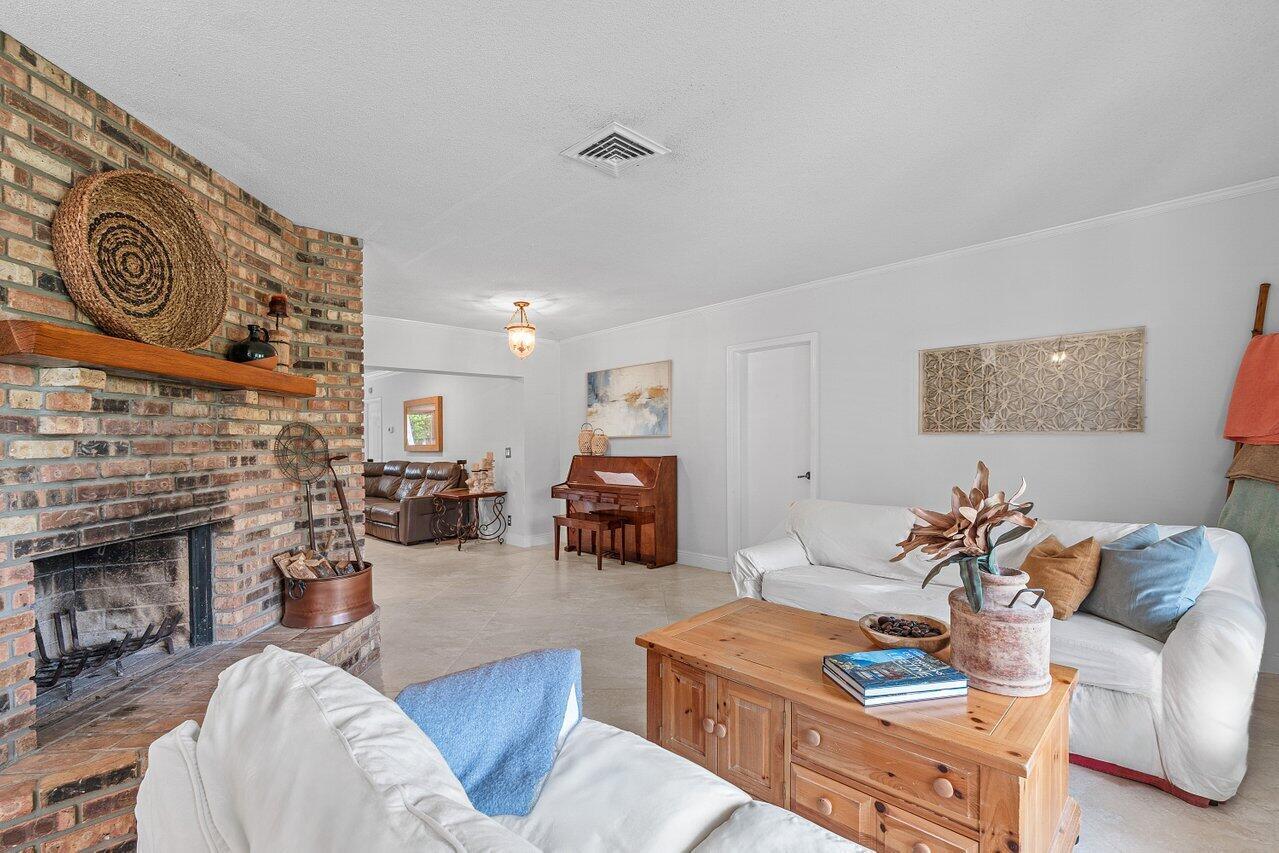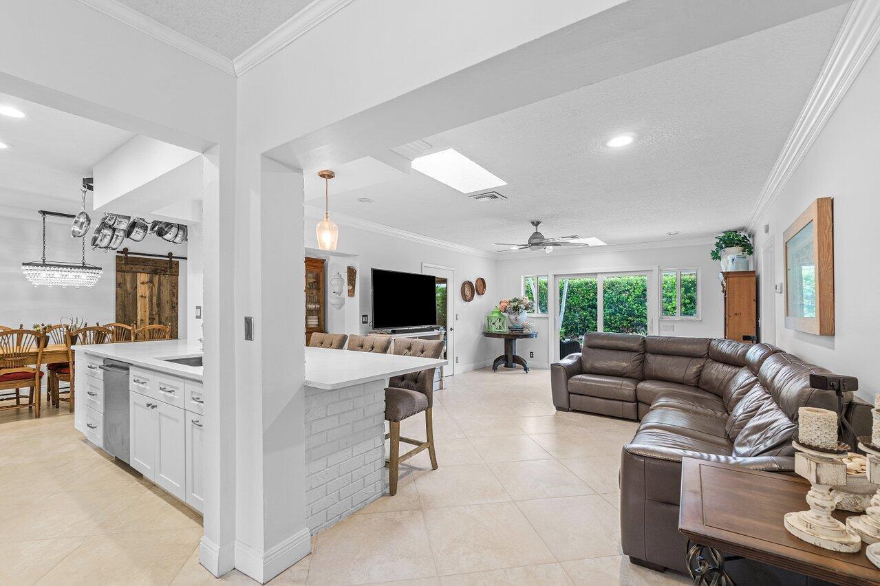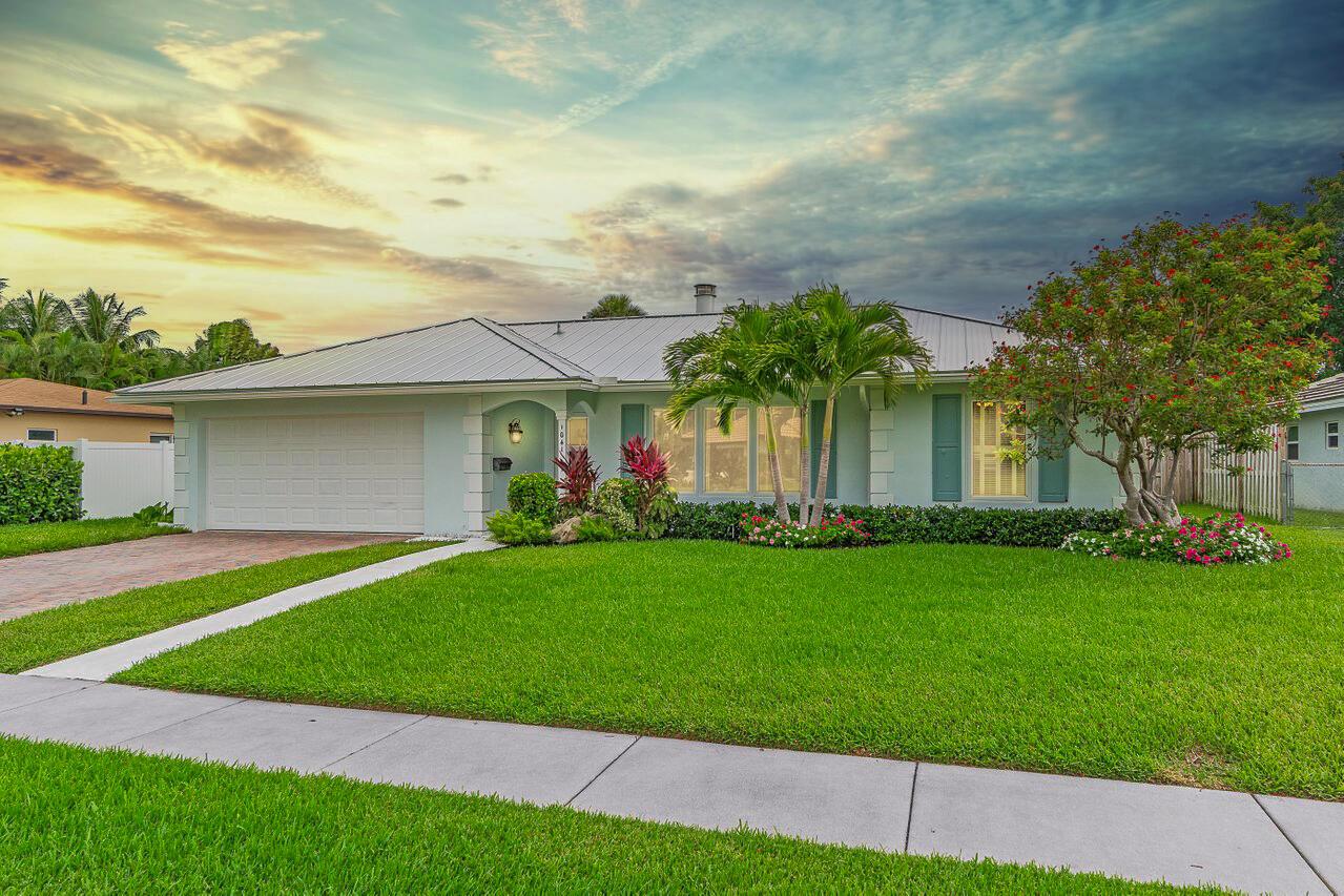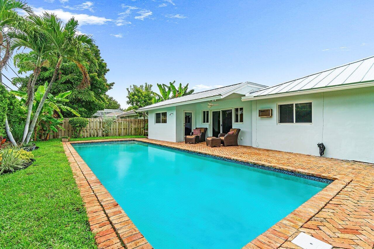 Welcome to your new home in the heart of Boca Raton, FL! This charming 5 Bed/3 bath -residence offers easy living and a great location- minutes to the beach and in an A rated school district. You'll be captivated by its curb appeal, featuring a NEW metal roof, vibrant new paint, and lush landscape that creates an inviting first impression.Inside, enjoy the natural light pouring in through skylights throughout the home, enhancing the open concept living spaces. It's an ideal setting for both entertaining and cozy evenings by the real wood-burning fireplace with exposed brick. The kitchen has recently updated cabinets, a breakfast bar, and is open to all the family, living, and dining areas. The home's smart 3-way split design provides two separate en-suite main bedrooms for privacy,