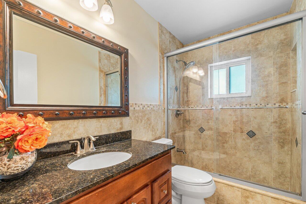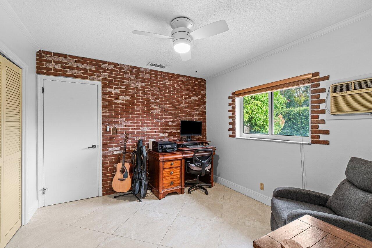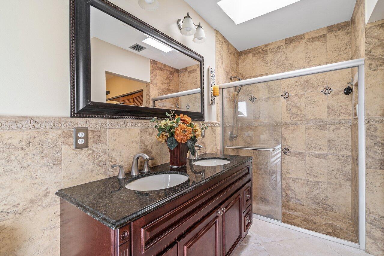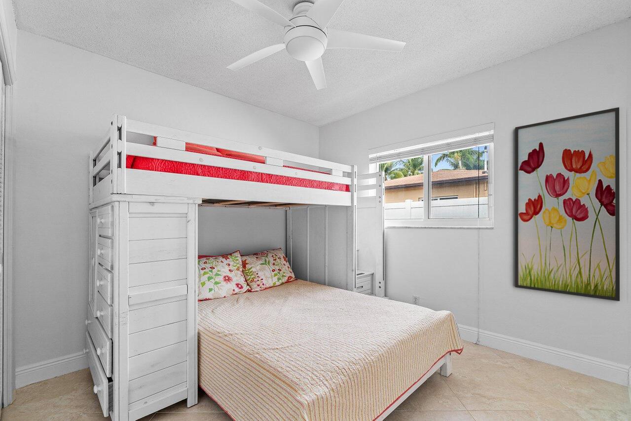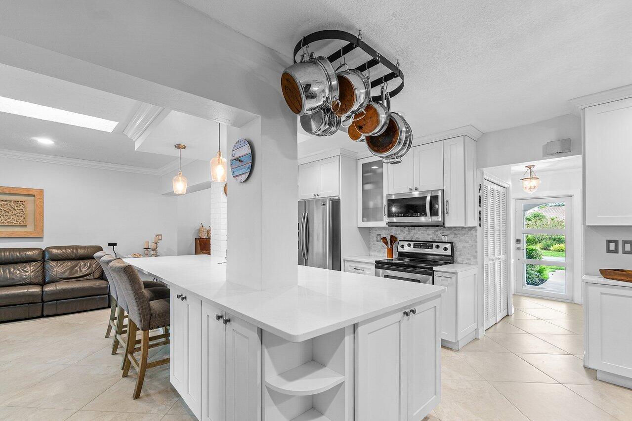 Welcome to your new home in the heart of Boca Raton, FL! This charming 5 Bed/3 bath -residence offers easy living and a great location- minutes to the beach and in an A rated school district. You'll be captivated by its curb appeal, featuring a NEW metal roof, vibrant new paint, and lush landscape that creates an inviting first impression.Inside, enjoy the natural light pouring in through skylights throughout the home, enhancing the open concept living spaces. It's an ideal setting for both entertaining and cozy evenings by the real wood-burning fireplace with exposed brick. The kitchen has recently updated cabinets, a breakfast bar, and is open to all the family, living, and dining areas. The home's smart 3-way split design provides two separate en-suite main bedrooms for privacy,