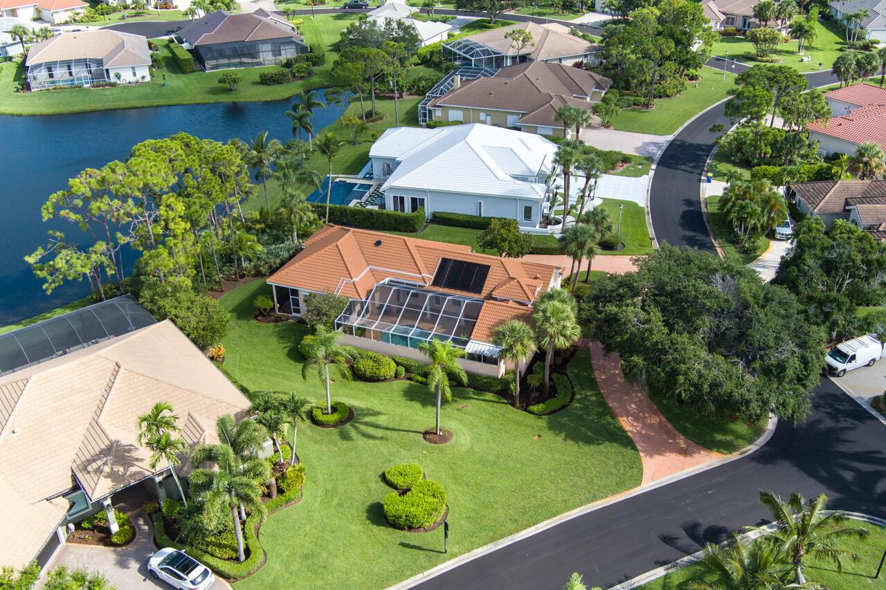 3/3/2 CBS Charming Courtyard Home with pool. Lakefront home is in the lovely, gated community -Lost Lake of Hobe Sound ''aka'' the Falls. A Courtyard home allows privacy for outdoor living & pool use. Pool Child gate.Courtyard bedrooms can be used for home offices, art studio, home for mom, guest bedroom, etc. The courtyard bedroom has its own bath. Main house offers a spacious kitchen overlooking the living room & breakfast room. Spacious kitchen with granite, dining counter & new July 2025 appliances.Expansive dining room. Split bedrooms. Master Bath & Cabana Baths. Additional Patio faces the backyard, located off the breakfast room. Pool has solar panels. Leased Gas tank services the hot water heater & dryer. 2018 A/C. 2019 Roof. 2024 Electrical Panel. LEASED 250 gallon gas tank