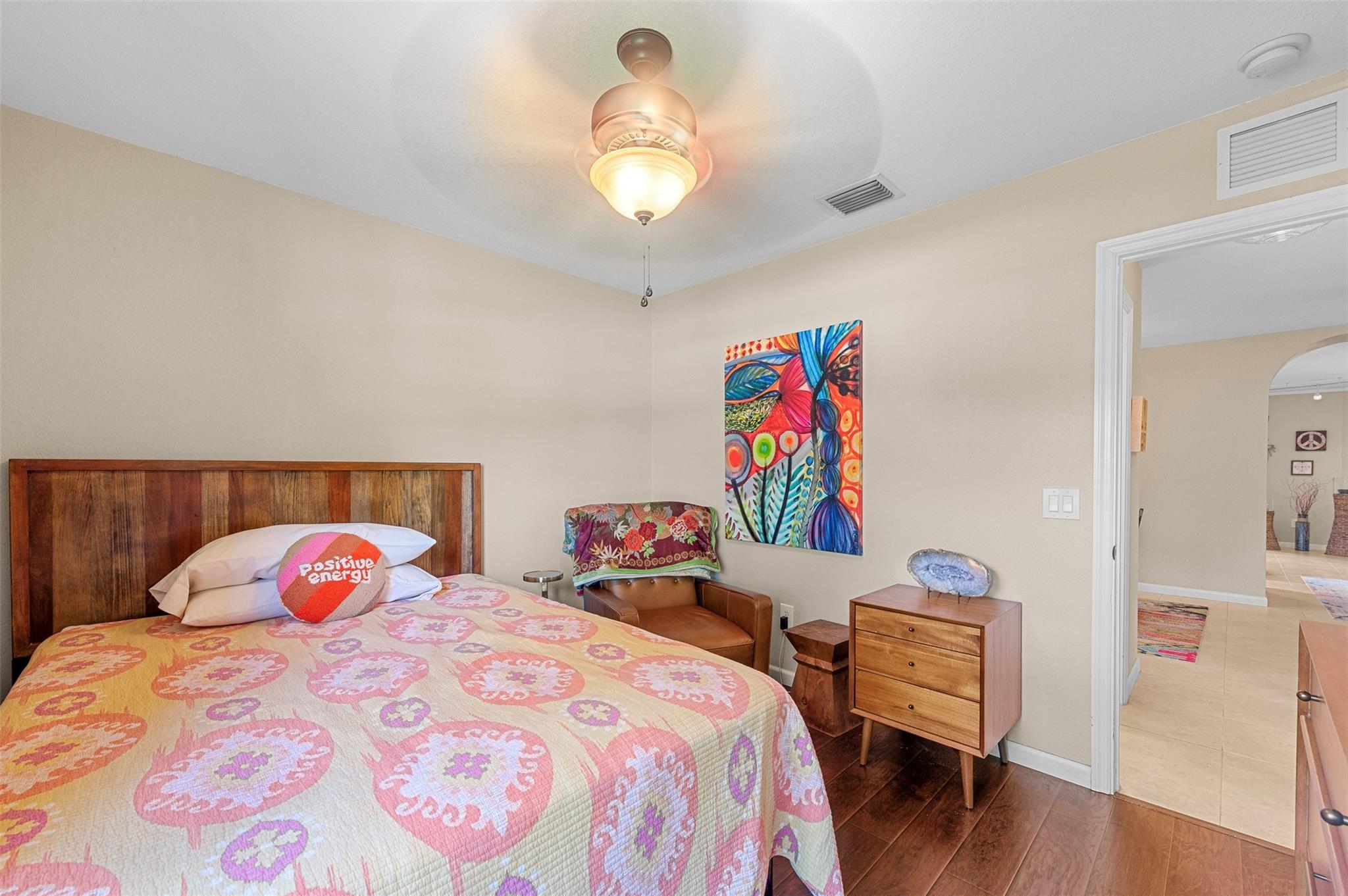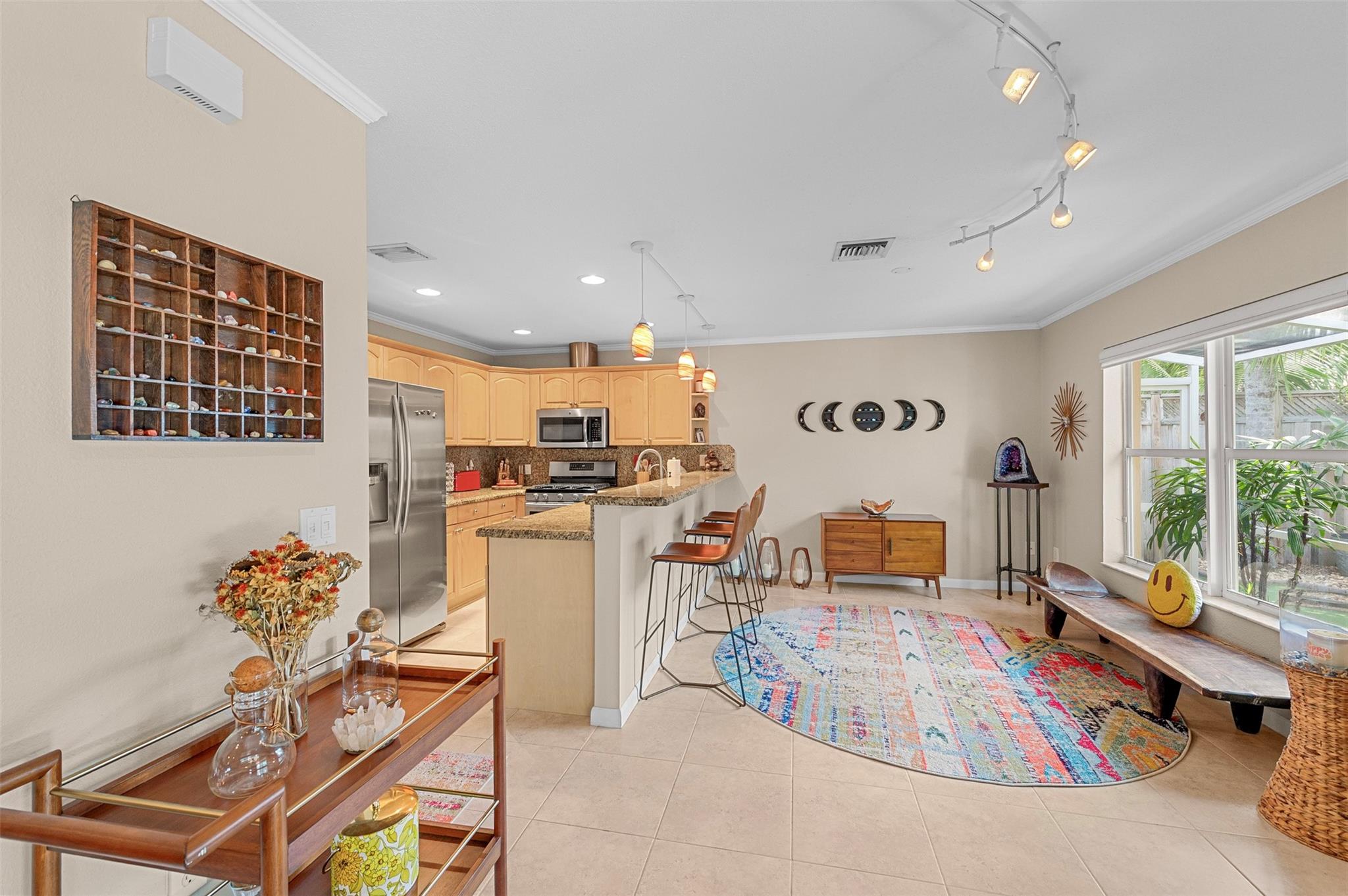 Gorgeous and unique 3/2 home built in 2005 with a 2-car garage. Well-maintained with tile floors throughout main areas and laminate in spacious bedrooms. Enjoy high ceilings, crown molding, recessed lighting, and open kitchen with stainless steel appliances and gas range. Upgrades include custom built-out closets, main bath with tub/separate shower, 2018 AC with mini-split cooling garage/laundry area, tankless (gas) water heater and attic. Backyard offers maintenance free artificial turf, storage sheds and Zen Garden. Oversized driveway accommodates up to 6 cars. NO HOA, underground electric lines. Located just minutes from beaches, shopping, dining, and highways. This home is in great condition and is the perfect blend of comfort, style, and convenience. Move in ready!