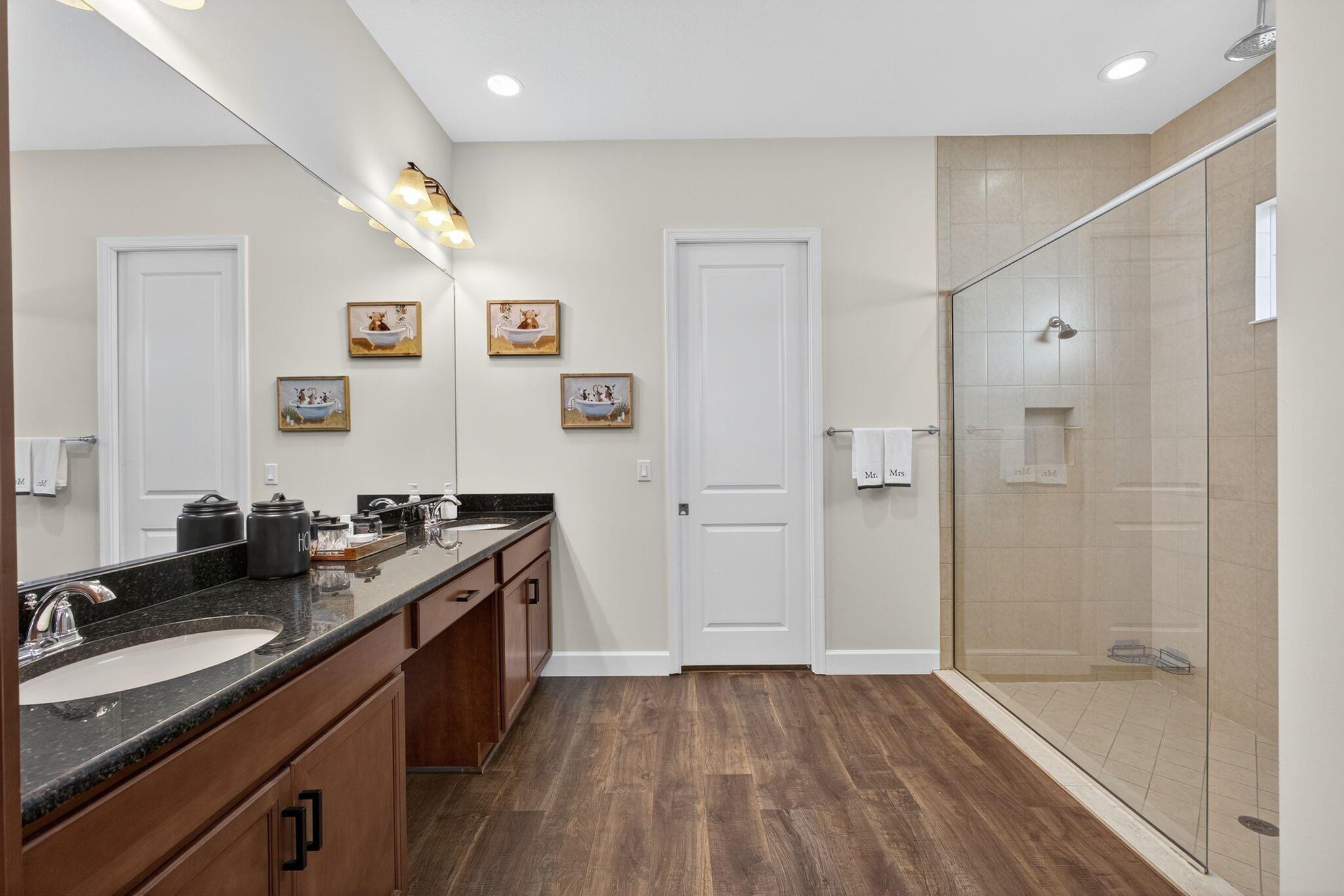 ✨ Welcome to your lakefront retreat in The Meadows at Westlake! This spacious 3-bedroom, 2-bath home sits on an oversized, fully fenced lakefront lot -- plenty of room to add a pool and enjoy outdoor living. Inside, you'll find brand-new LVP flooring, fresh neutral paint (2025), and a light, open floor plan that's perfect for both entertaining and everyday life.The kitchen features granite counters, ample cabinetry, stainless steel appliances, and an island overlooking the living space. Built-ins / storage in the living area adds both style and function. The primary suite offers a tray ceiling, walk-in closet, and spa-like bath with dual sinks and a rainfall shower. Two additional bedrooms (with brand-new carpet) give flexibility for family, guests, or a home office.