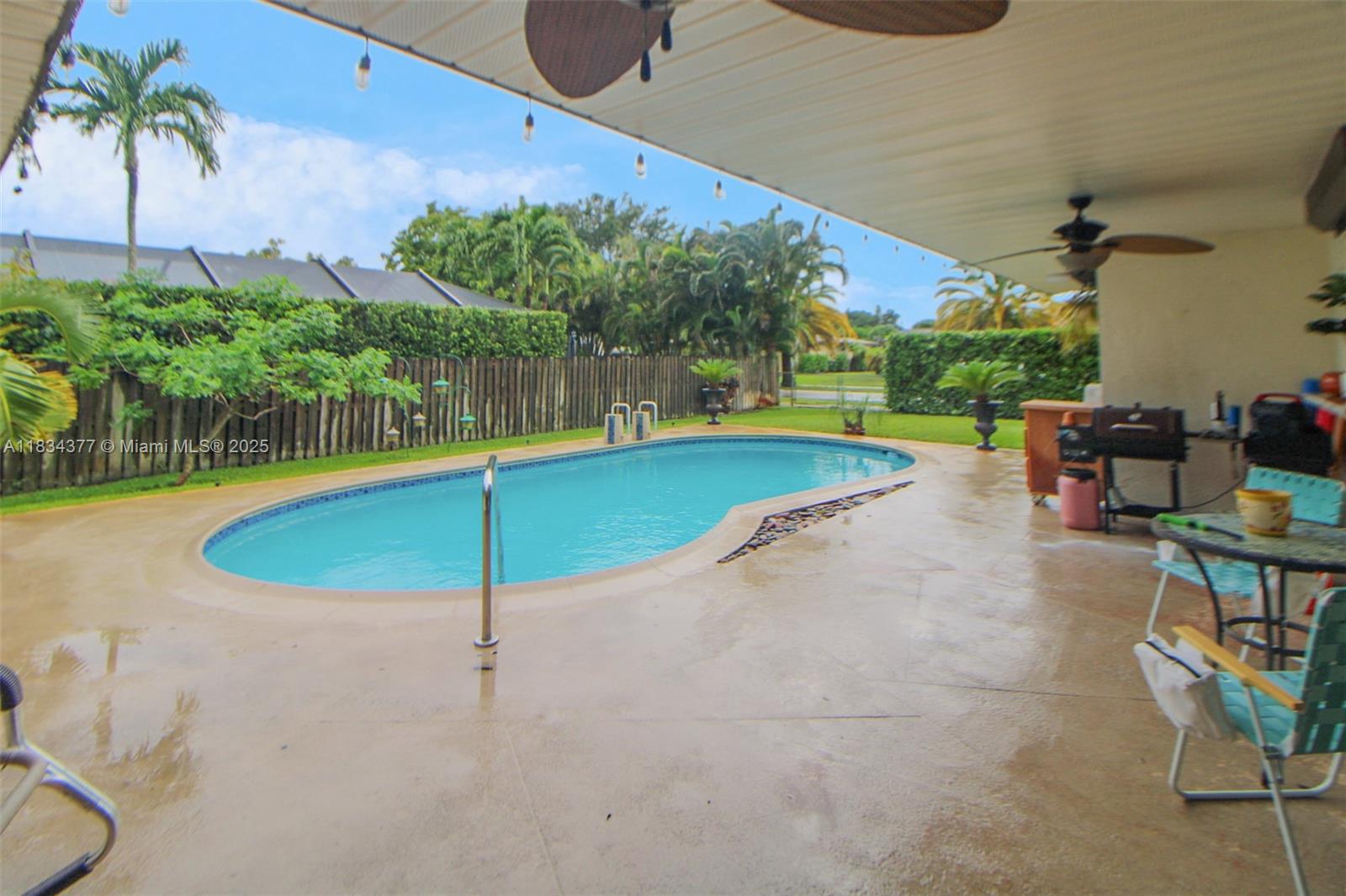 Price Reduced to $685,000 – Priced to Sell! Spacious 4-bedroom, 2-bath pool home on a 10,216 sq ft corner lot. Enjoy peaceful pool views from the entrance, kitchen, primary bathroom, and 4th bedroom. Home features impact windows and roll-down hurricane protection. The upgraded kitchen features granite countertops, stainless steel appliances, and a gas cooking range. Generously sized closets and a double garage offer ample storage. Lots of natural light throughout. Property needs a new roof, terrazzo flooring—great opportunity to update and make it your own. Conveniently located near top-rated schools, shopping, dining, and major highways—all within the same city. A must-see!
